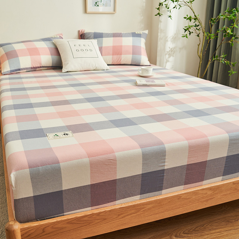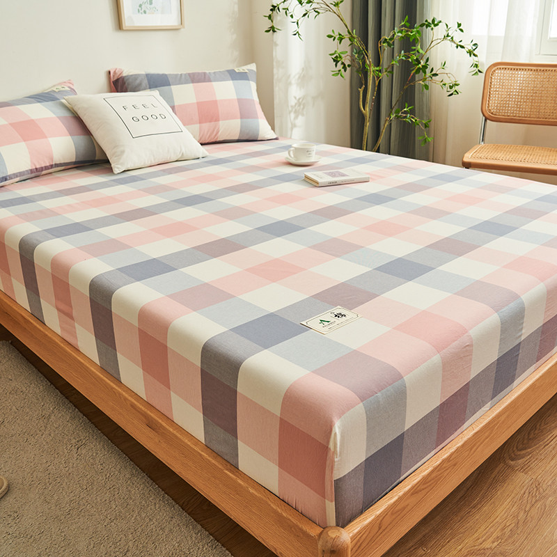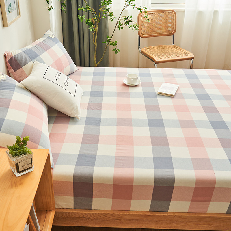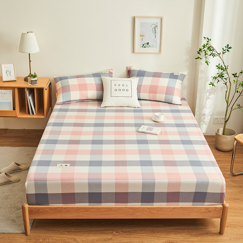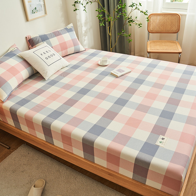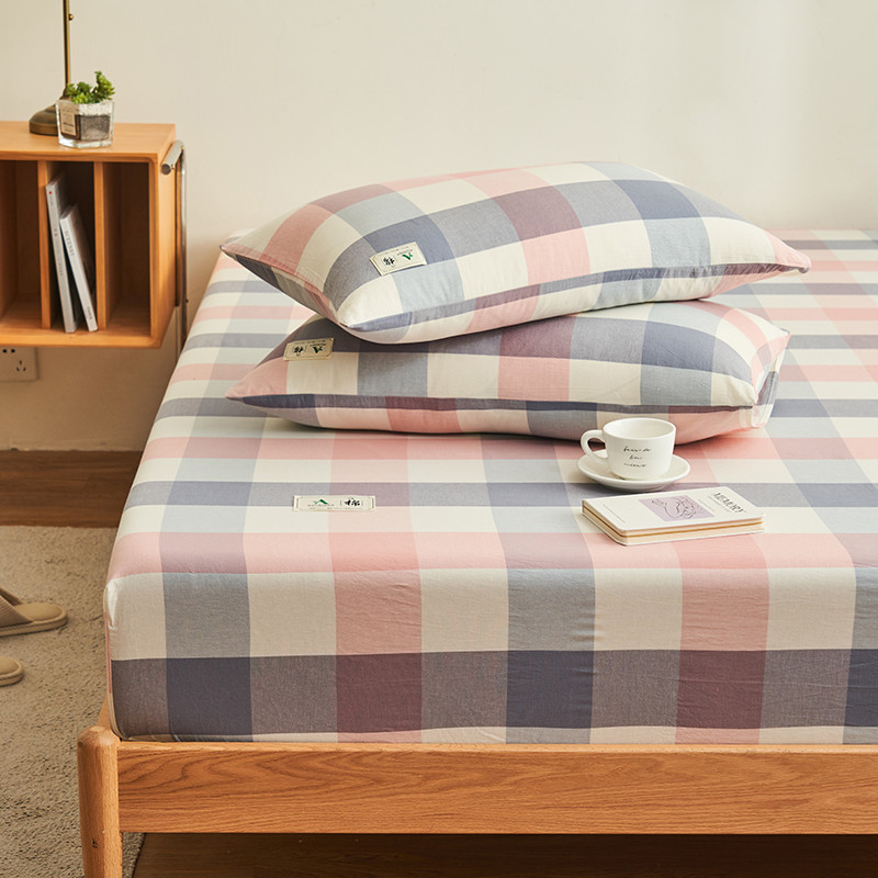 21度C 2023新款A类全棉色织水洗棉单品床笠 格韵粉