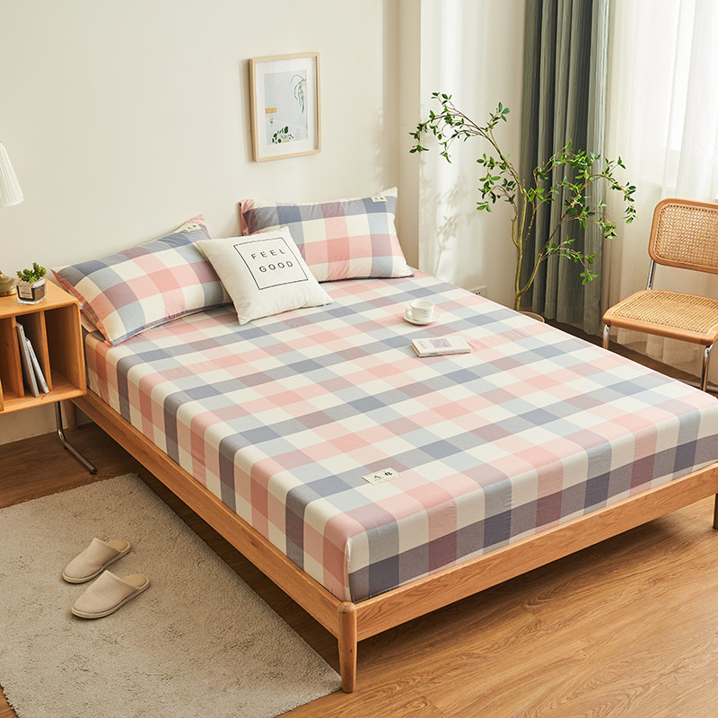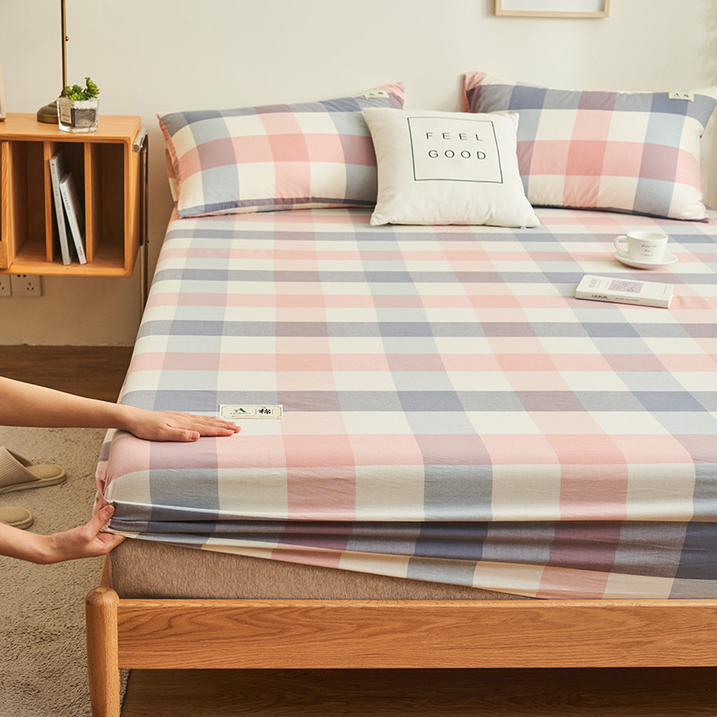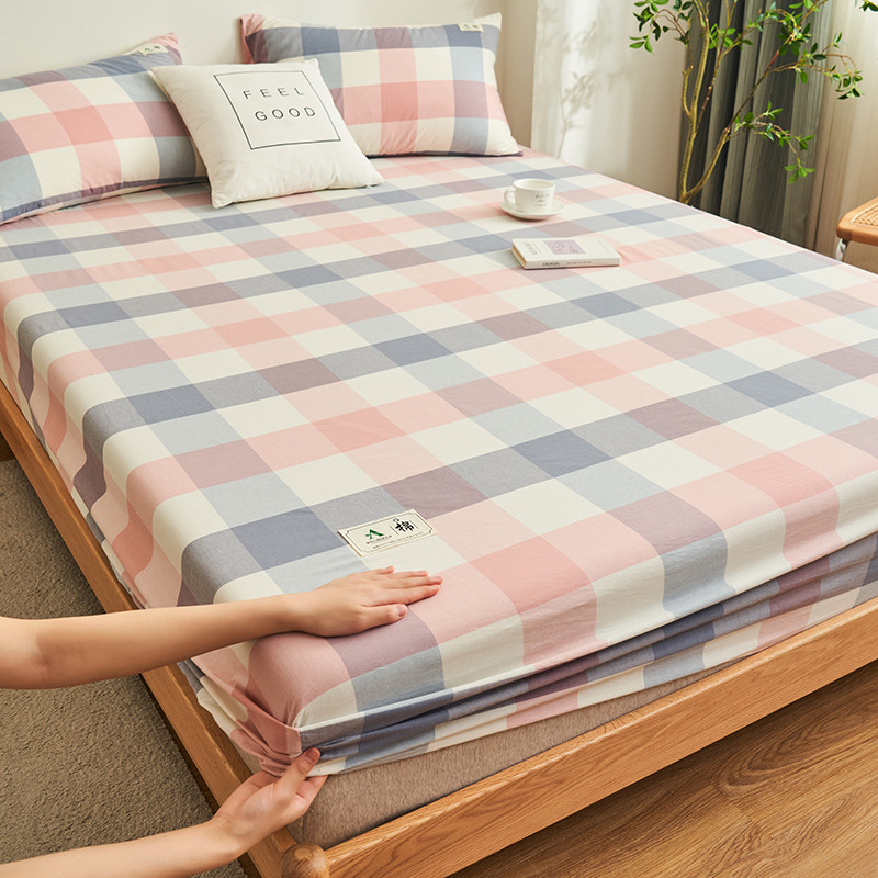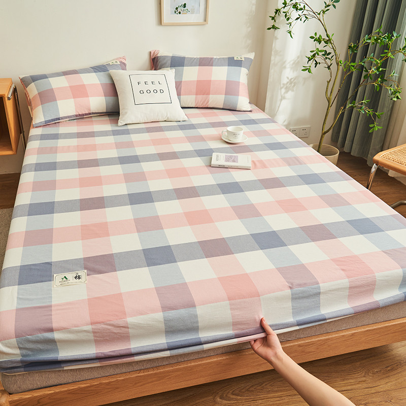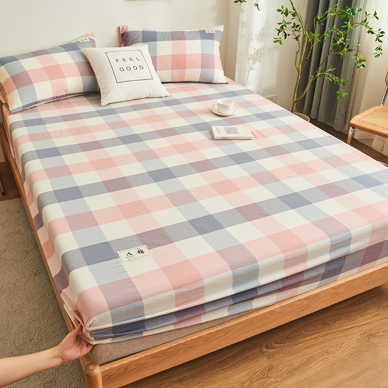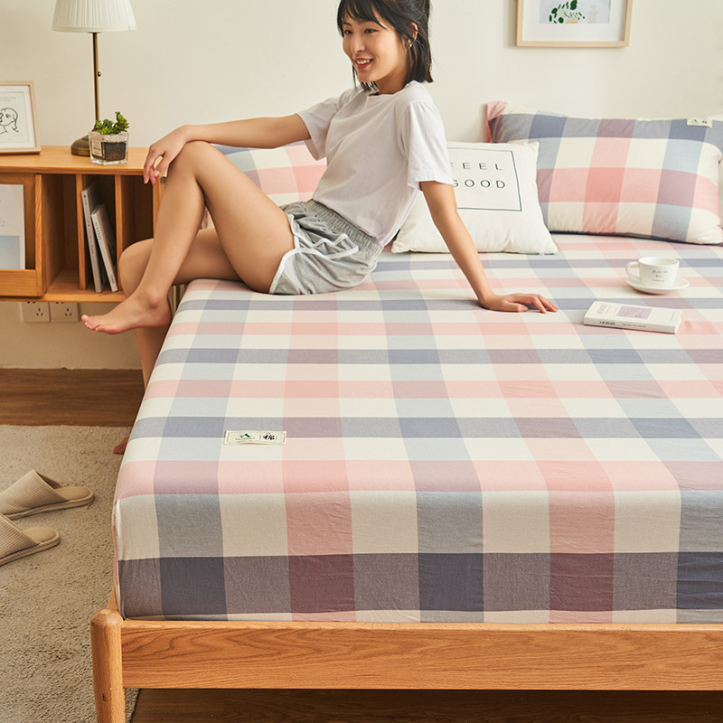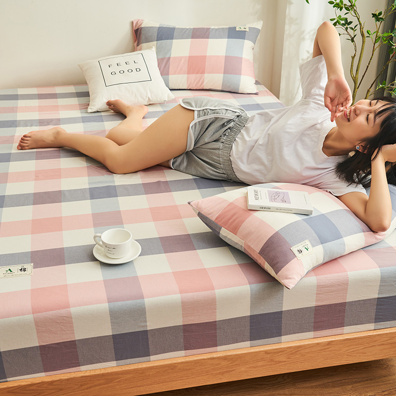21度C 2023新款A类全棉色织水洗棉单品床笠 格韵粉