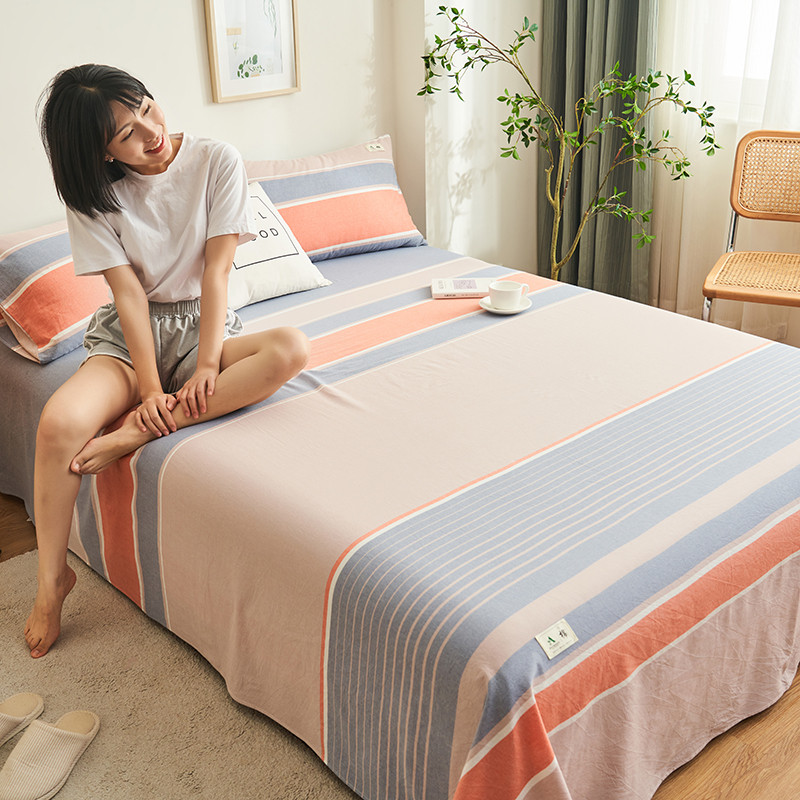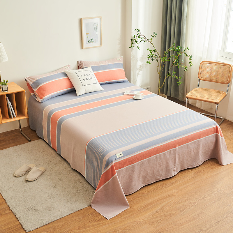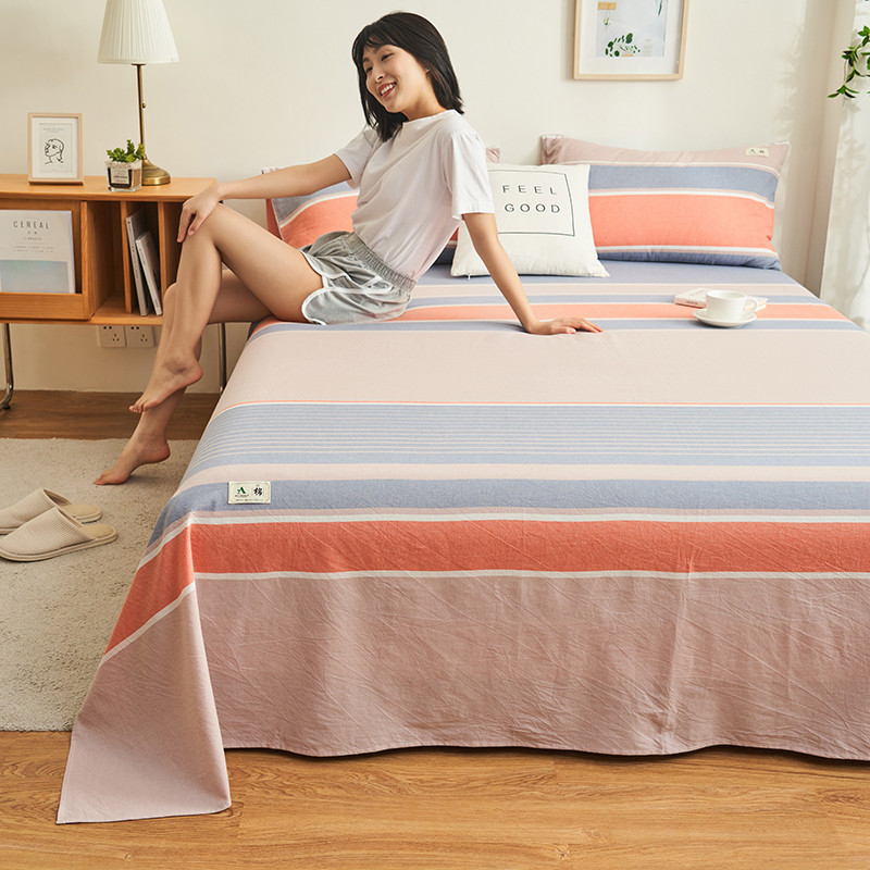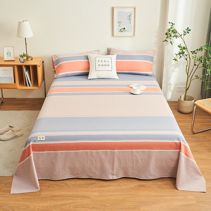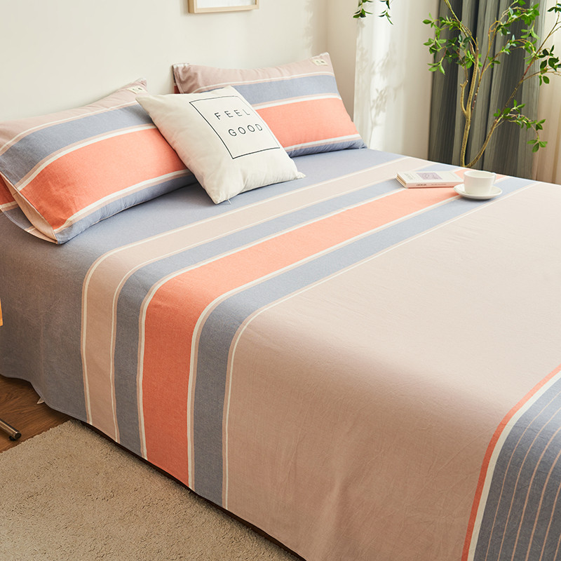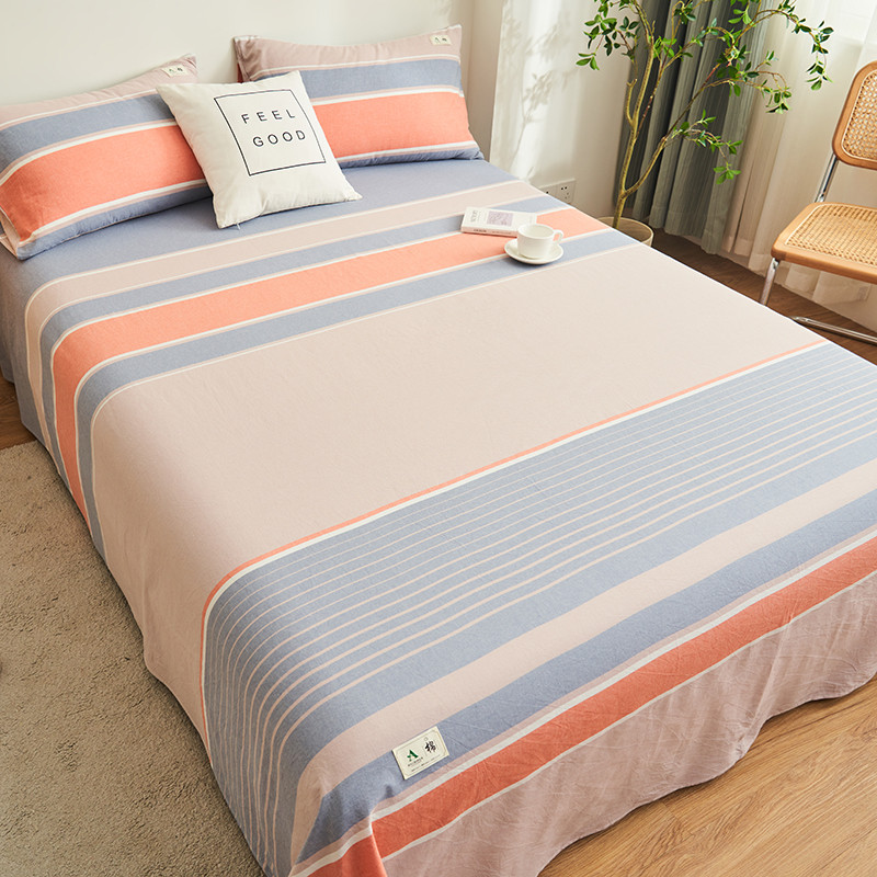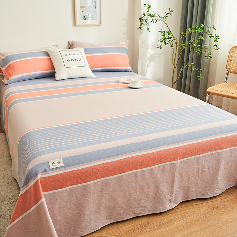21度C 2023新款A类全棉色织水洗棉单品床单 莱卡条