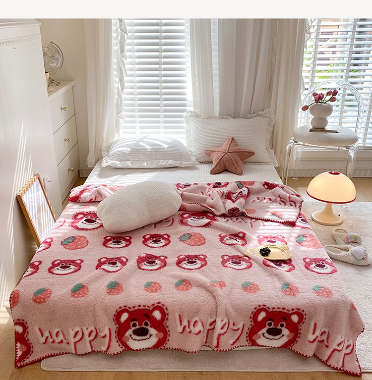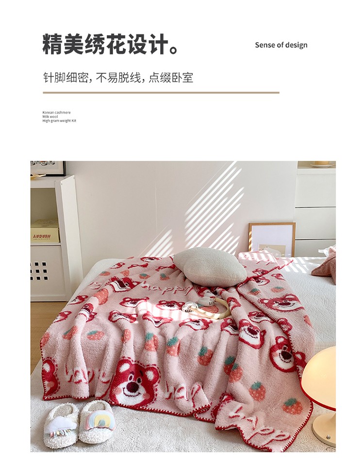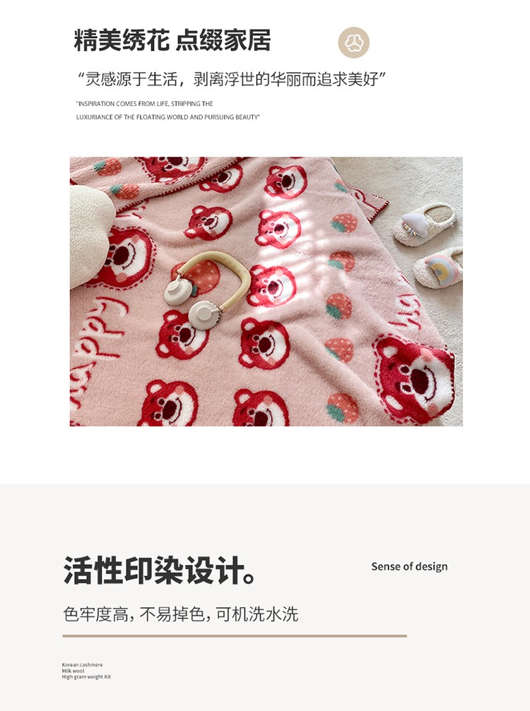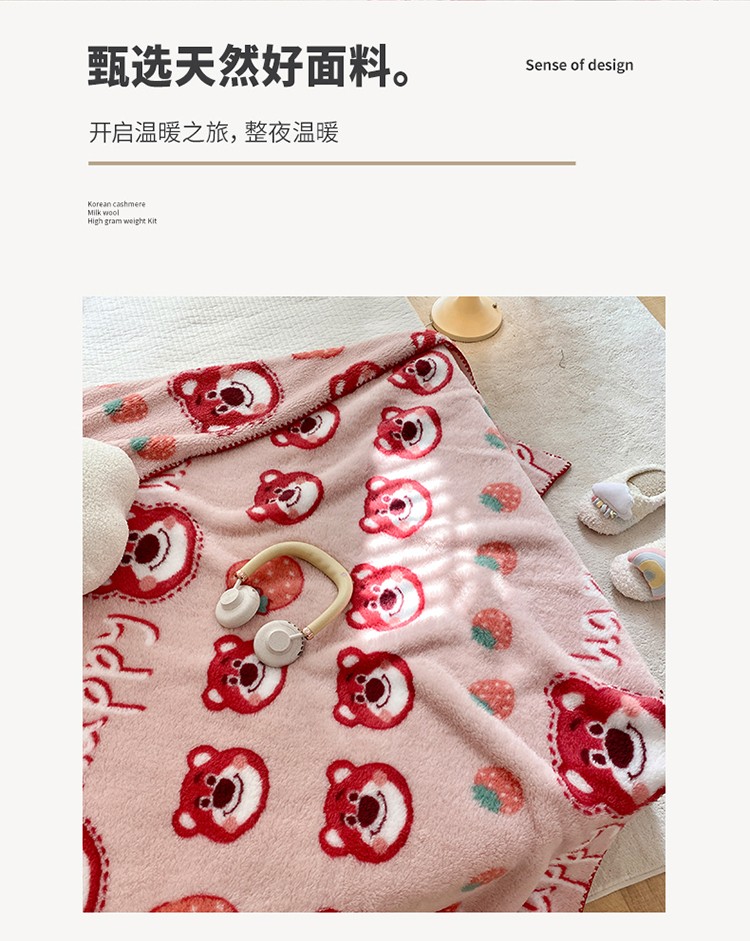 (总)眠屿 2022新款舒绒棉高克重单层双面毛毯,胡迪伙伴,开心草莓熊,玫瑰朵朵,蜜桃多多,奶油熊,苏浅
