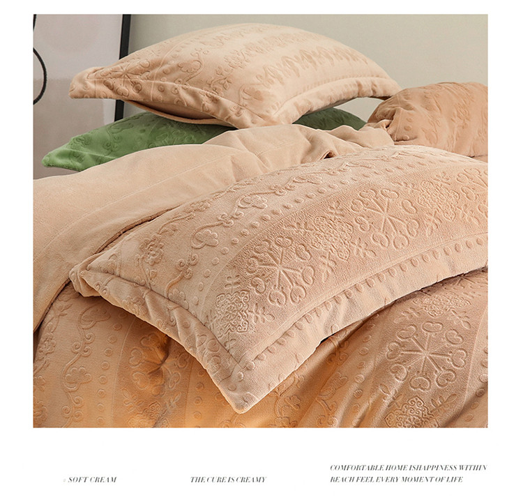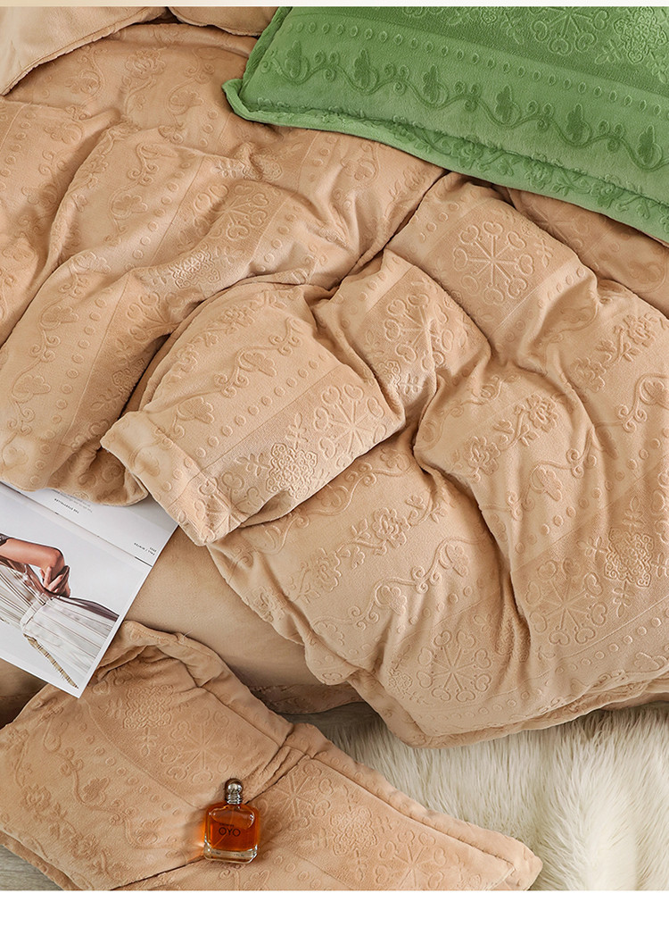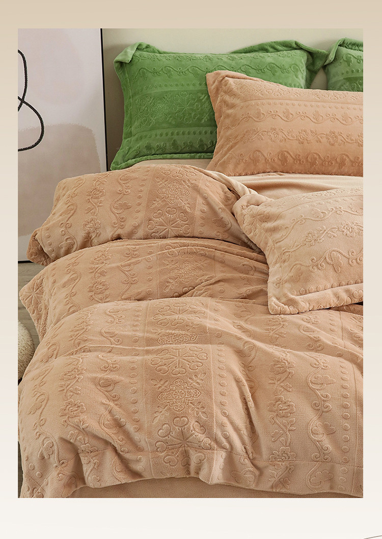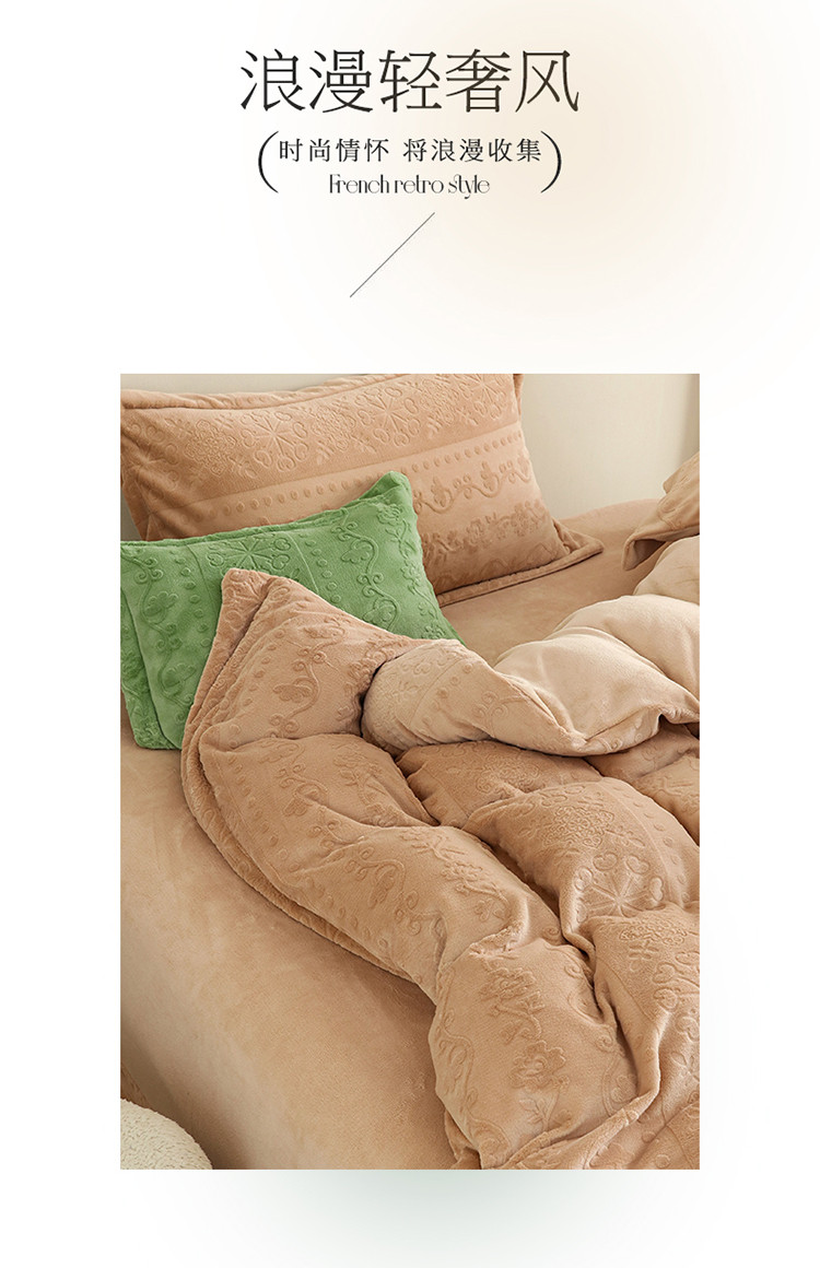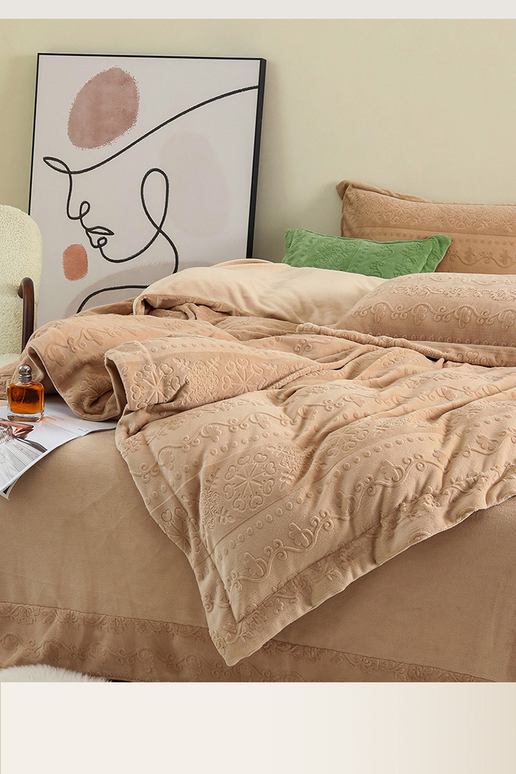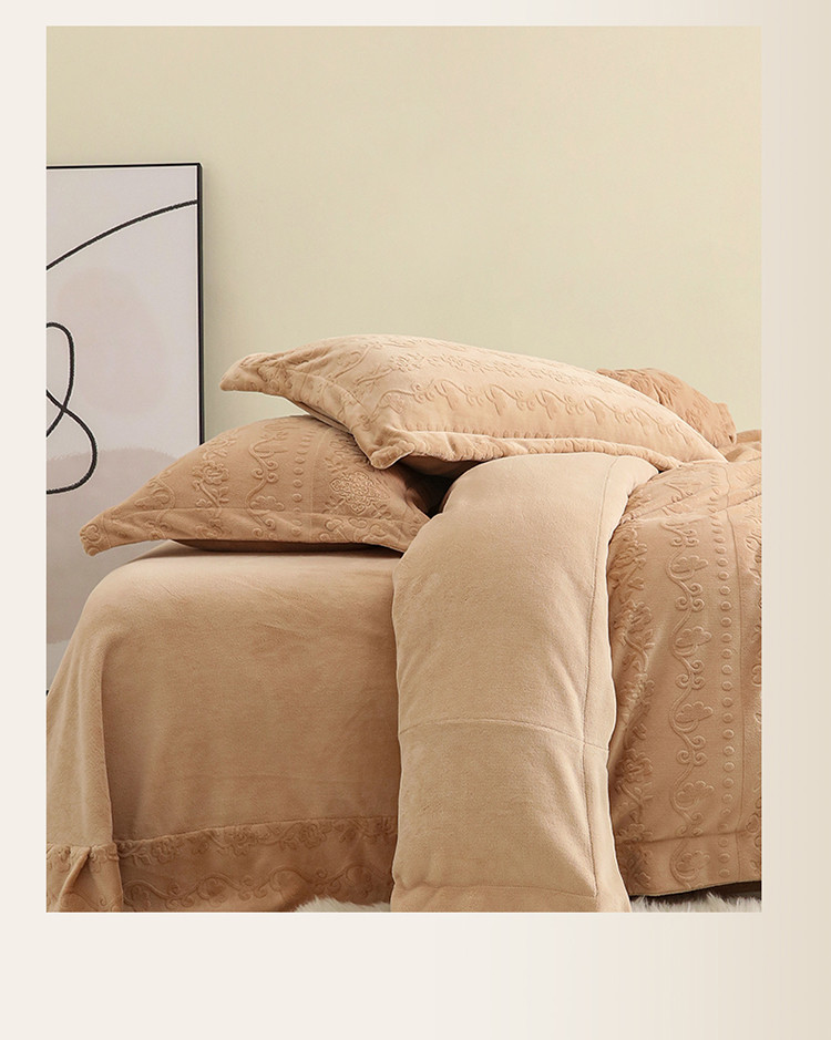 商品名称:名品优仓 2022新款辛西娅系列230g牛奶绒雕花四件套 辛西娅-驼色