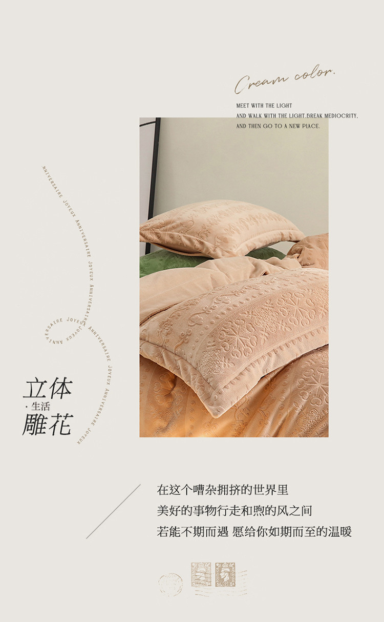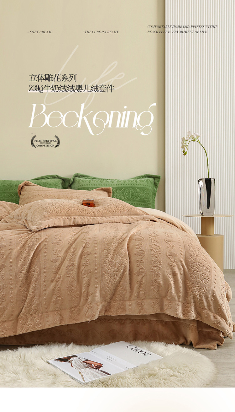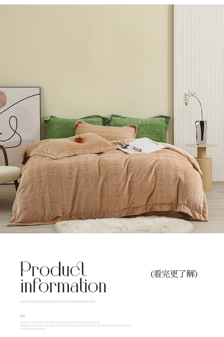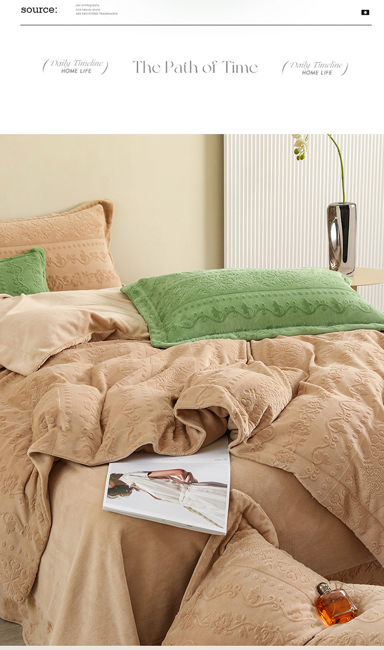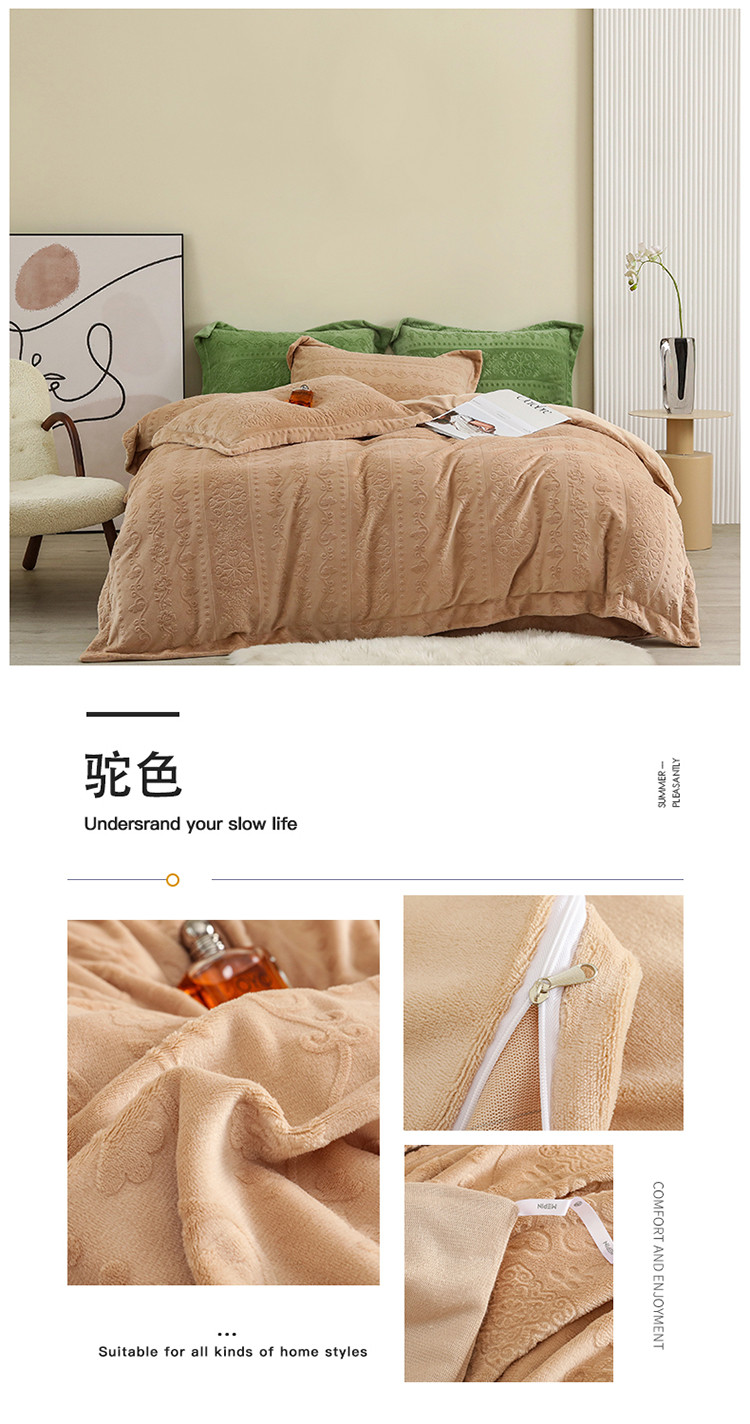 商品名称:名品优仓 2022新款辛西娅系列230g牛奶绒雕花四件套 辛西娅-驼色
