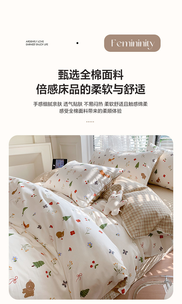 澳萝拉 2023新款全棉印花四件套会员减5元野餐森林