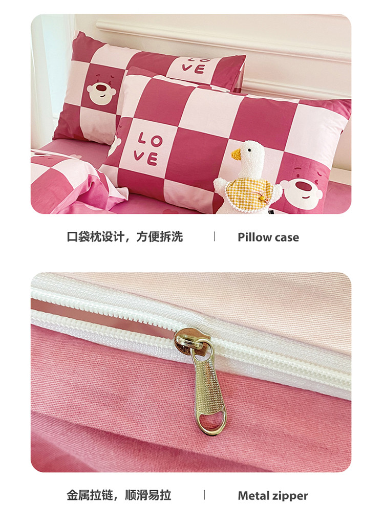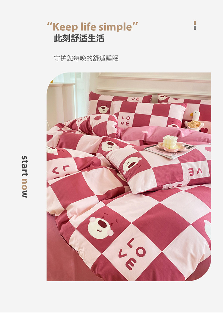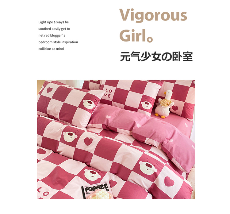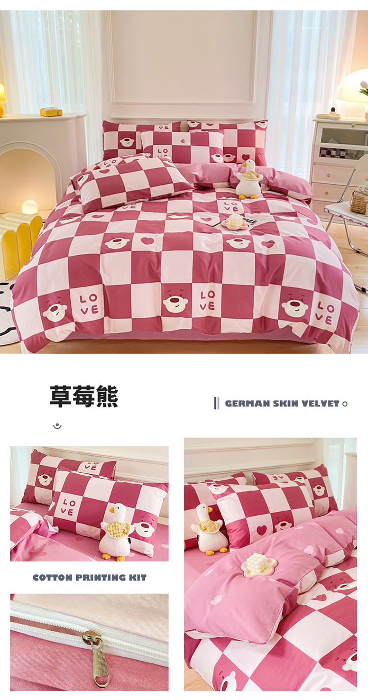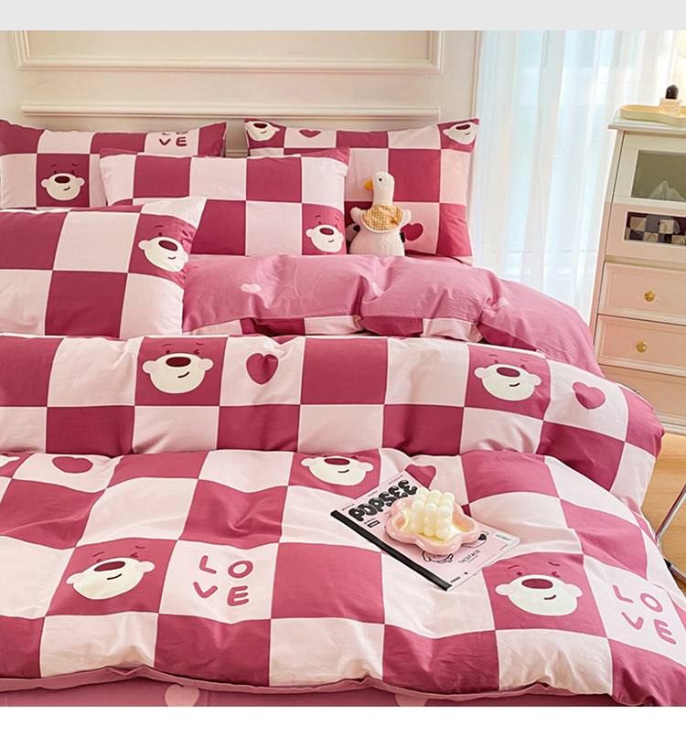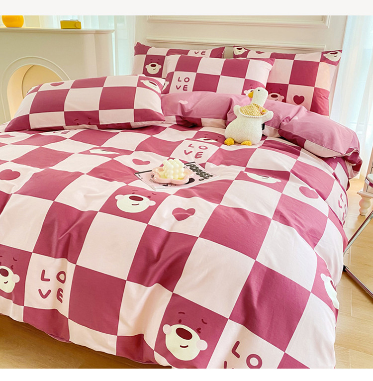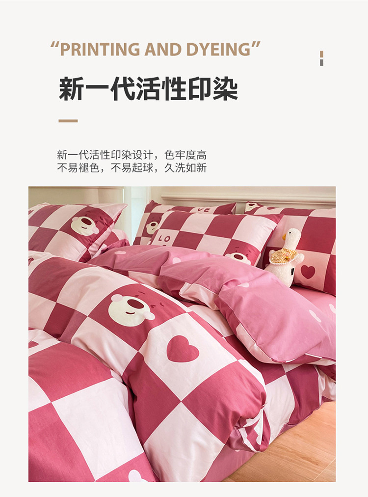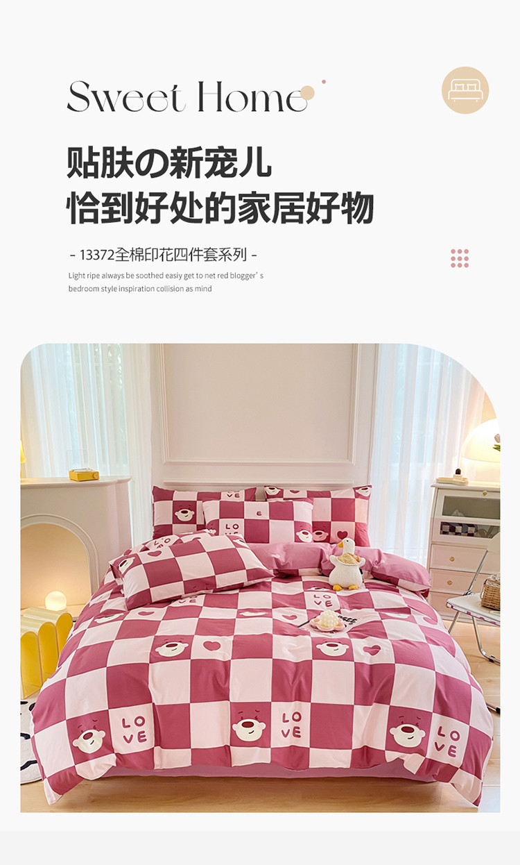 星巴k家纺 2023全棉13372花卉印花简约四件套草莓熊