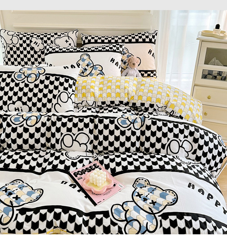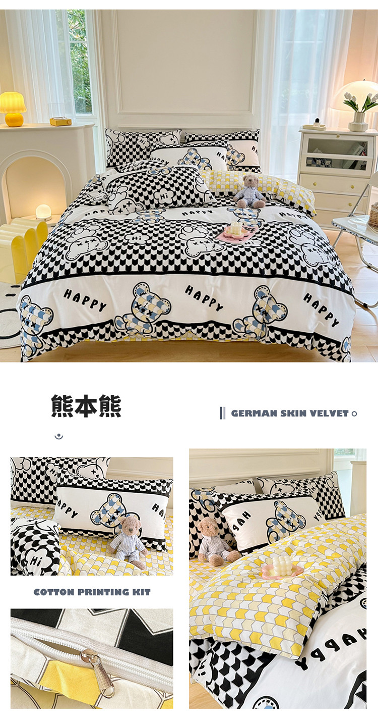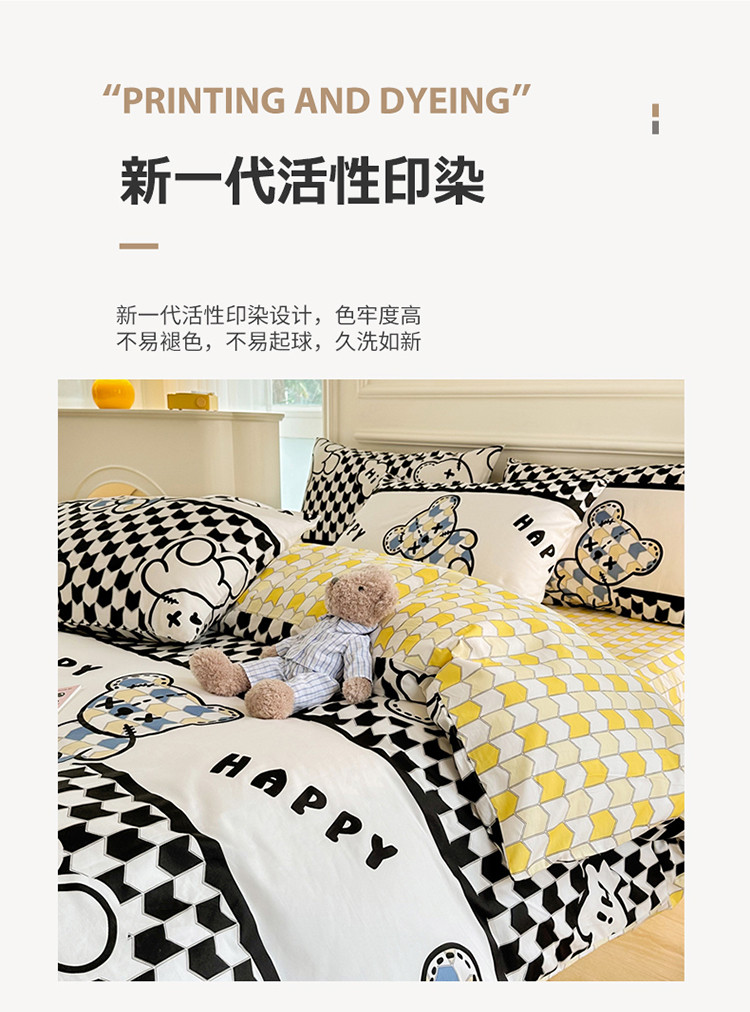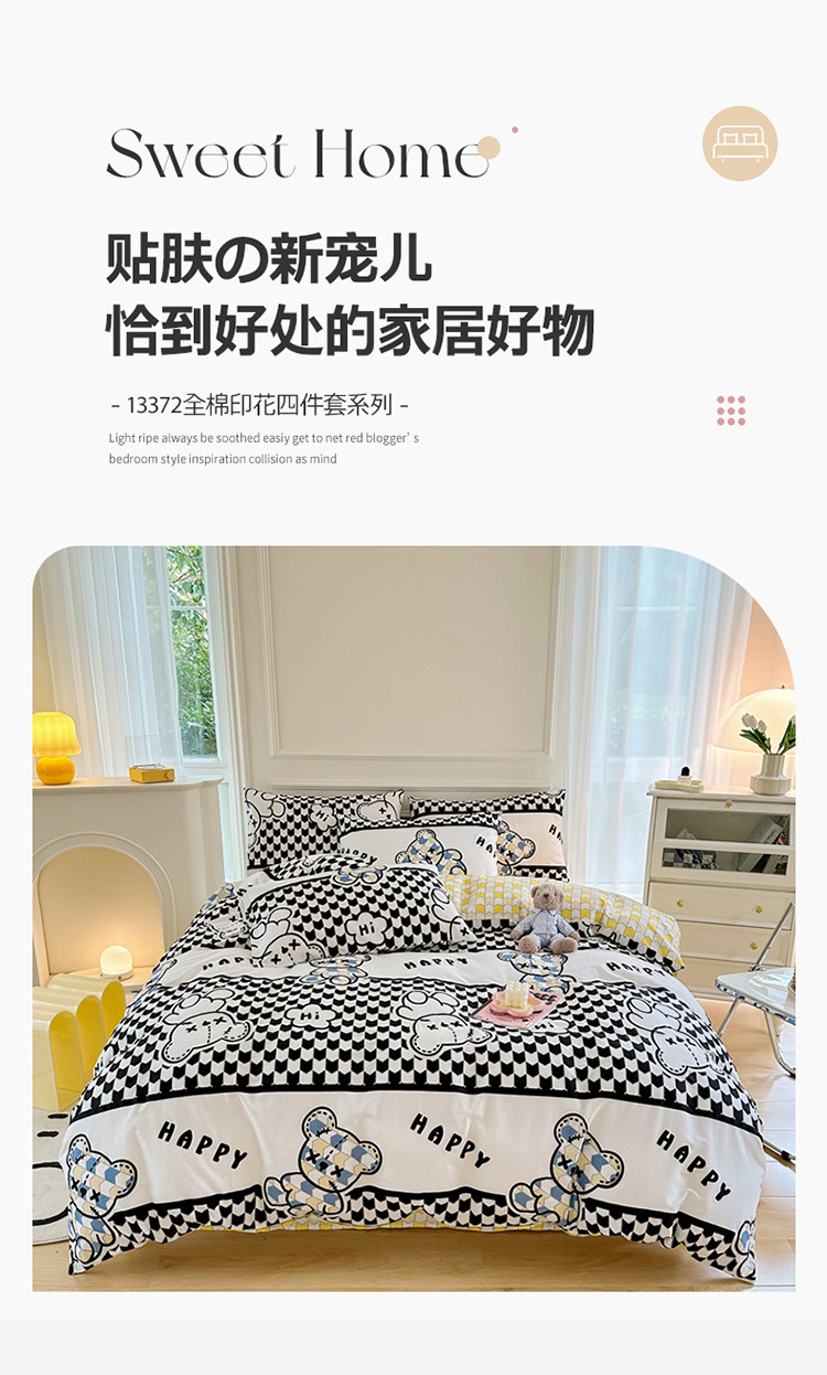 星巴k家纺 2023全棉13372花卉印花简约四件套熊本熊
