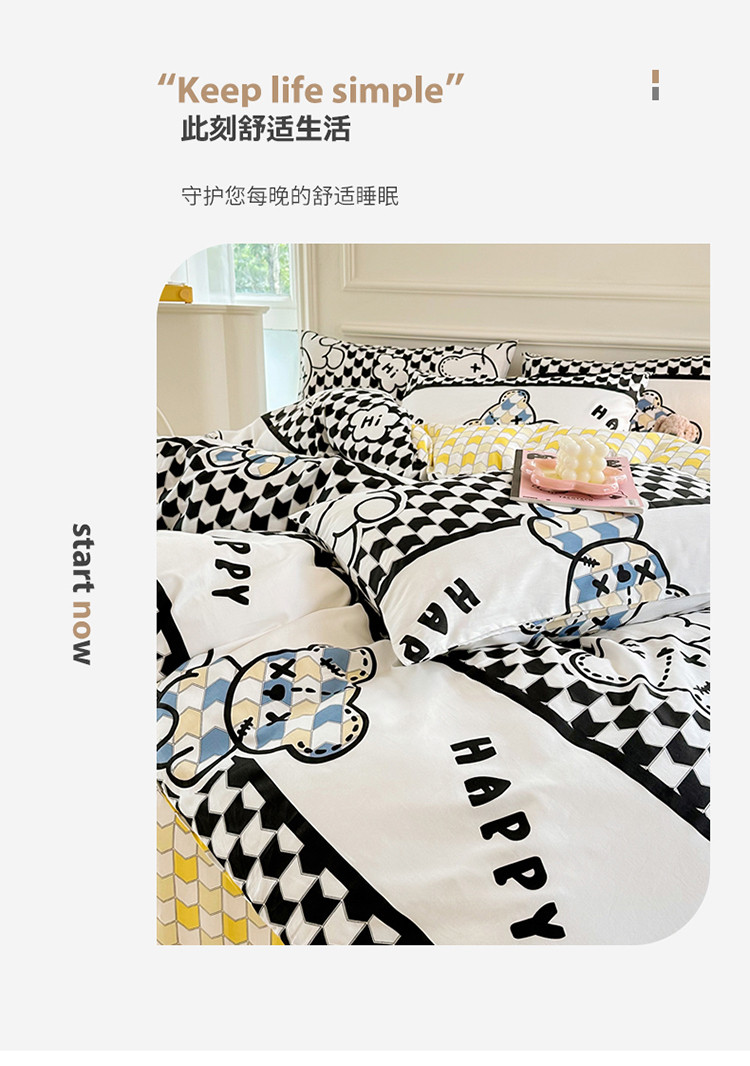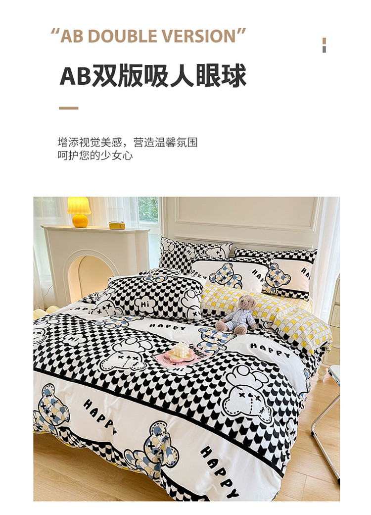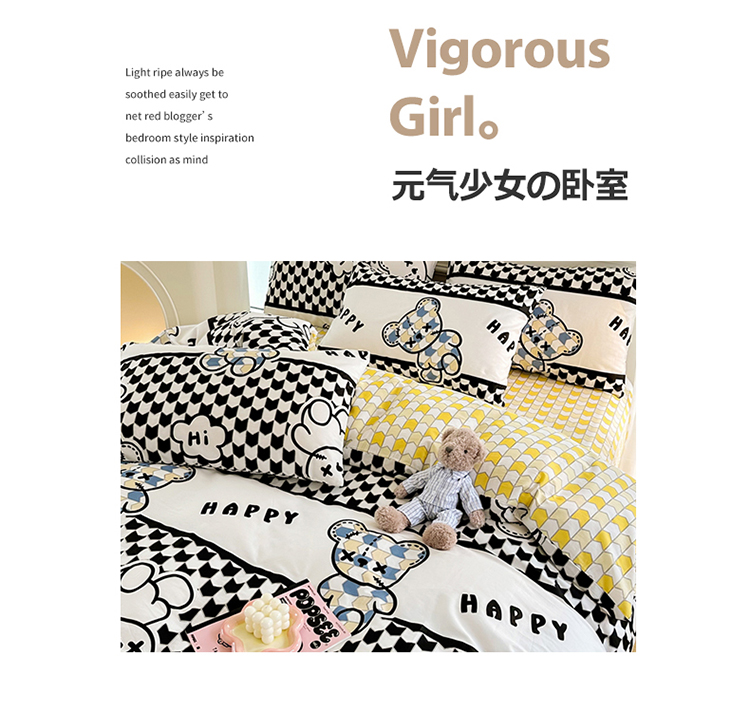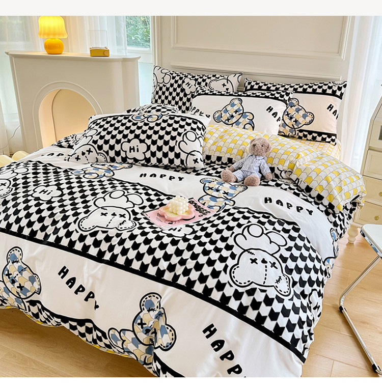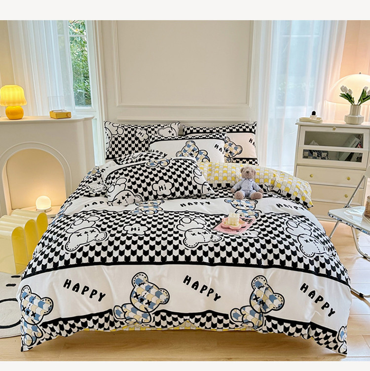 星巴k家纺 2023全棉13372花卉印花简约四件套熊本熊