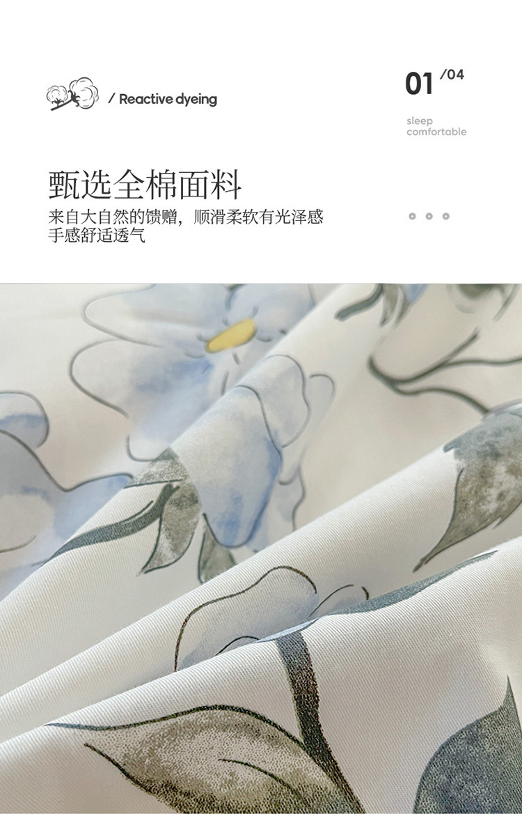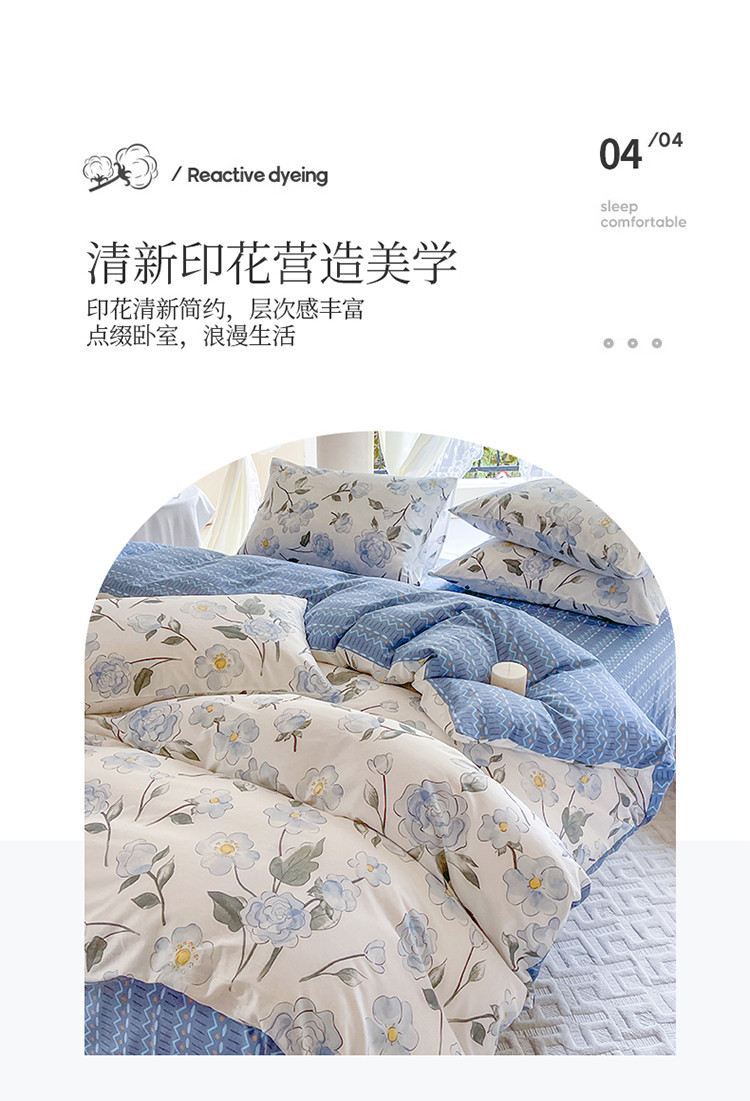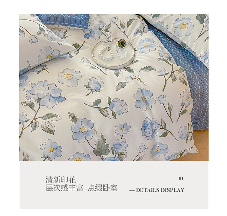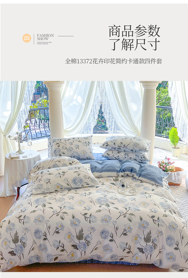 商品名称:星巴k家纺2023新款全棉13372花卉印花简约卡通款多规格四件套清风