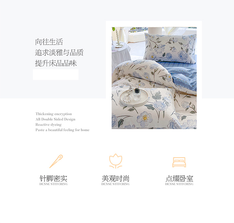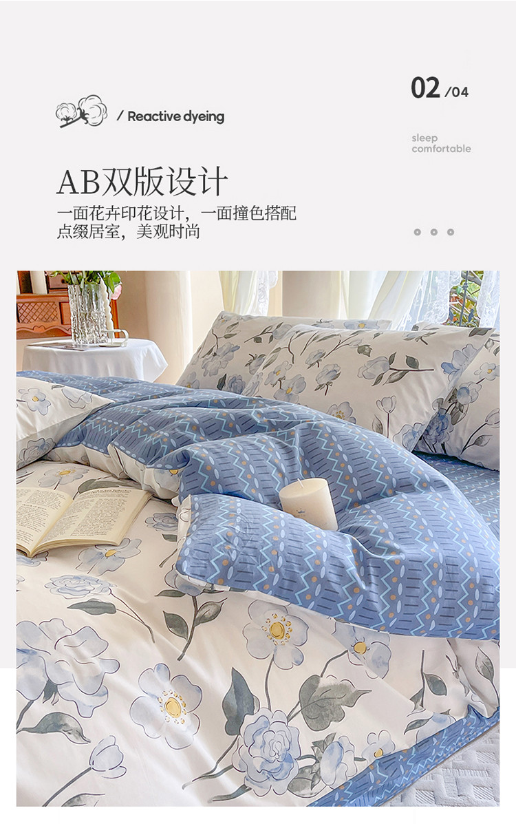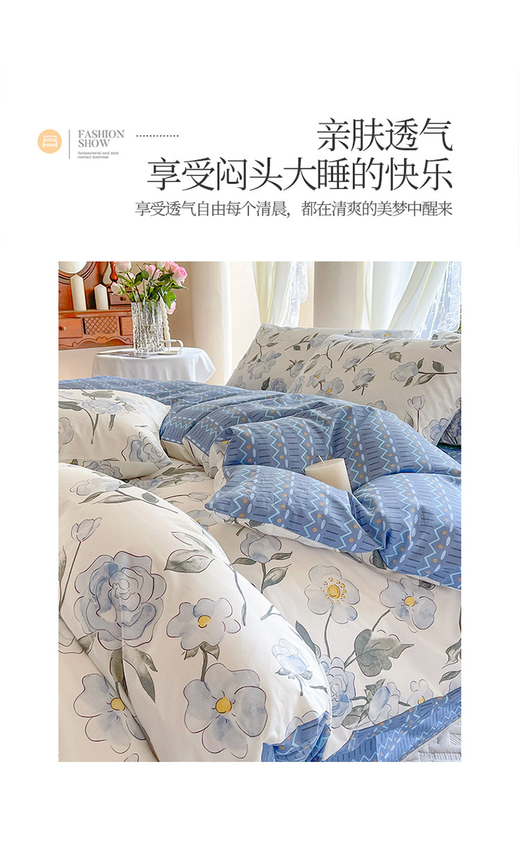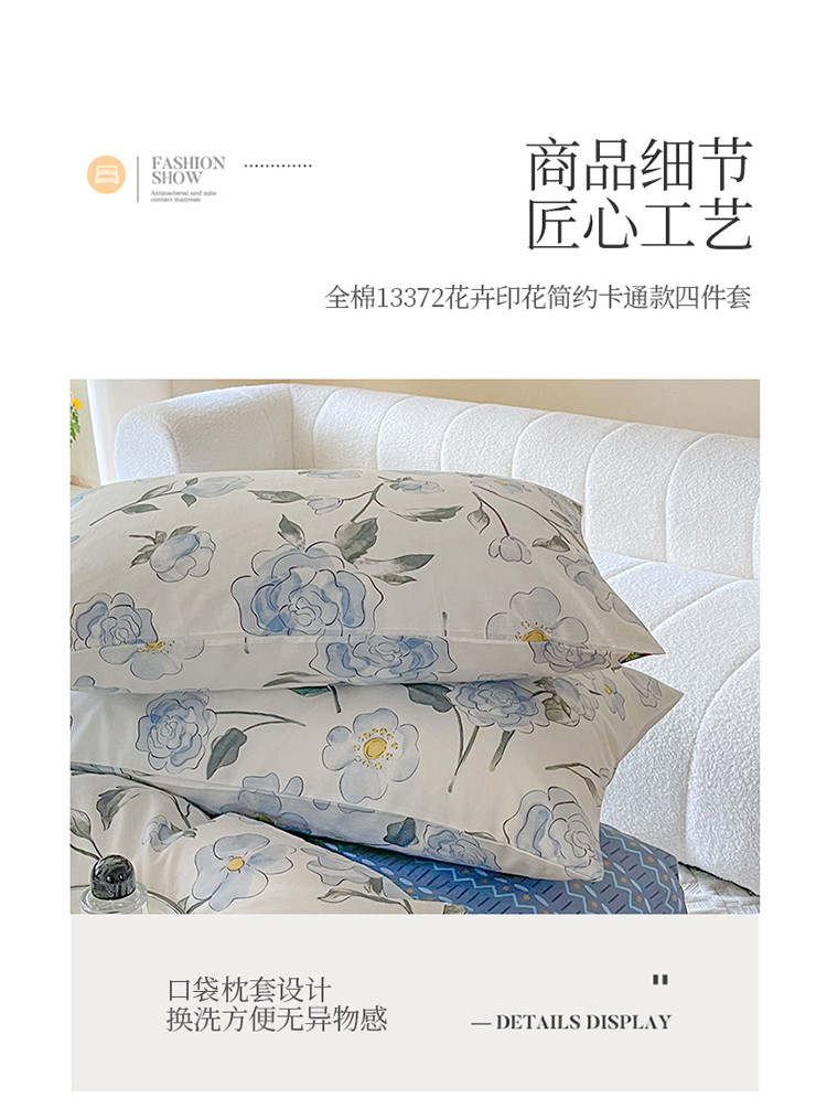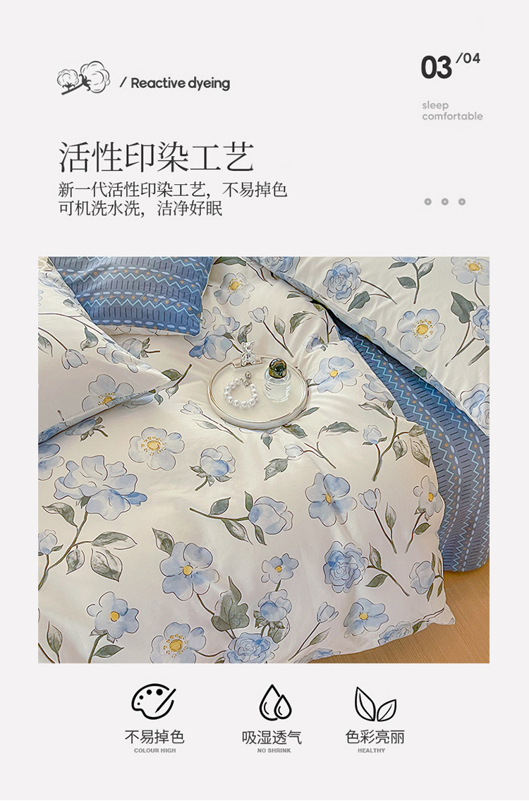 商品名称:星巴k家纺2023新款全棉13372花卉印花简约卡通款多规格四件套清风
