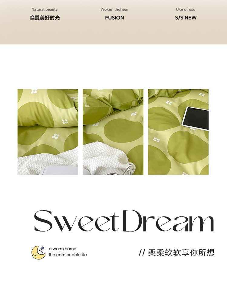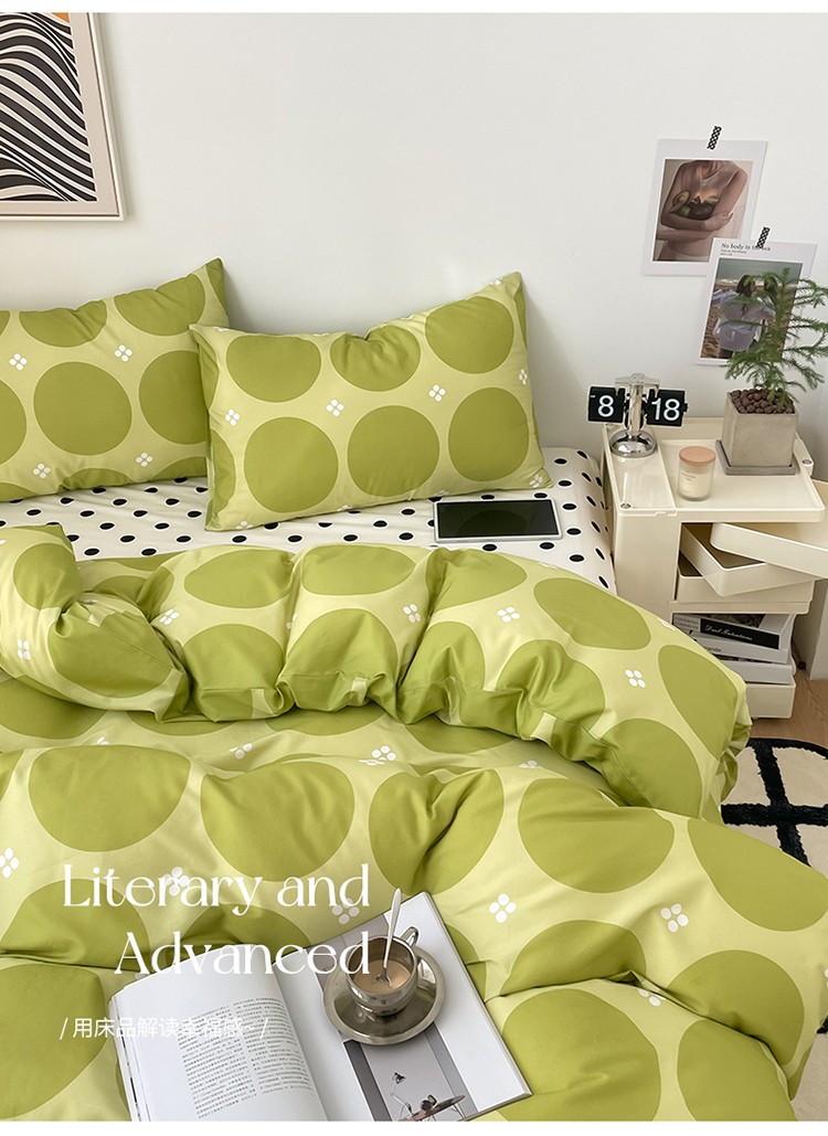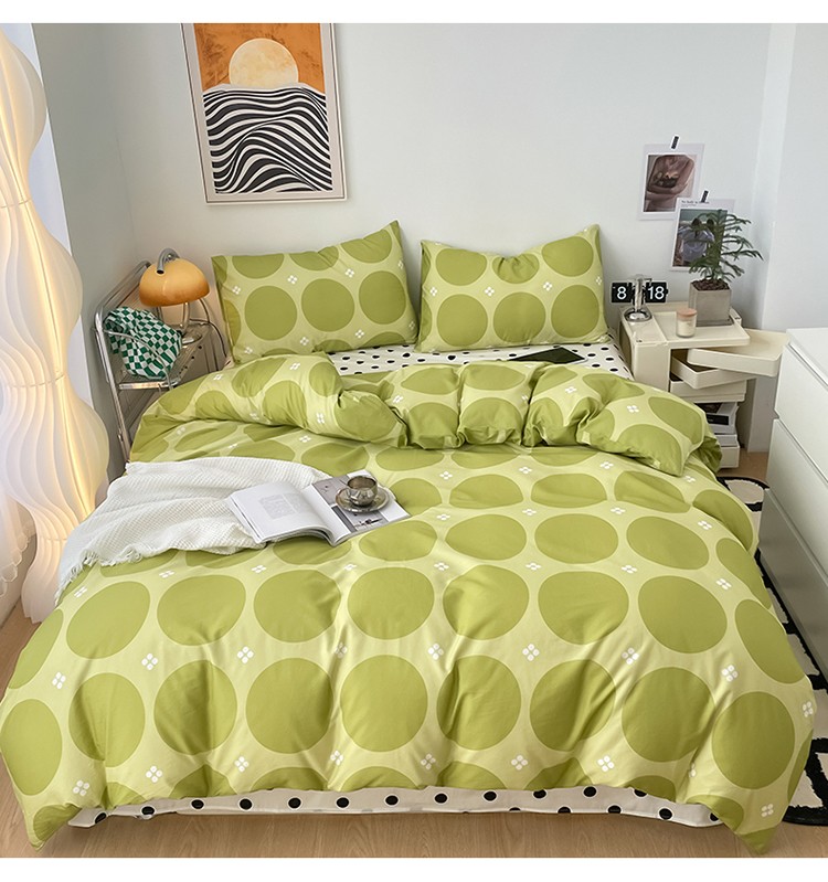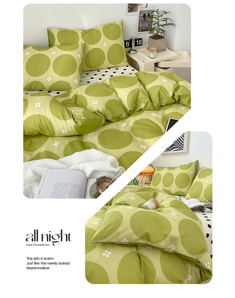 雅居纺 2023新款全棉13070小清新四件套 圆点绿