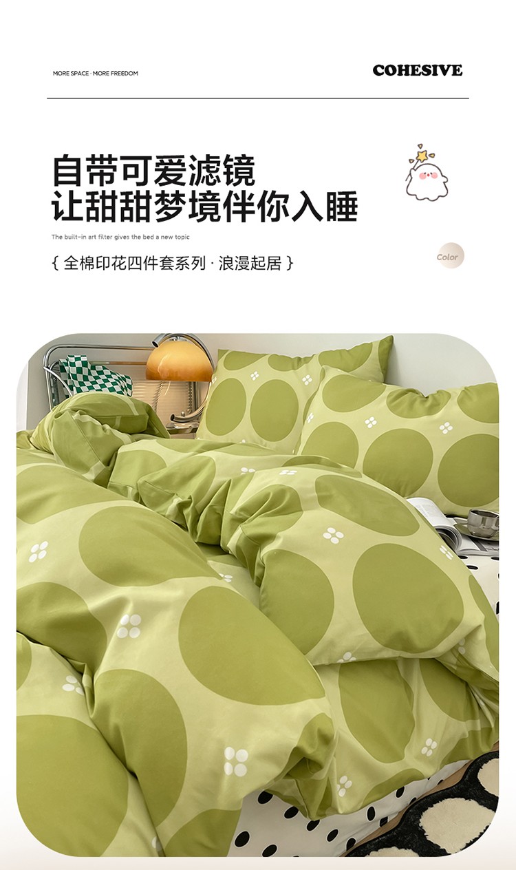 商品名称:雅居纺 2023新款全棉13070小清新四件套 圆点绿