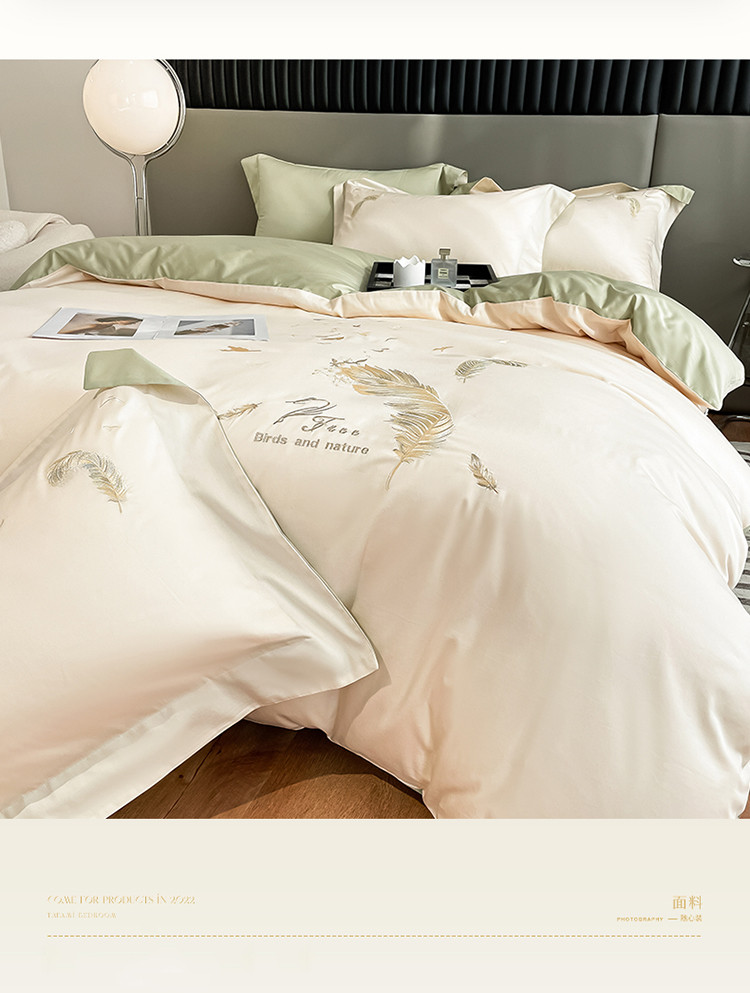 蓝米卡夫2024新全棉高级感长绒棉刺绣四件套兰羽系列 兰羽-芝士抹茶