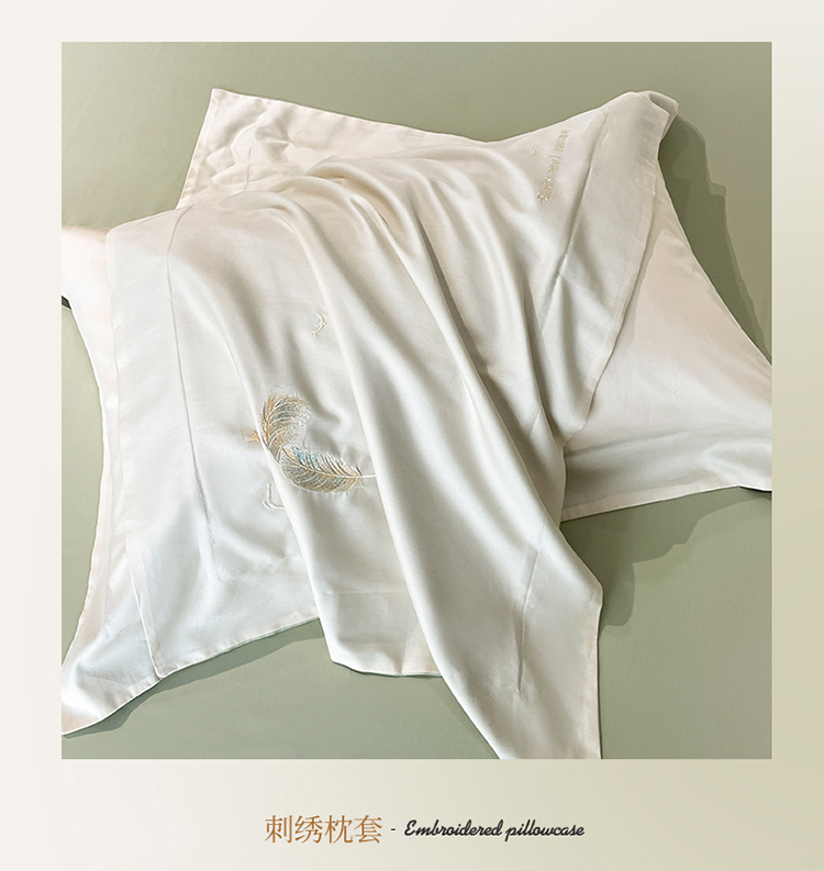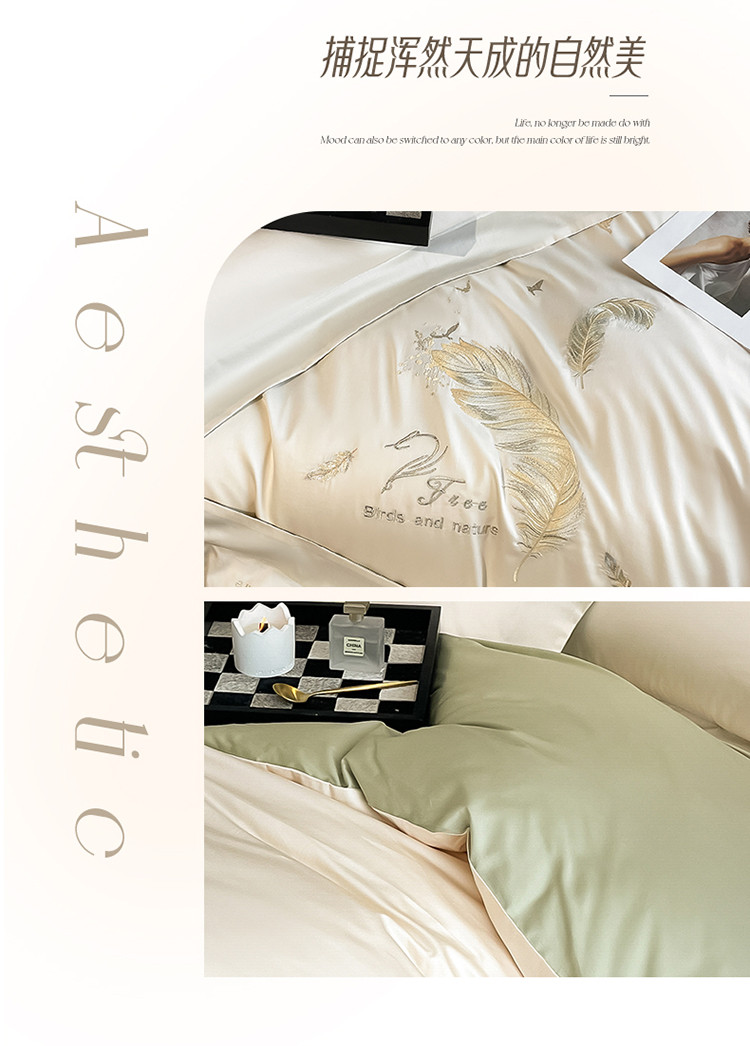 商品名称:蓝米卡夫2024新全棉高级感长绒棉刺绣四件套兰羽系列 兰羽-芝士抹茶