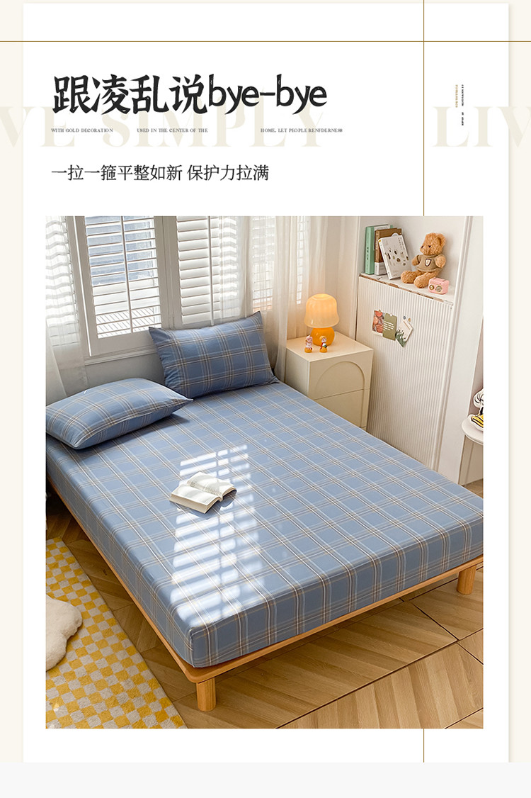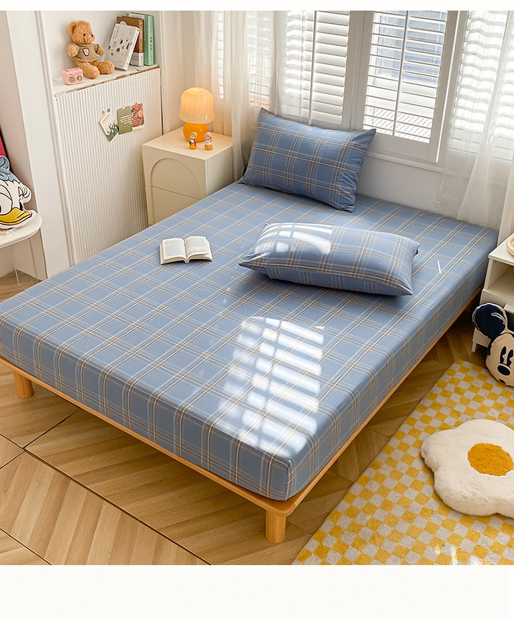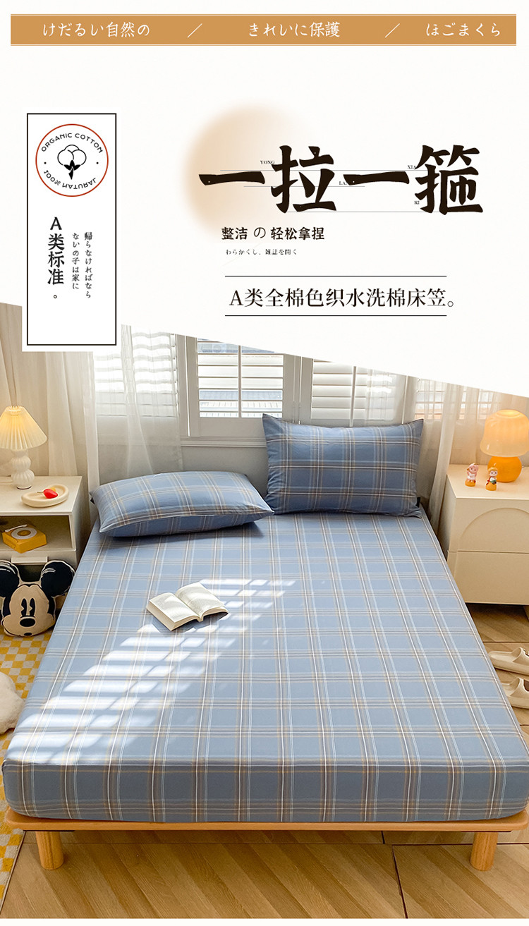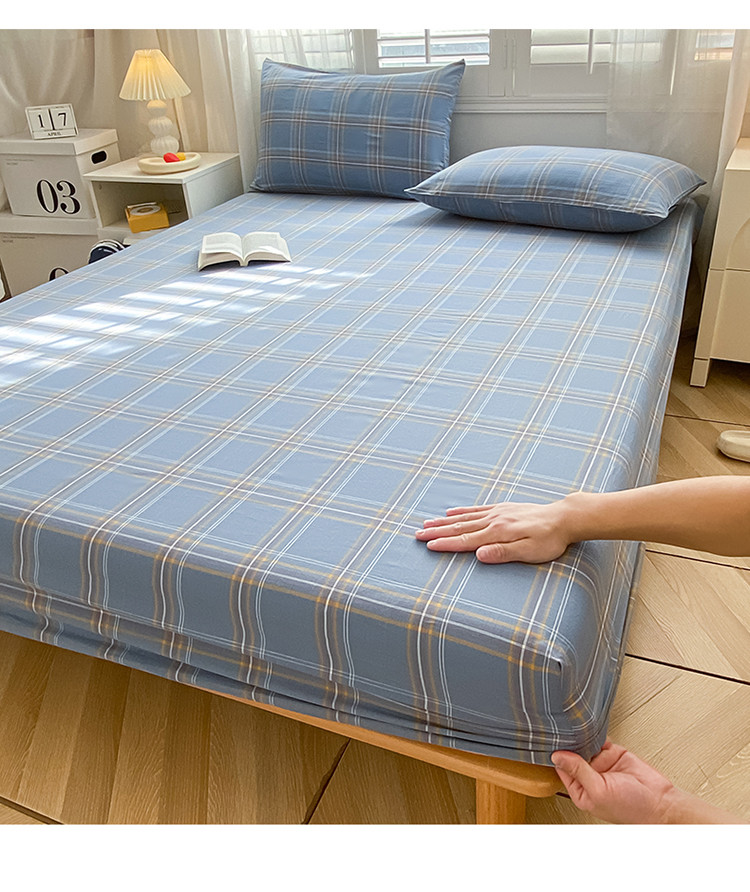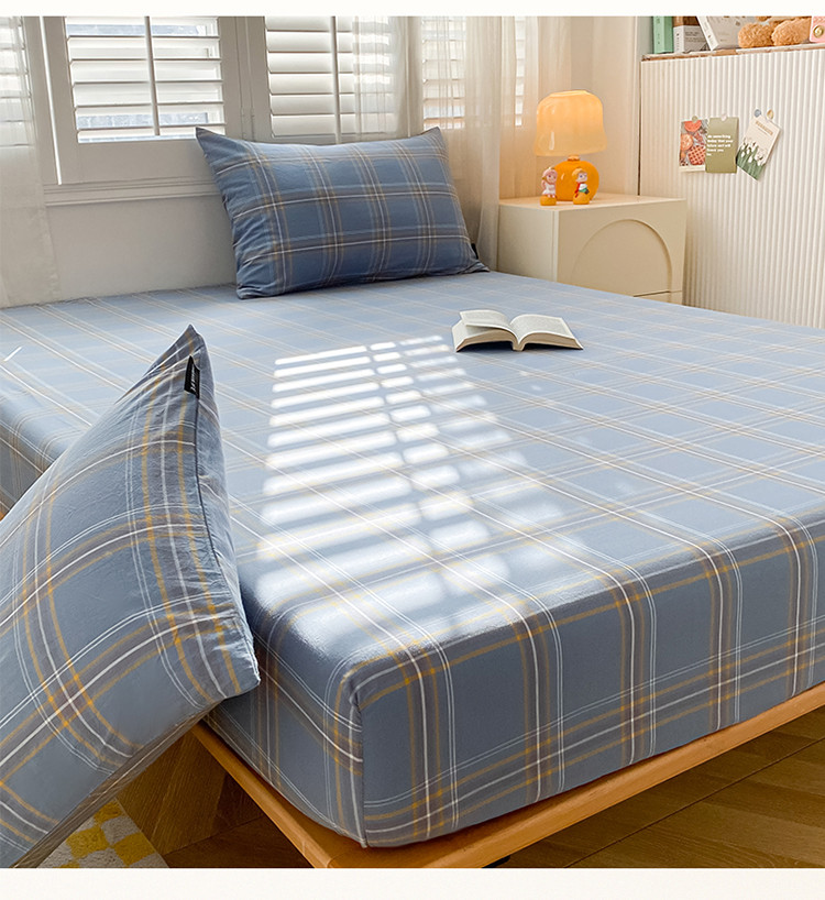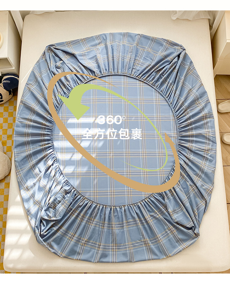 商品名称:蓝米卡夫 2024新全棉色织水洗棉A类单品床笠 海蓝大格