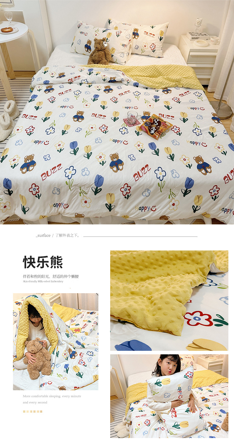 商品名称:有货2023爆款春夏夏凉被小清新春秋被卡通针织棉豆豆被 快乐熊