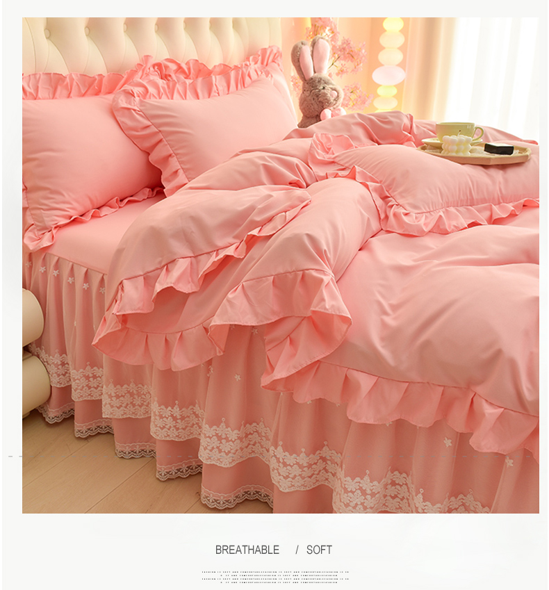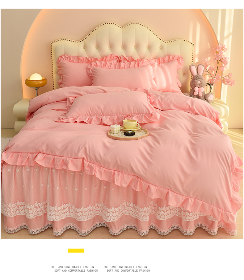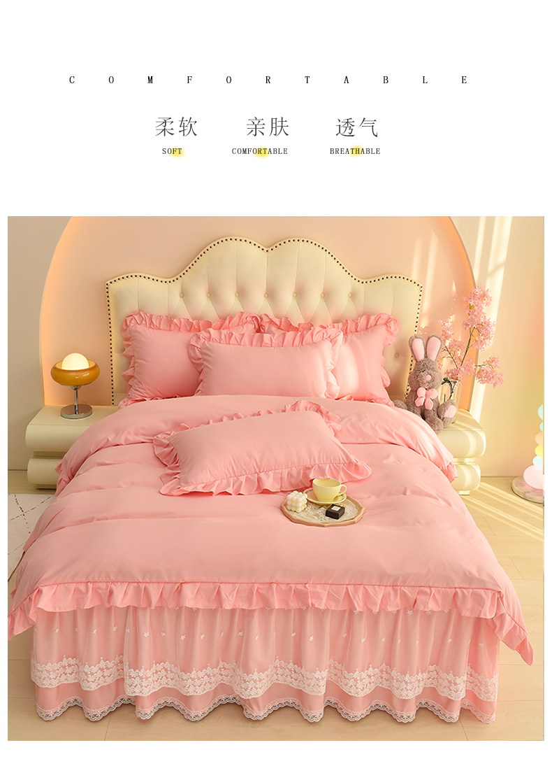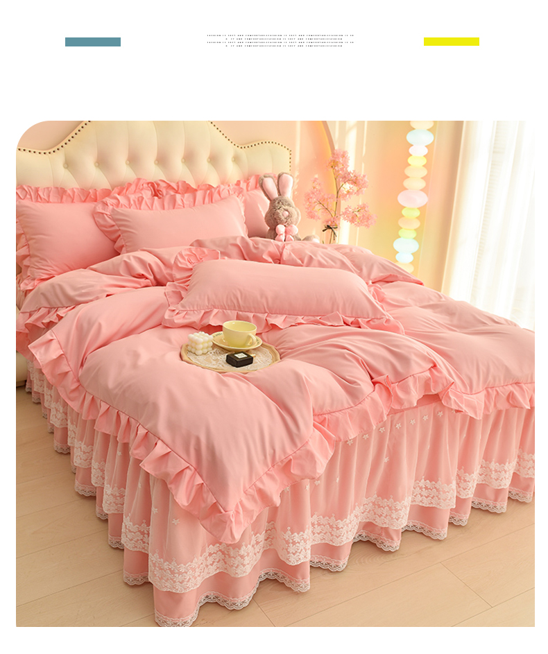 (总)迪梦姿家纺 2026新款简约纯色高密水洗棉花边床盖四件套-爱丽莎,爱丽莎-粉,爱丽莎-奶白,爱丽莎-奶黄,爱丽莎-紫,爱丽莎-绿