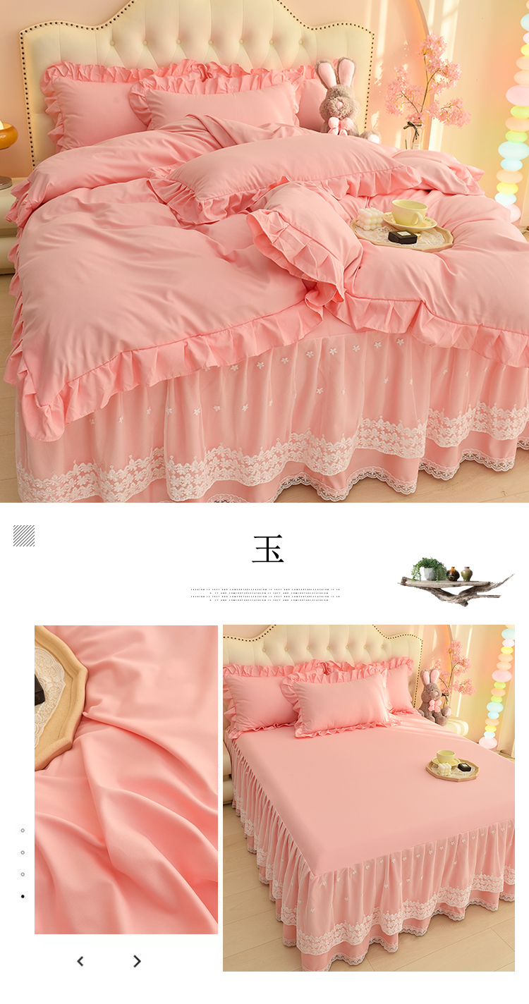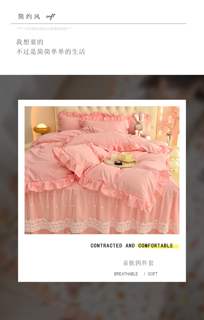 (总)迪梦姿家纺 2026年秋冬新款韩版蕾丝花边水洗棉四件套-茉莉,茉莉-奶白,茉莉-奶油黄,茉莉-暖豆沙,茉莉-苹果绿,茉莉-天真蓝,茉莉-仙女粉,茉莉-紫