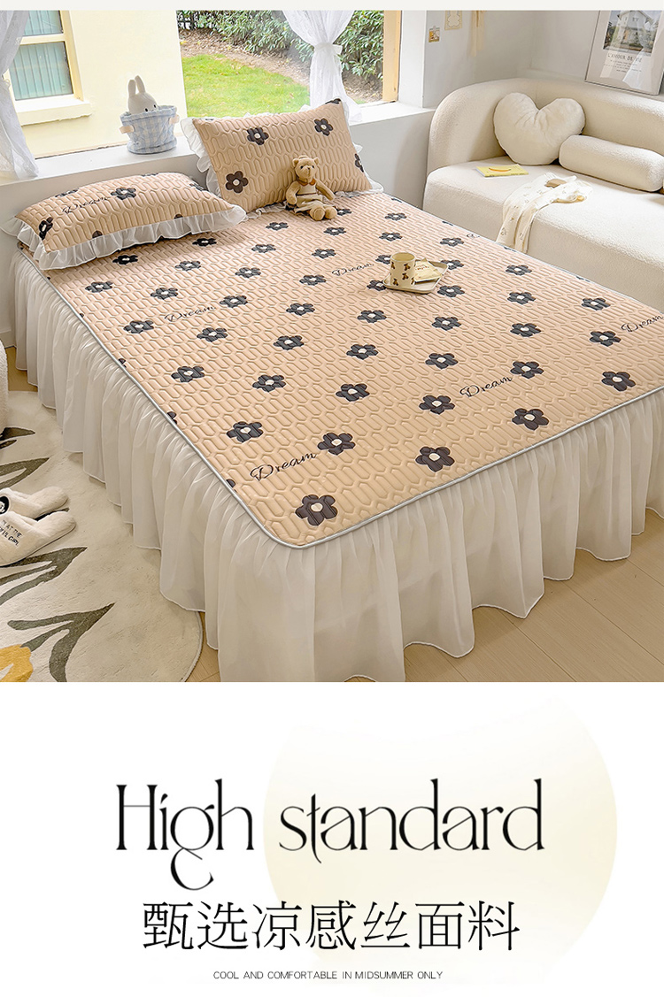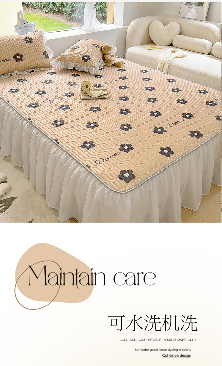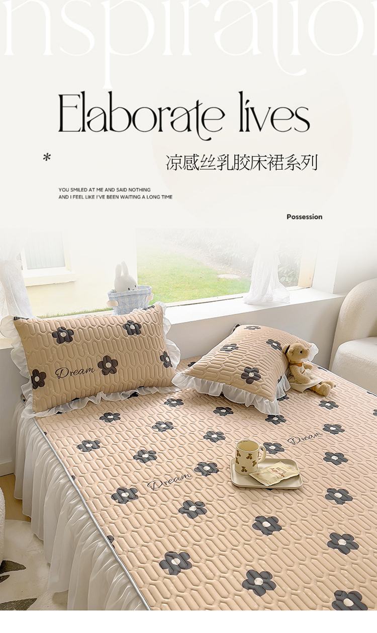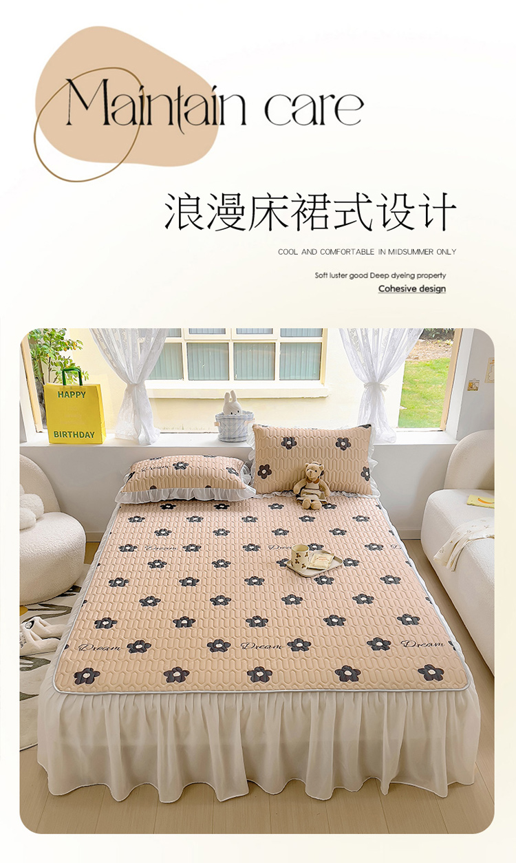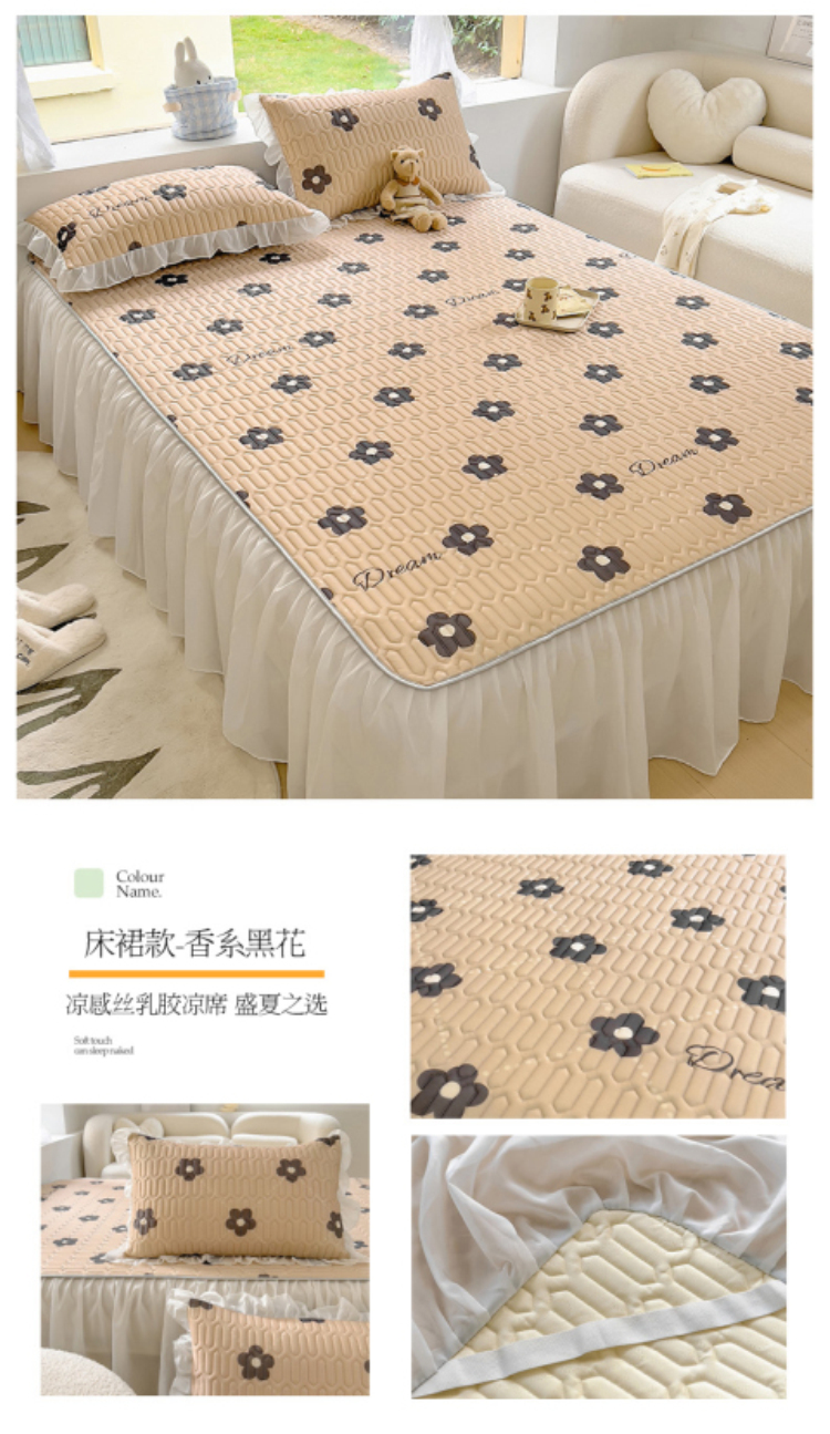 柒月家居2023新款乳胶床裙款凉席和夏被 床裙款-香系黑花
