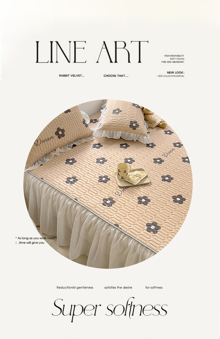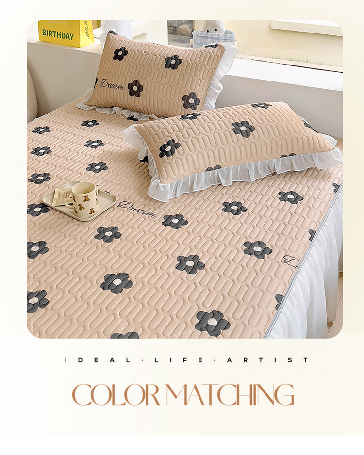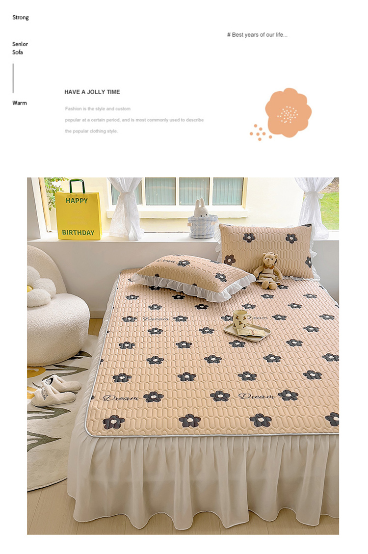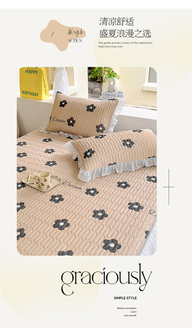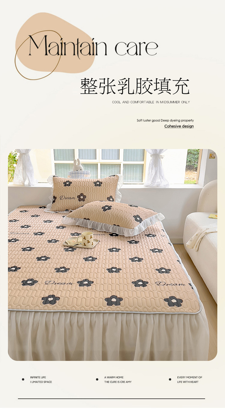 柒月家居2023新款乳胶床裙款凉席和夏被 床裙款-香系黑花