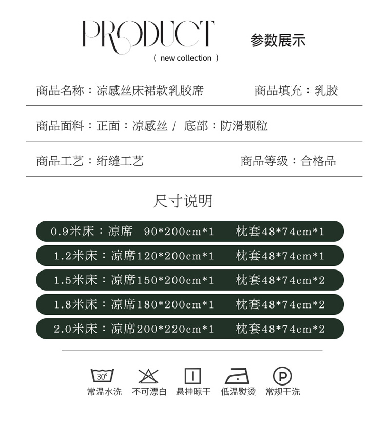 商品名称:柒月家居2023新款乳胶床裙款凉席和夏被 床裙款-香系黑花