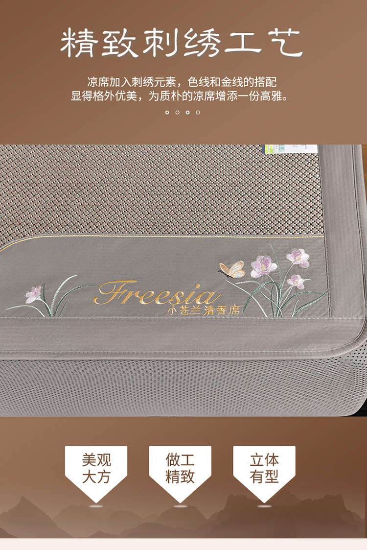 (总)小牛席业2023新款小苍兰清香冰藤席系列凉席竹席冰丝席乳胶席,黑咖,金色,绿色,浅蓝,香槟,银灰
