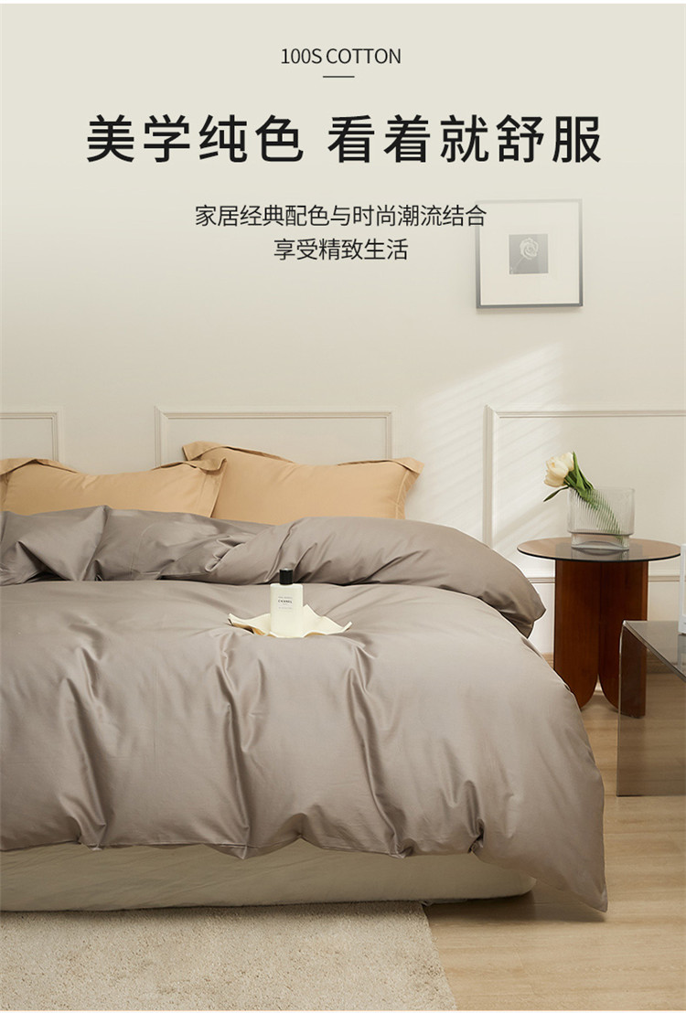 (总)EH家居 2026新款长绒棉窄边四件套,白茶奶黄,冰草紫,初春夏田,焦糖橙,静谧蓝,泡沫粉,青葱色,山核桃棕