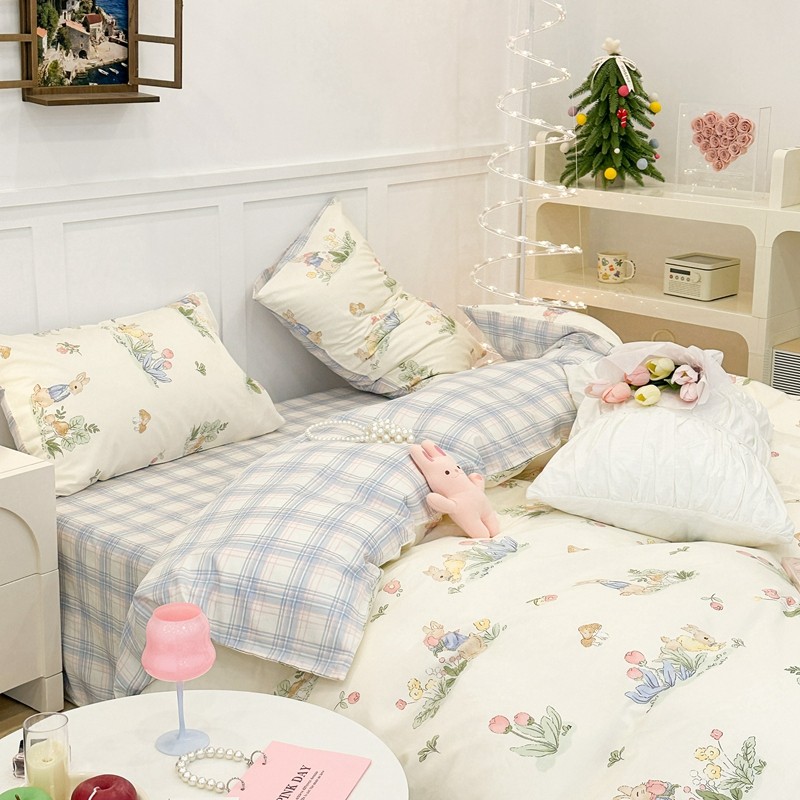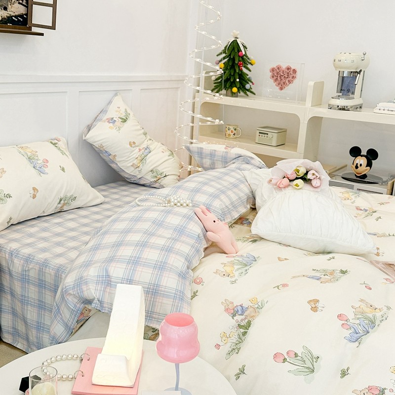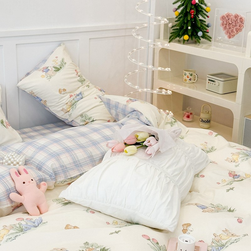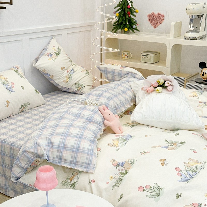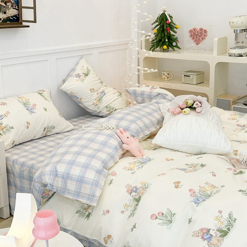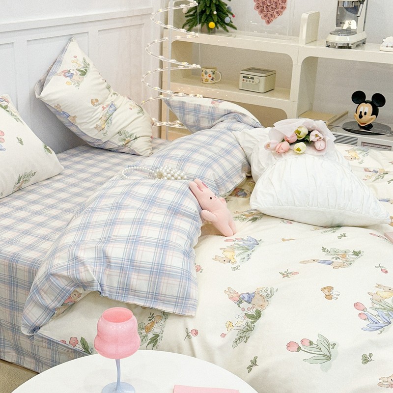 (总)昔可 2023新款学生季卡通普通款四件套,彩色气球熊,彩条恐龙,憨憨熊,花蜜小兔,蘑菇兔,圈圈草莓,蔬菜小兔,郁金香小萌狗