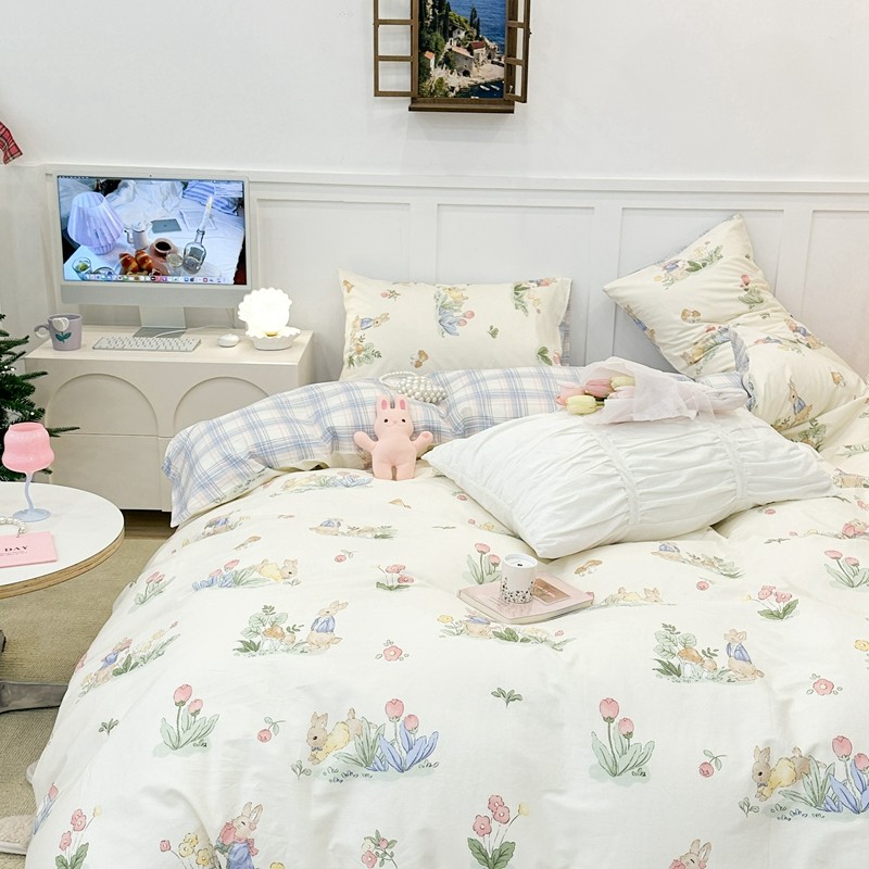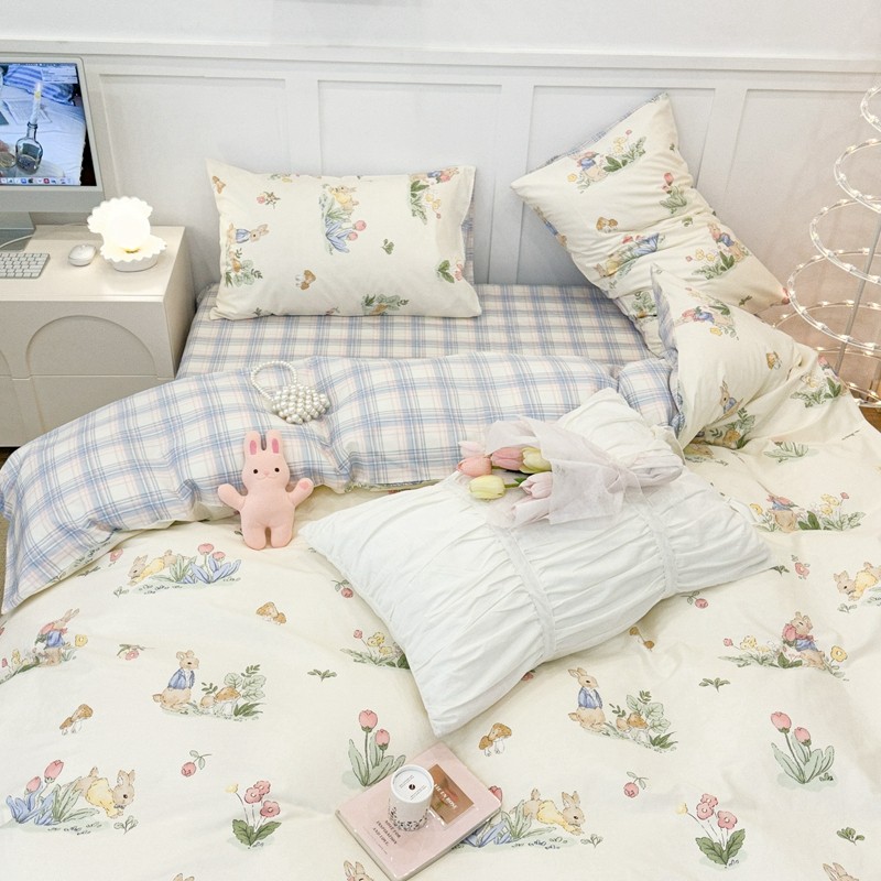 (总)昔可 2023新款全棉四件套-第五批,春日采花小兔,复古波西,落樱紫花,绿野小兔,排排郁金香,芍药女孩,叶子樱桃
