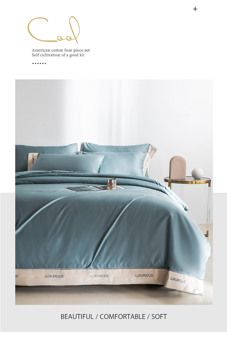(总)米奈家居 2025新款贴边拼角100支新疆长绒棉四件套-诺拉,冰川蓝,豆蔻紫,落霞粉,奶杏棕,山茶红,松雾灰
