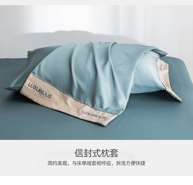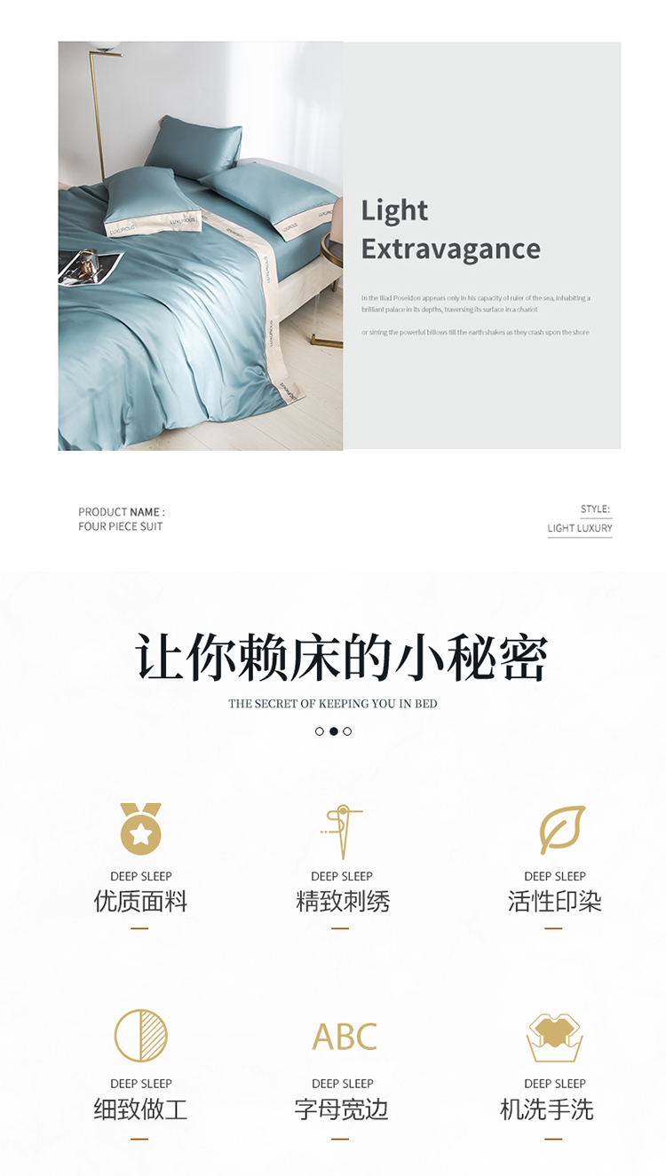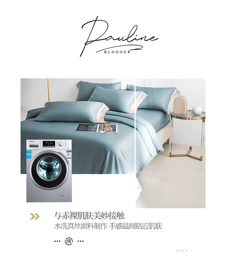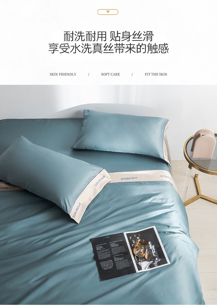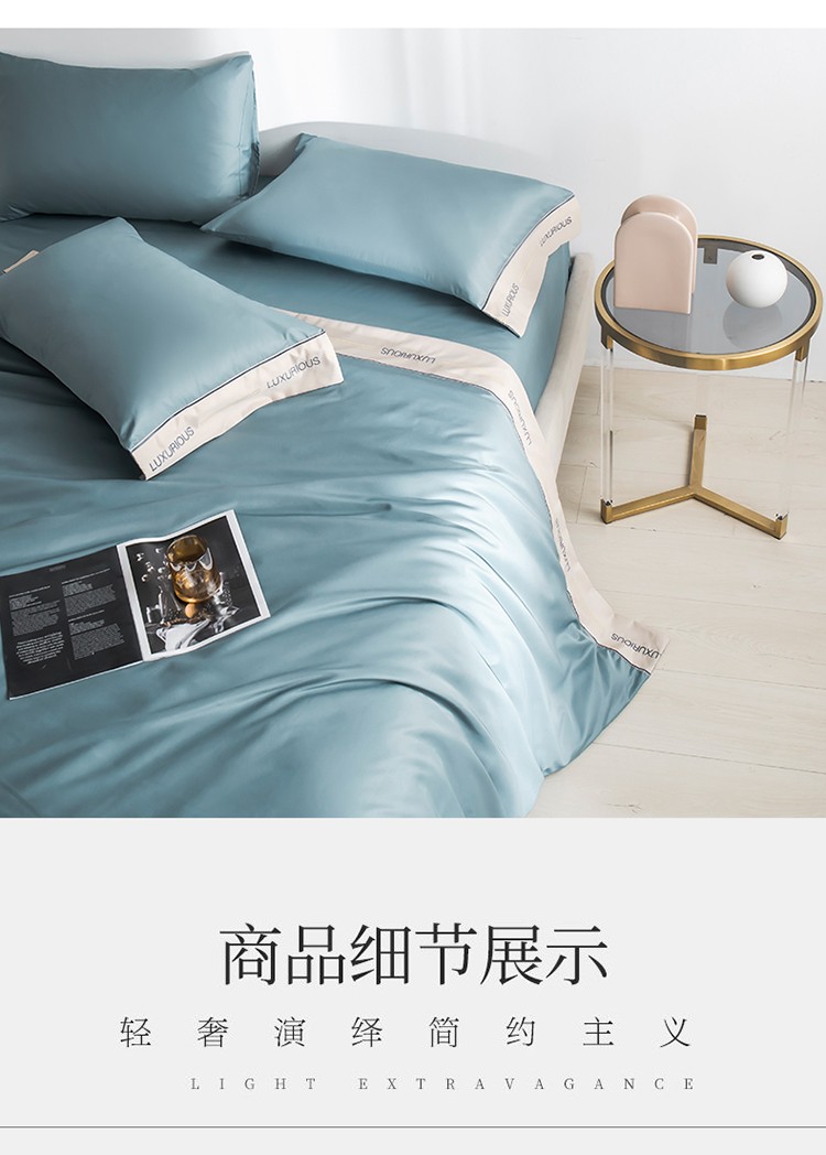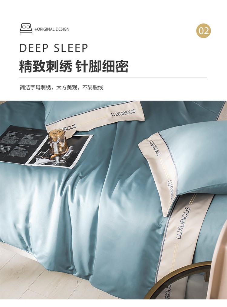 商品名称:米奈 2024年新款水洗真丝贴边绣花四件套-奈利 蓝色