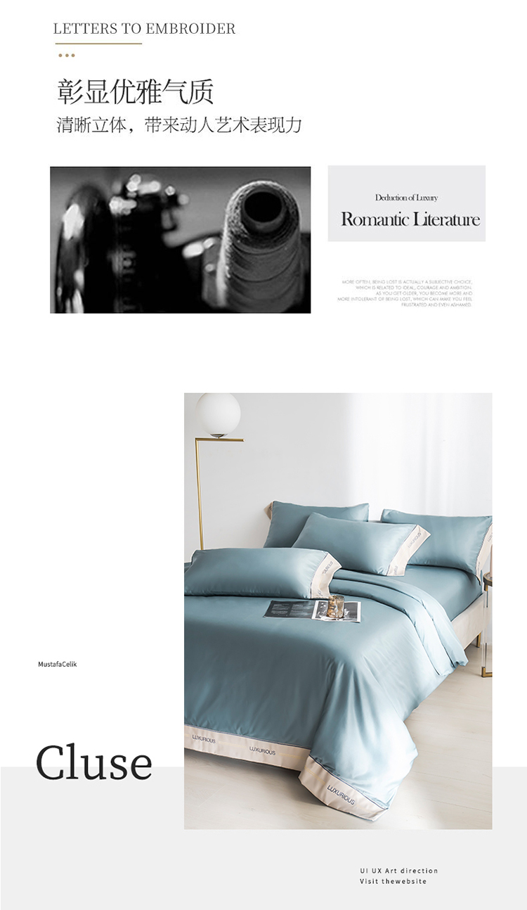米奈 2024年新款水洗真丝贴边绣花四件套-奈利 蓝色