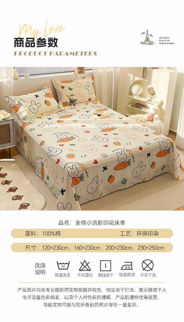 商品名称:绵庭 2023新款 全棉印花床单 萝卜兔
