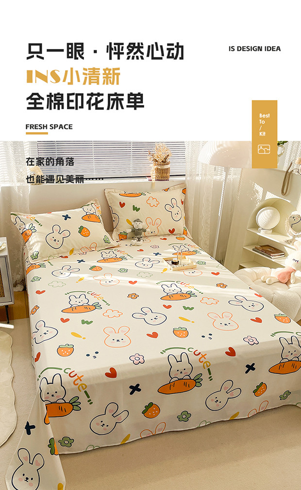 绵庭 2023新款 全棉印花床单 萝卜兔