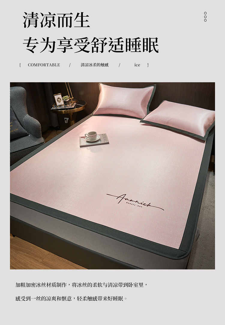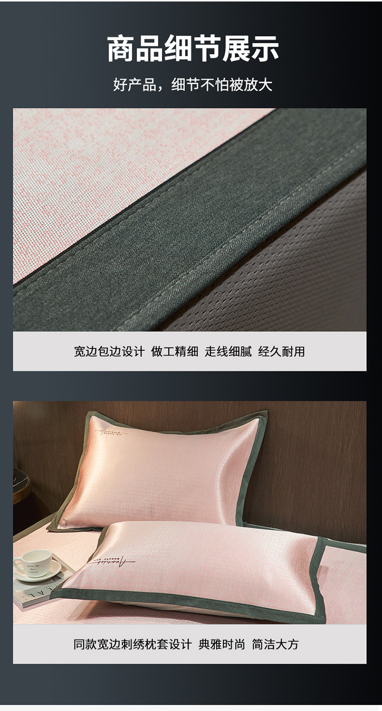 商品名称:全季家居 2023新款纯色英文刺绣肌理纹冰丝凉席 淡粉色