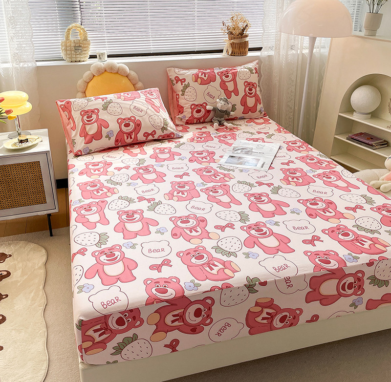绵庭 2023新款 全棉印花床笠 快乐草莓熊