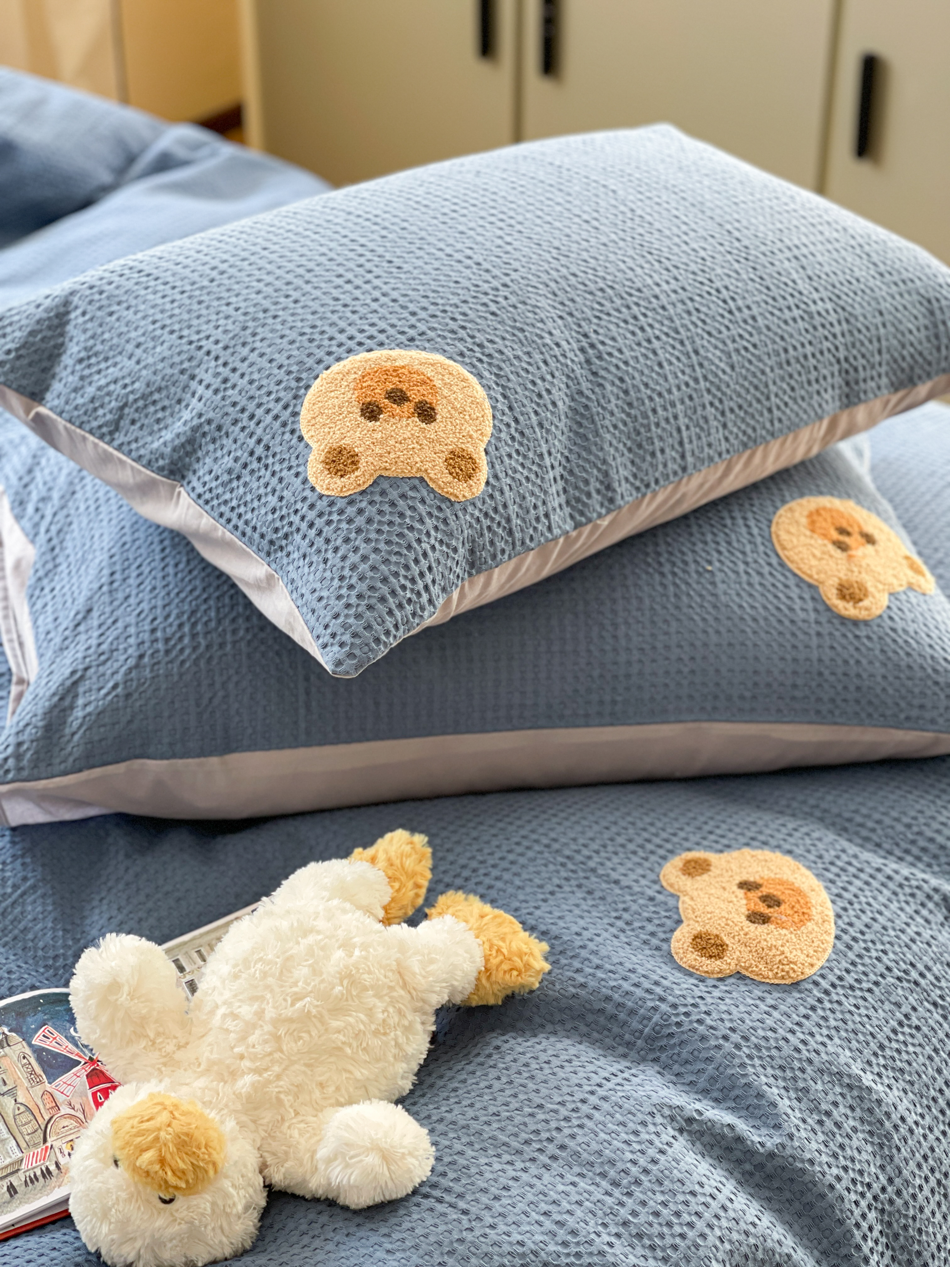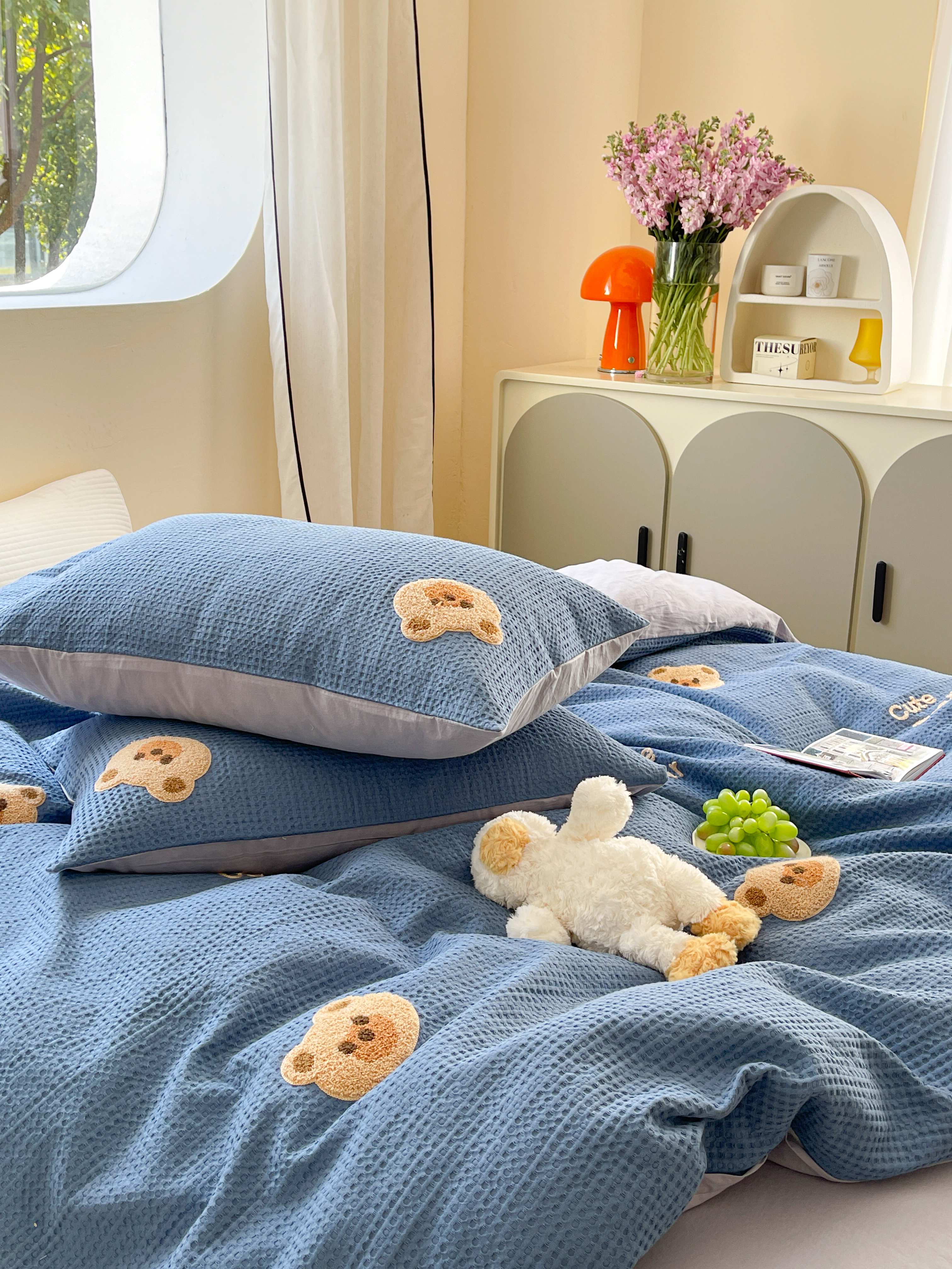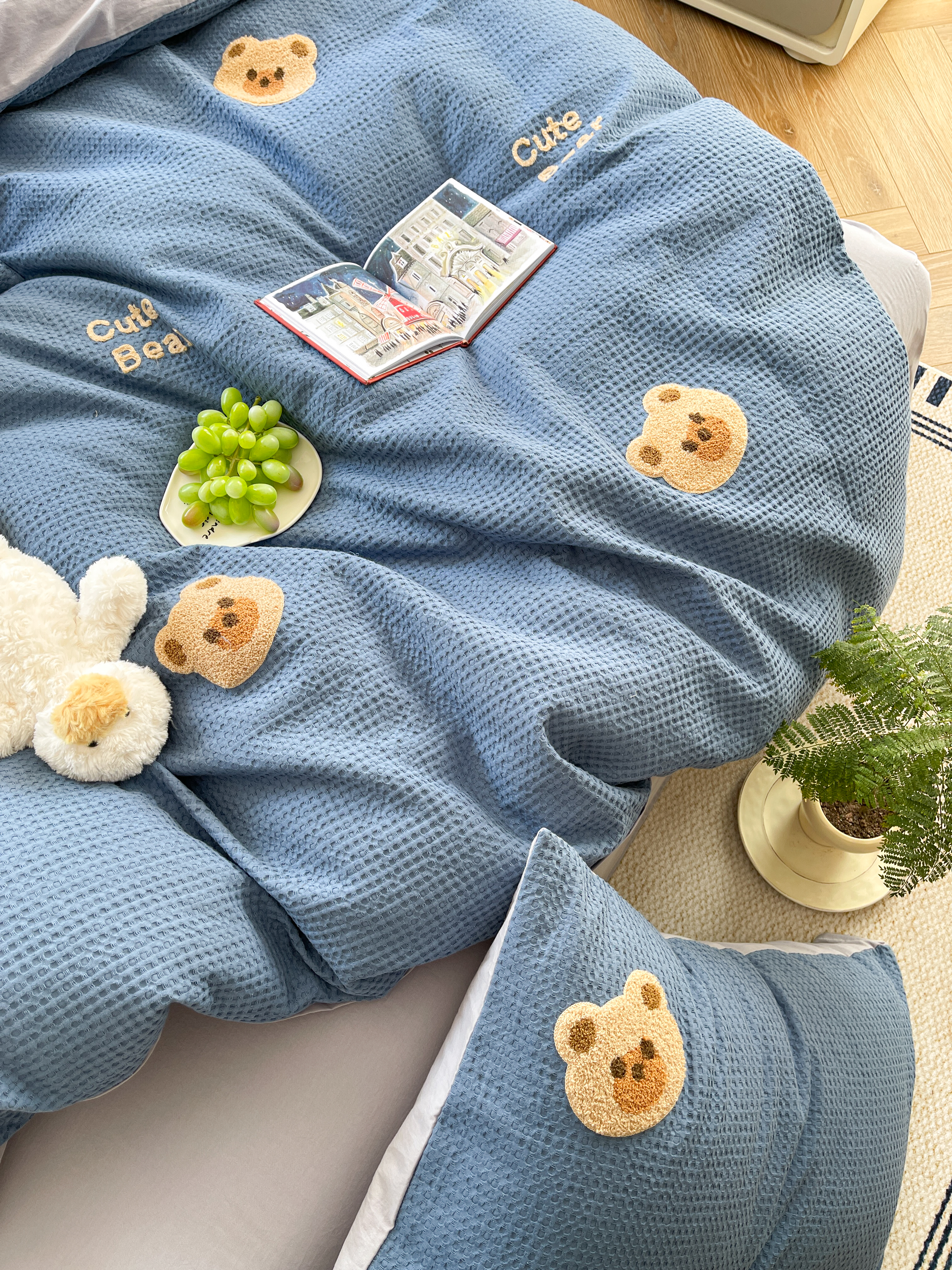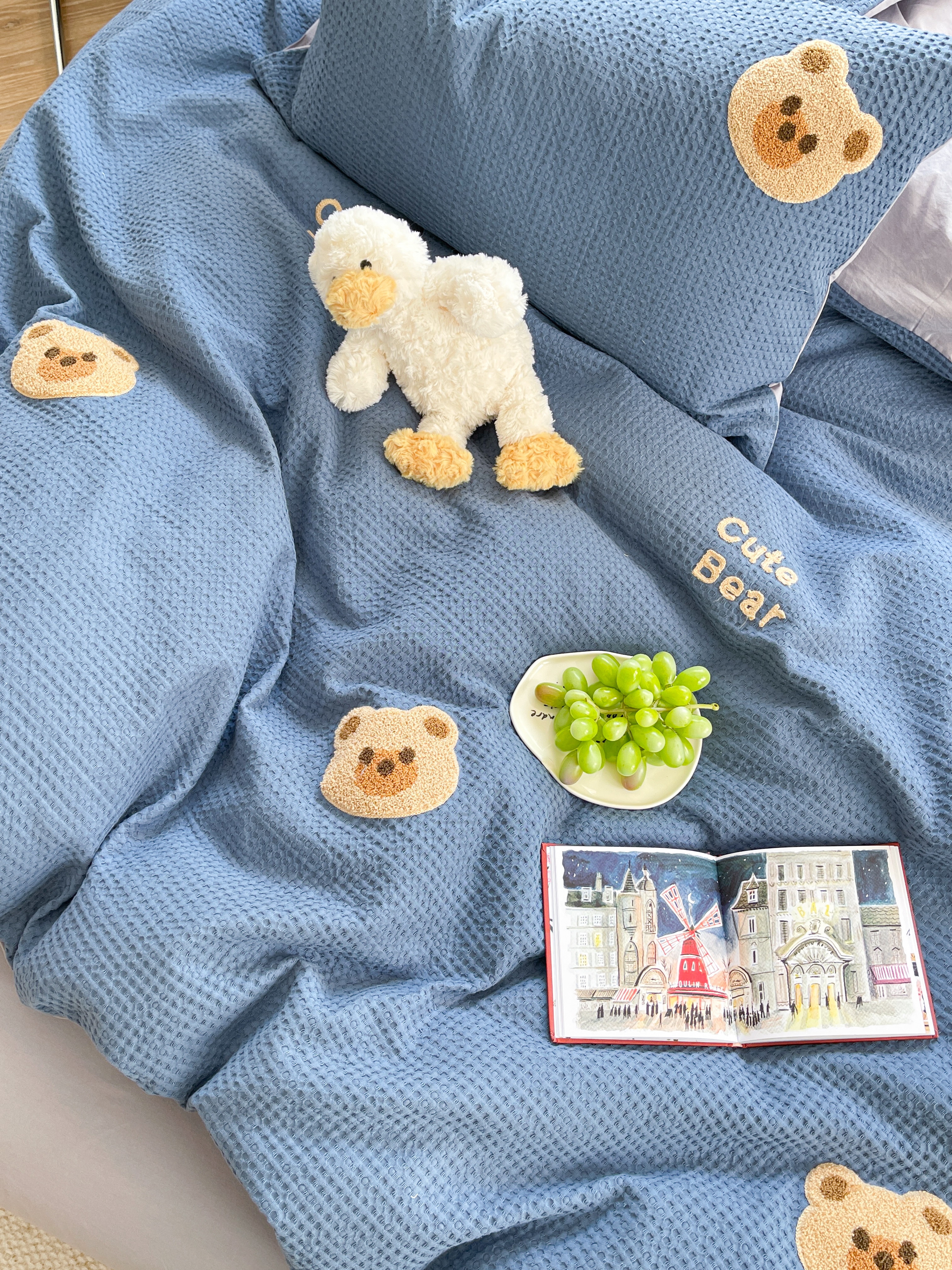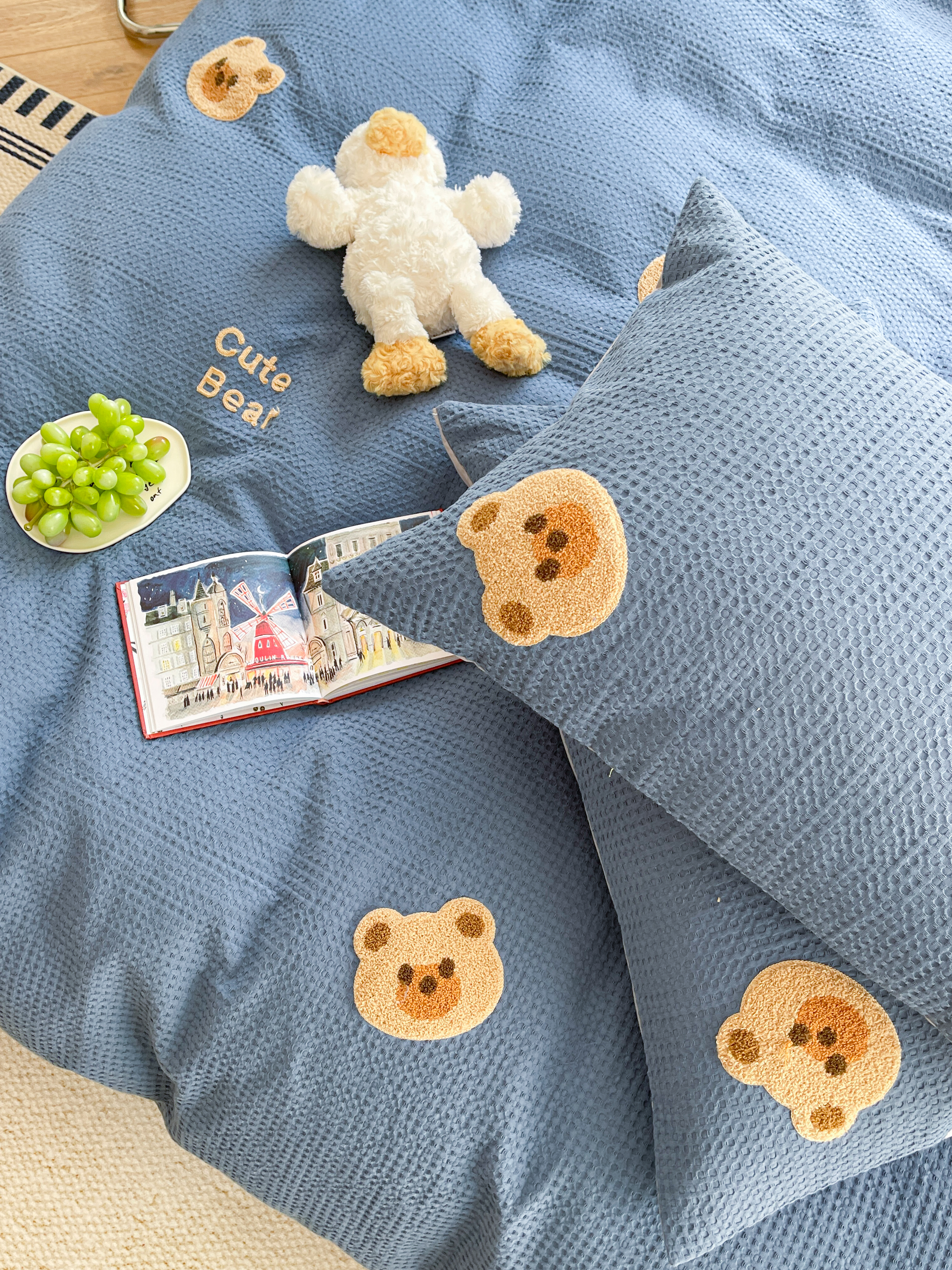 商品名称:柚子 2023新款全棉高克重华夫格刺绣四件套 华夫格-小熊