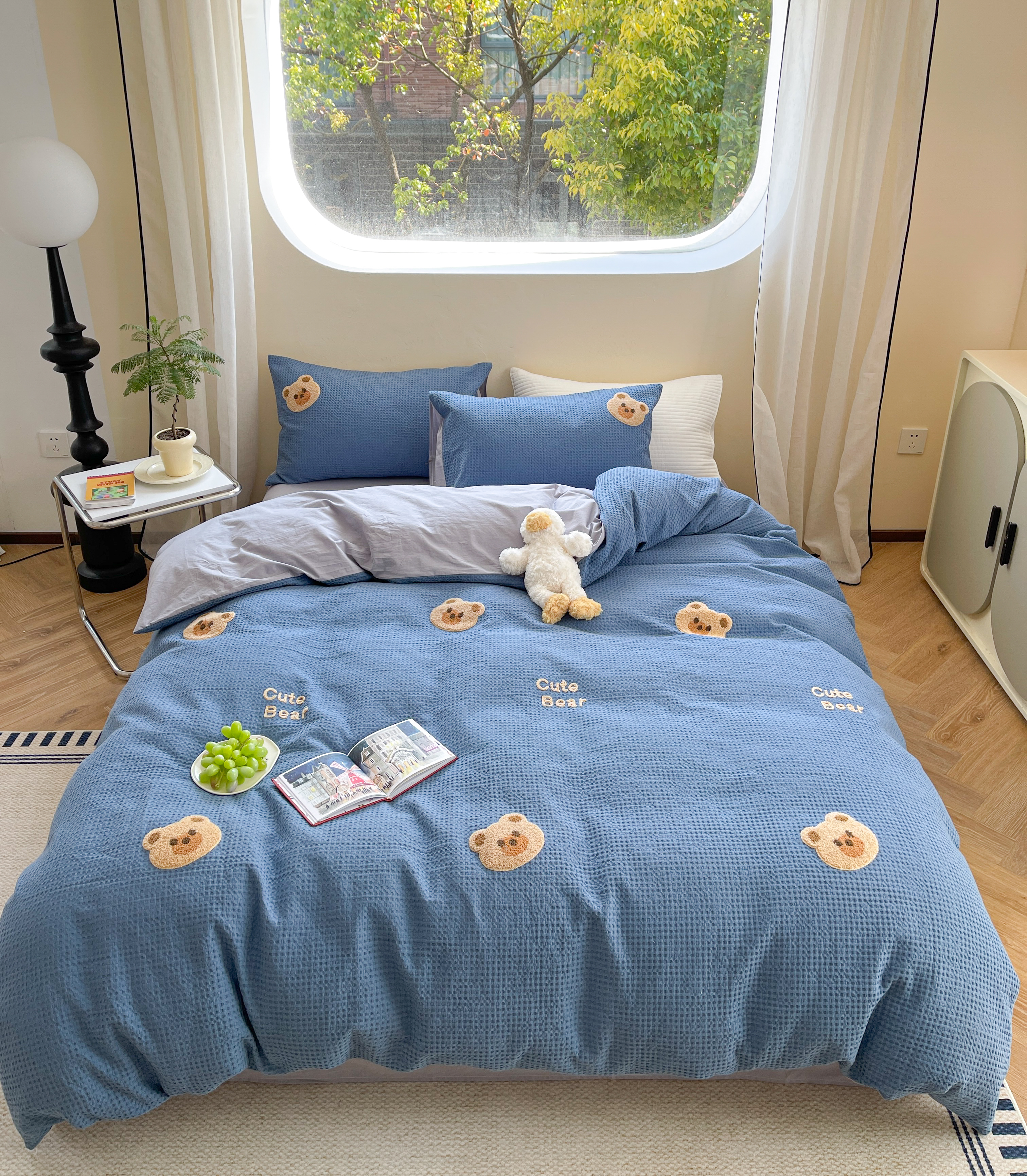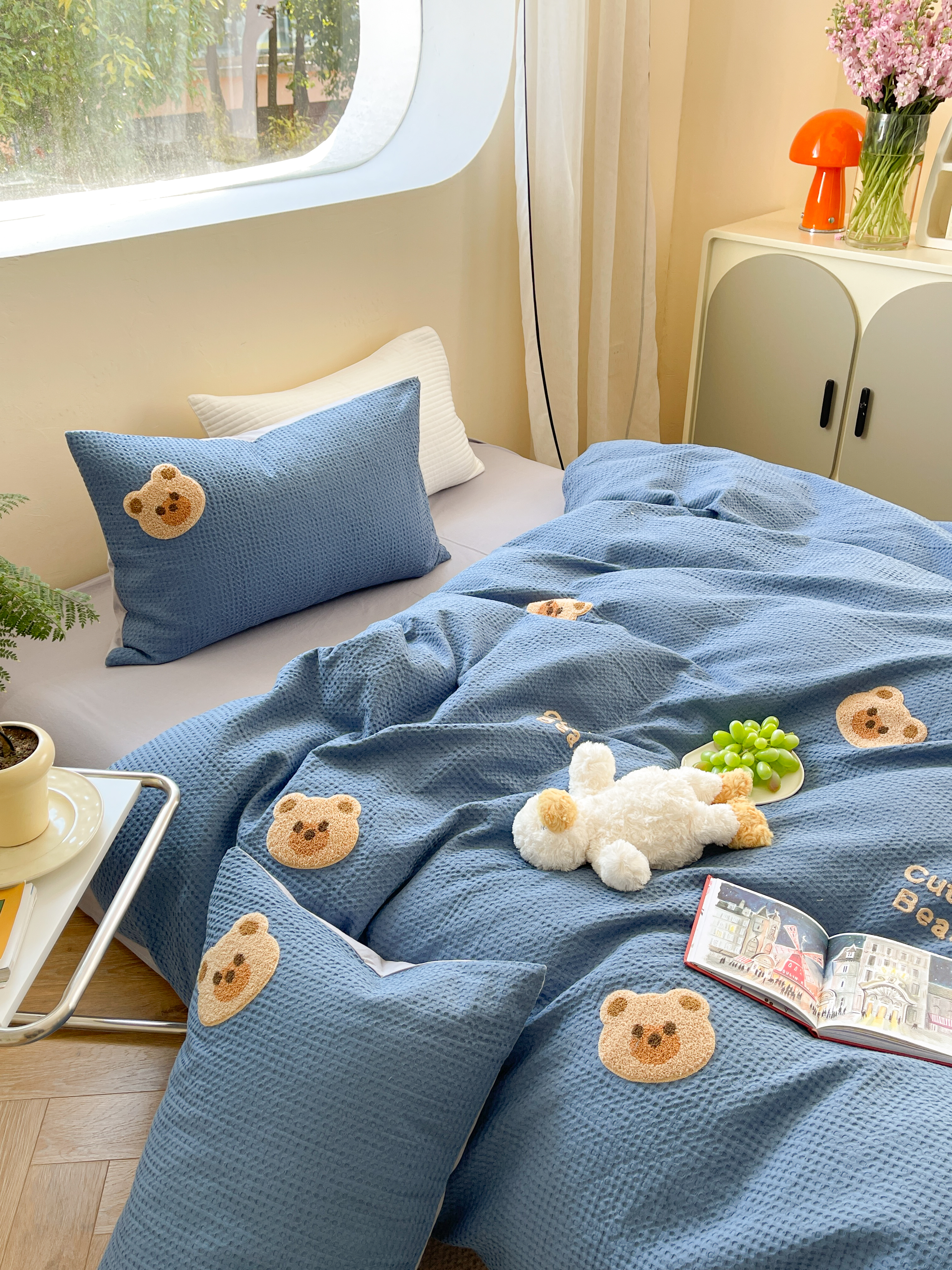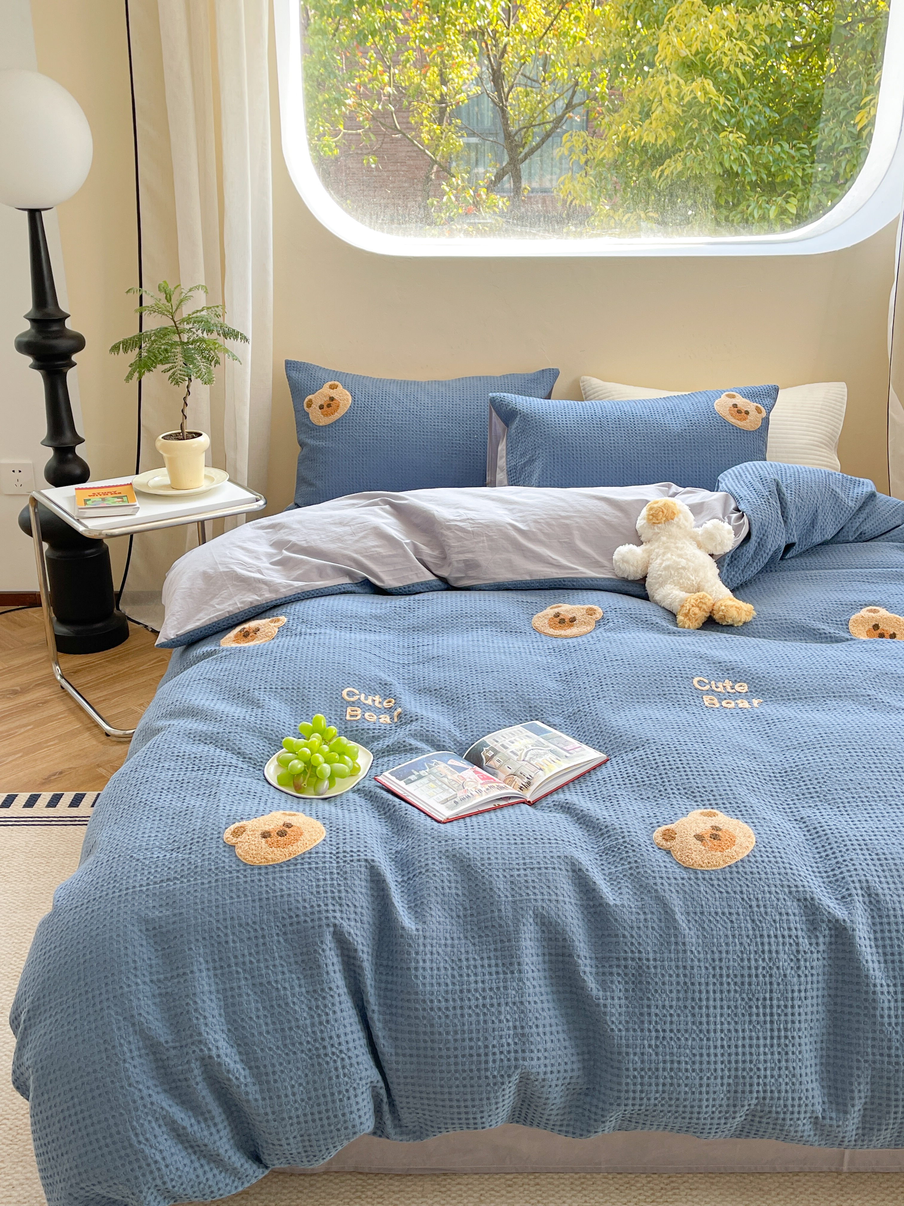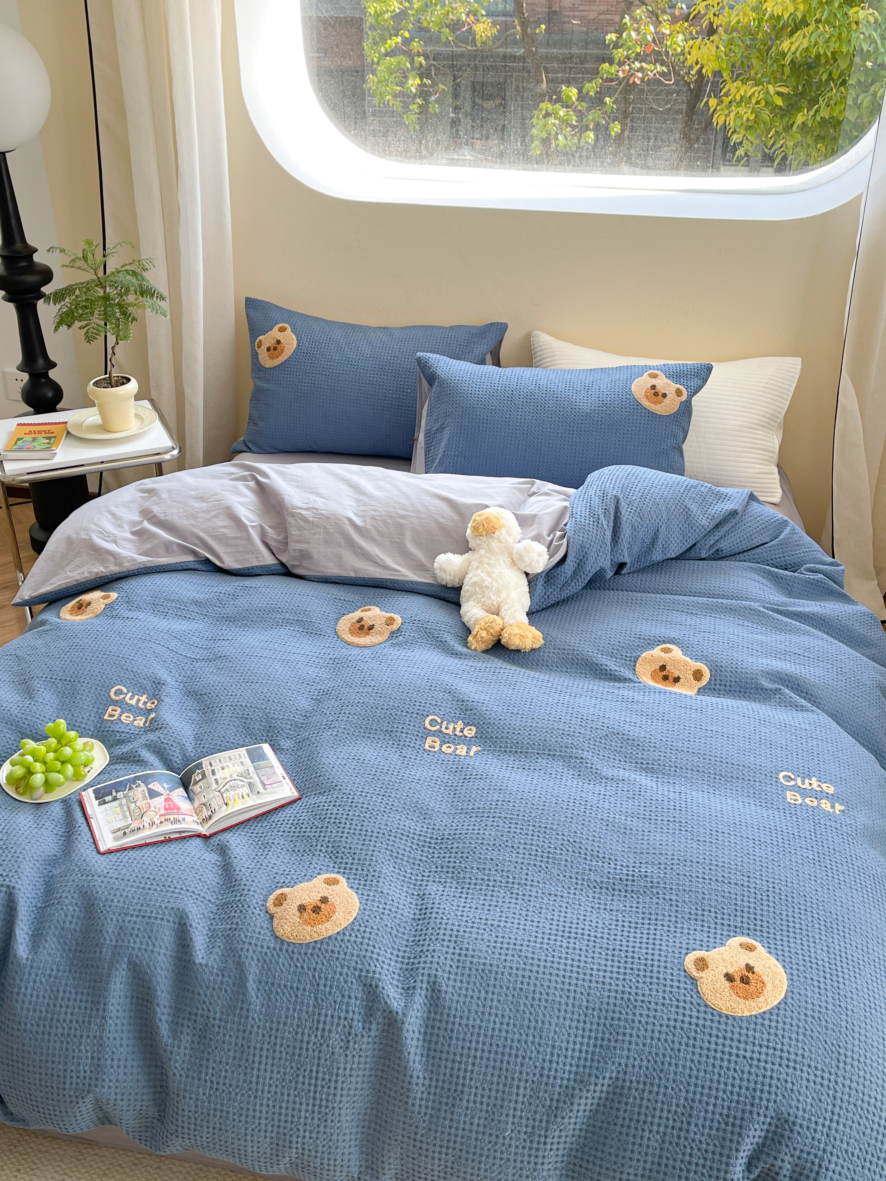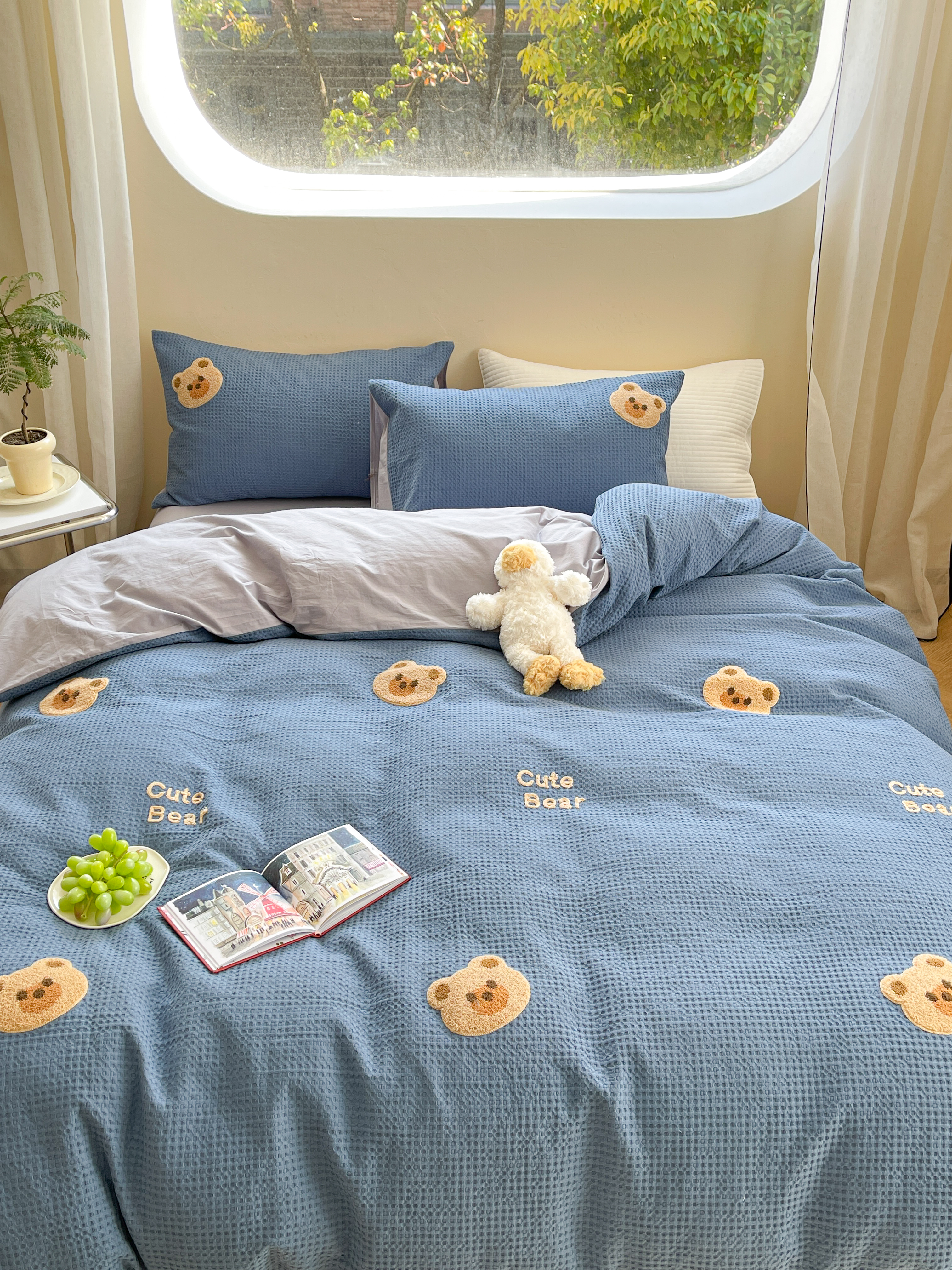 商品名称:柚子 2023新款全棉高克重华夫格刺绣四件套 华夫格-小熊