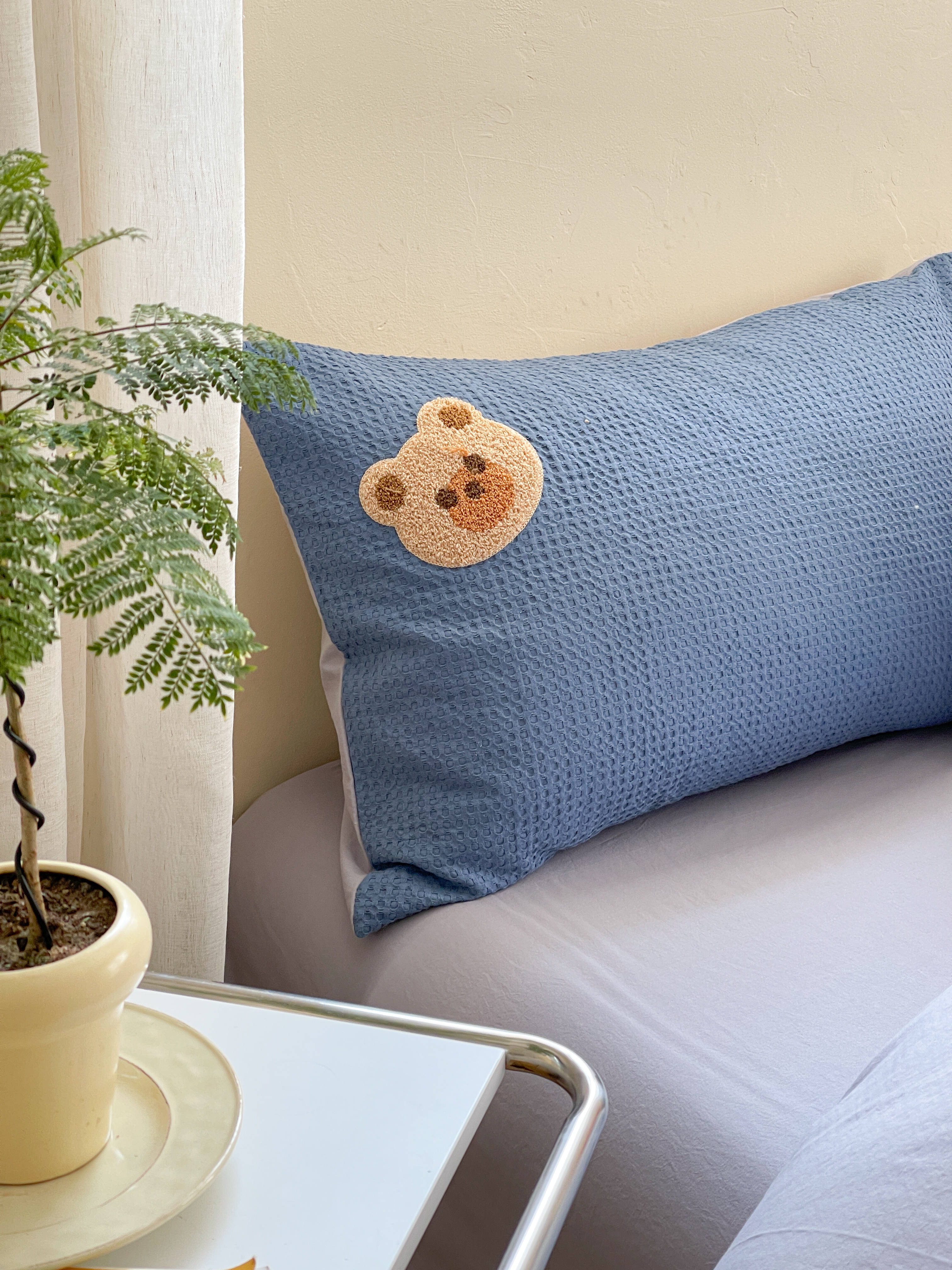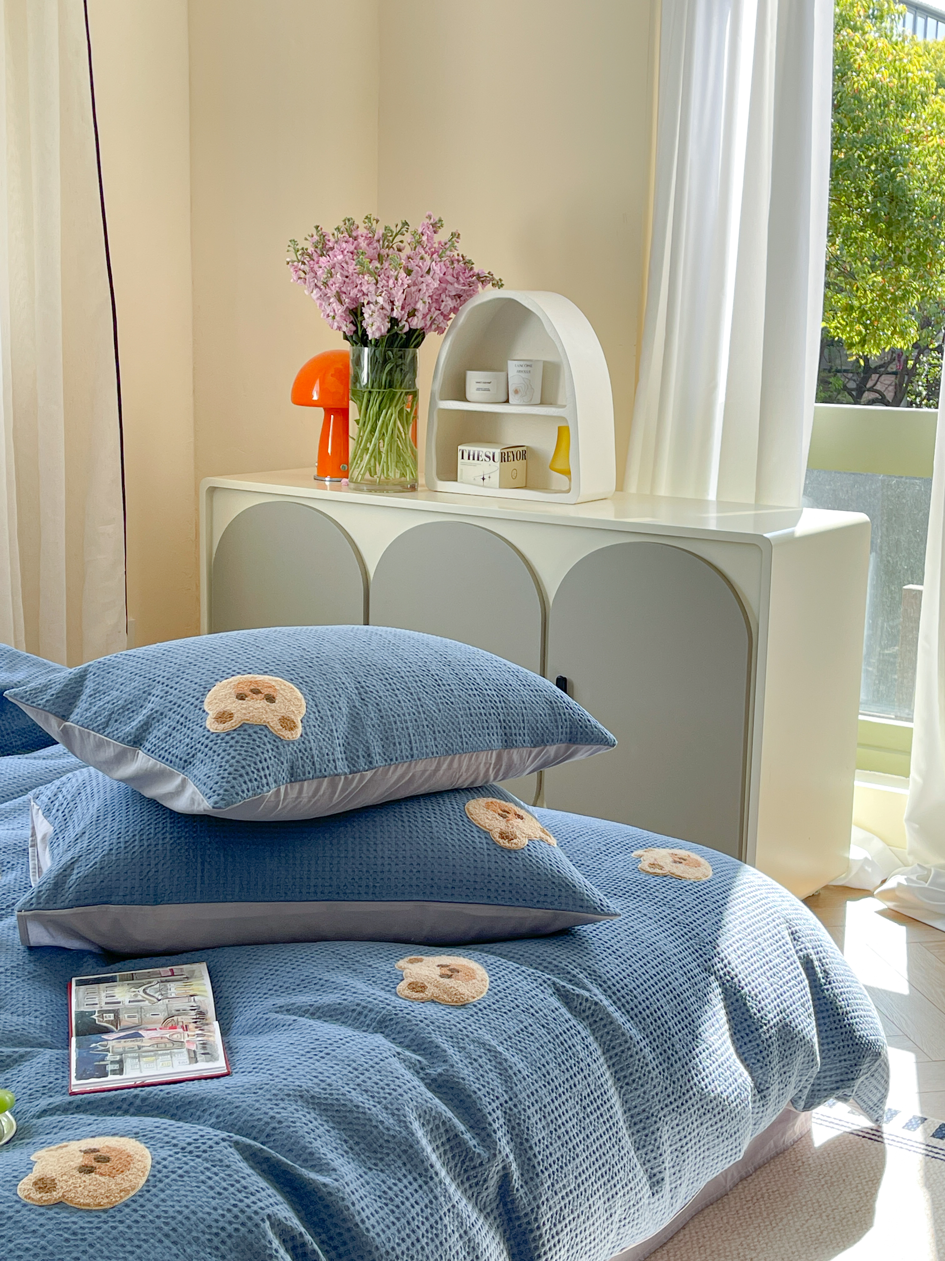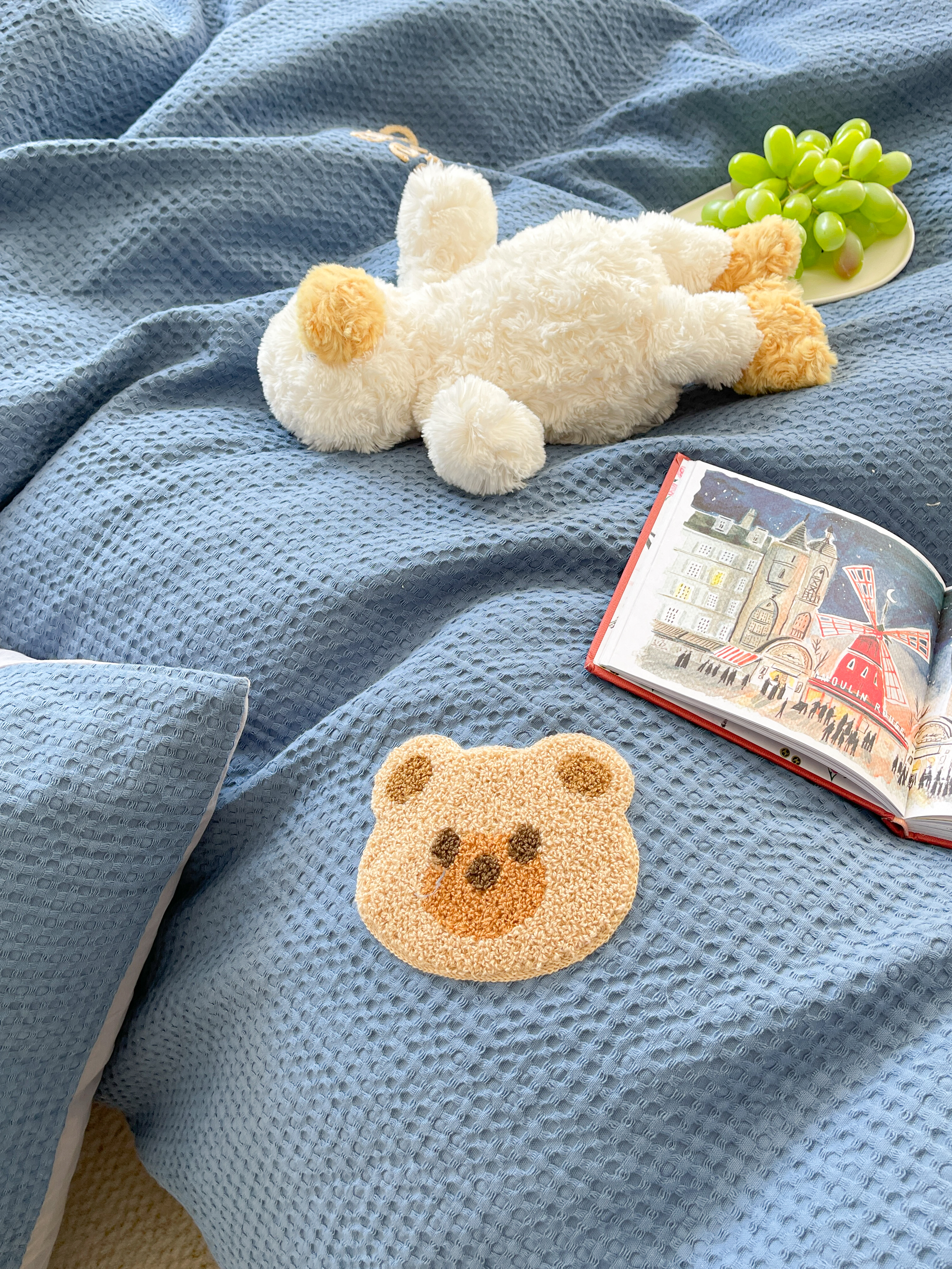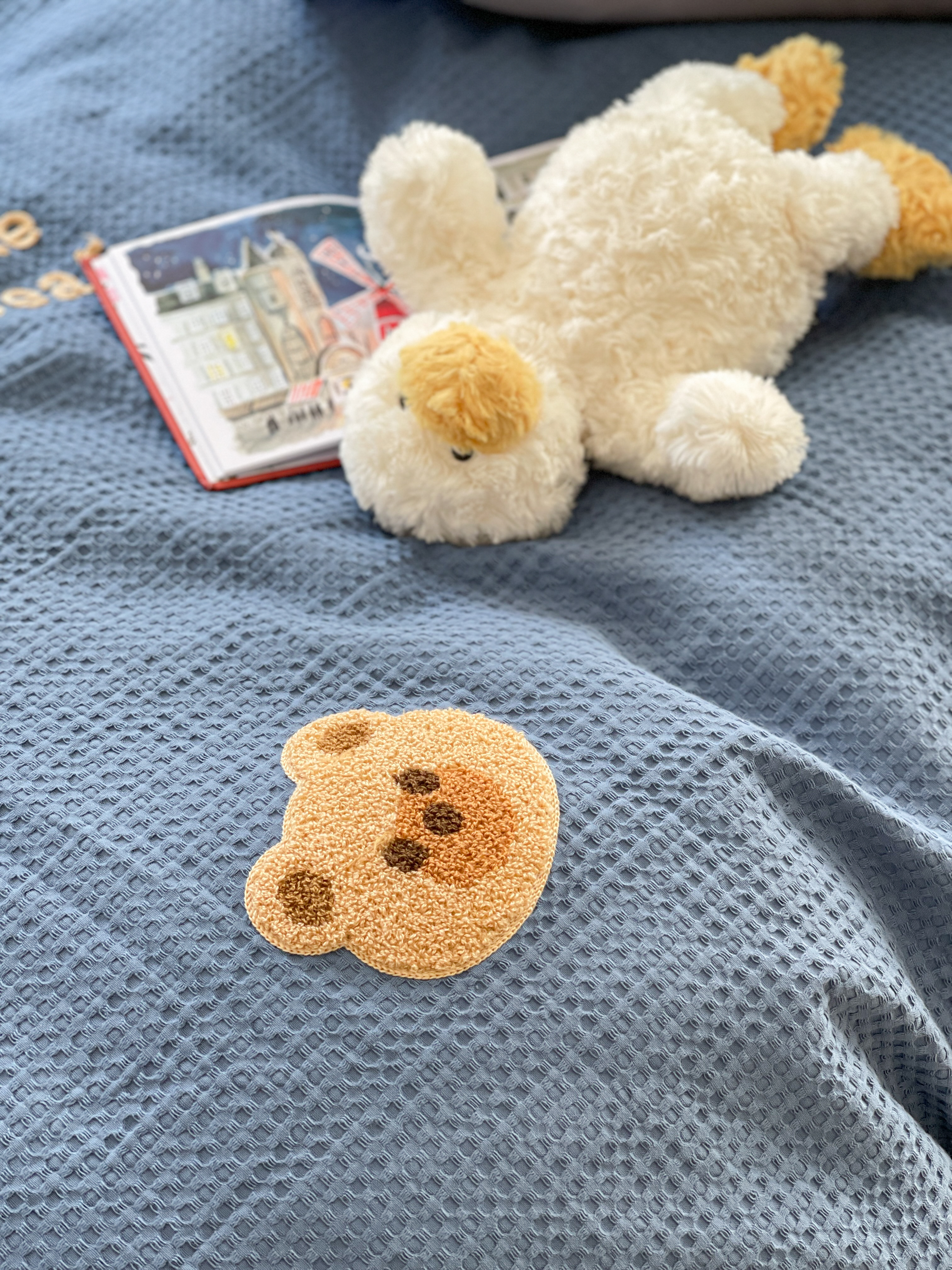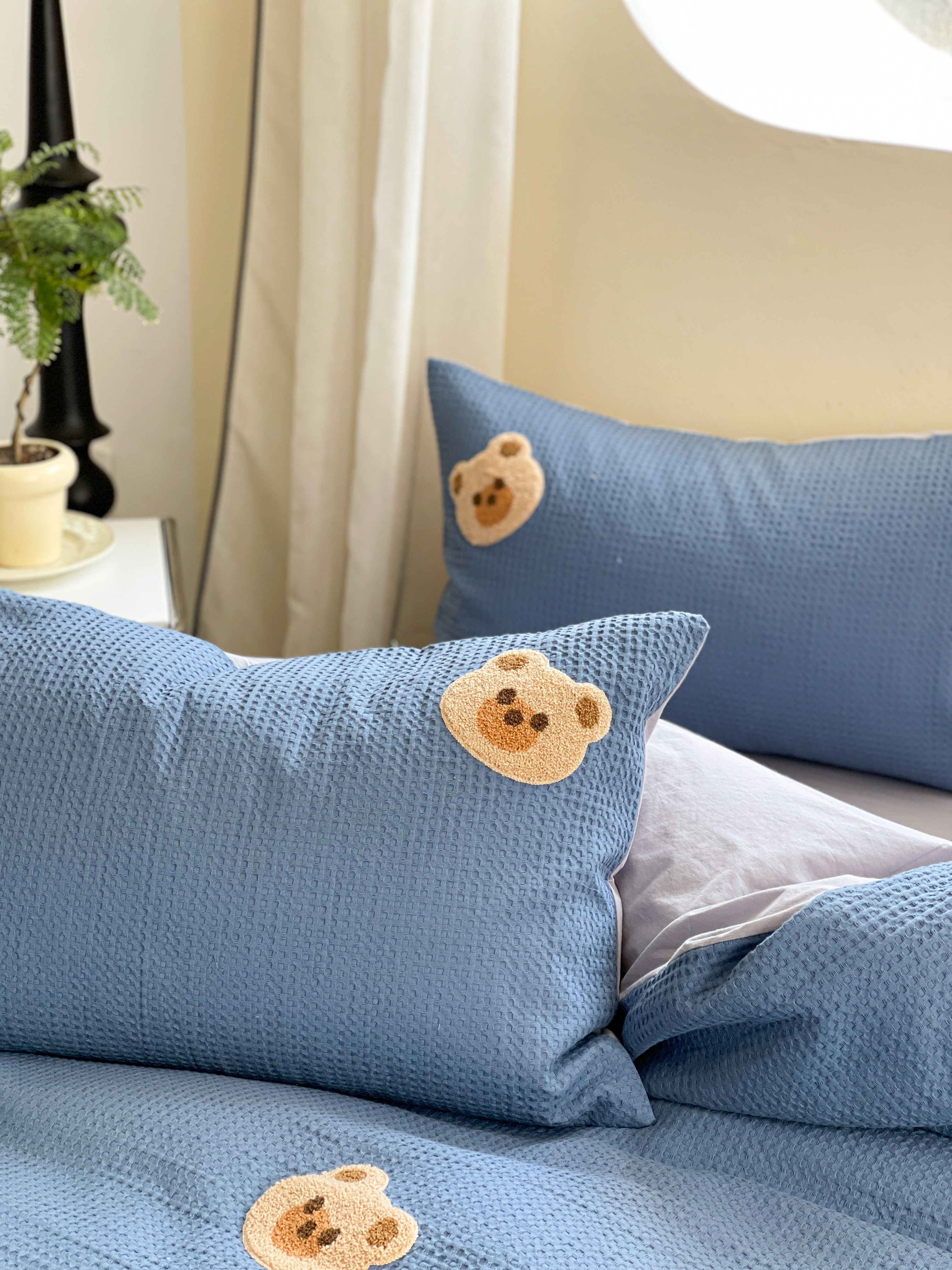 商品名称:柚子 2023新款全棉高克重华夫格刺绣四件套 华夫格-小熊
