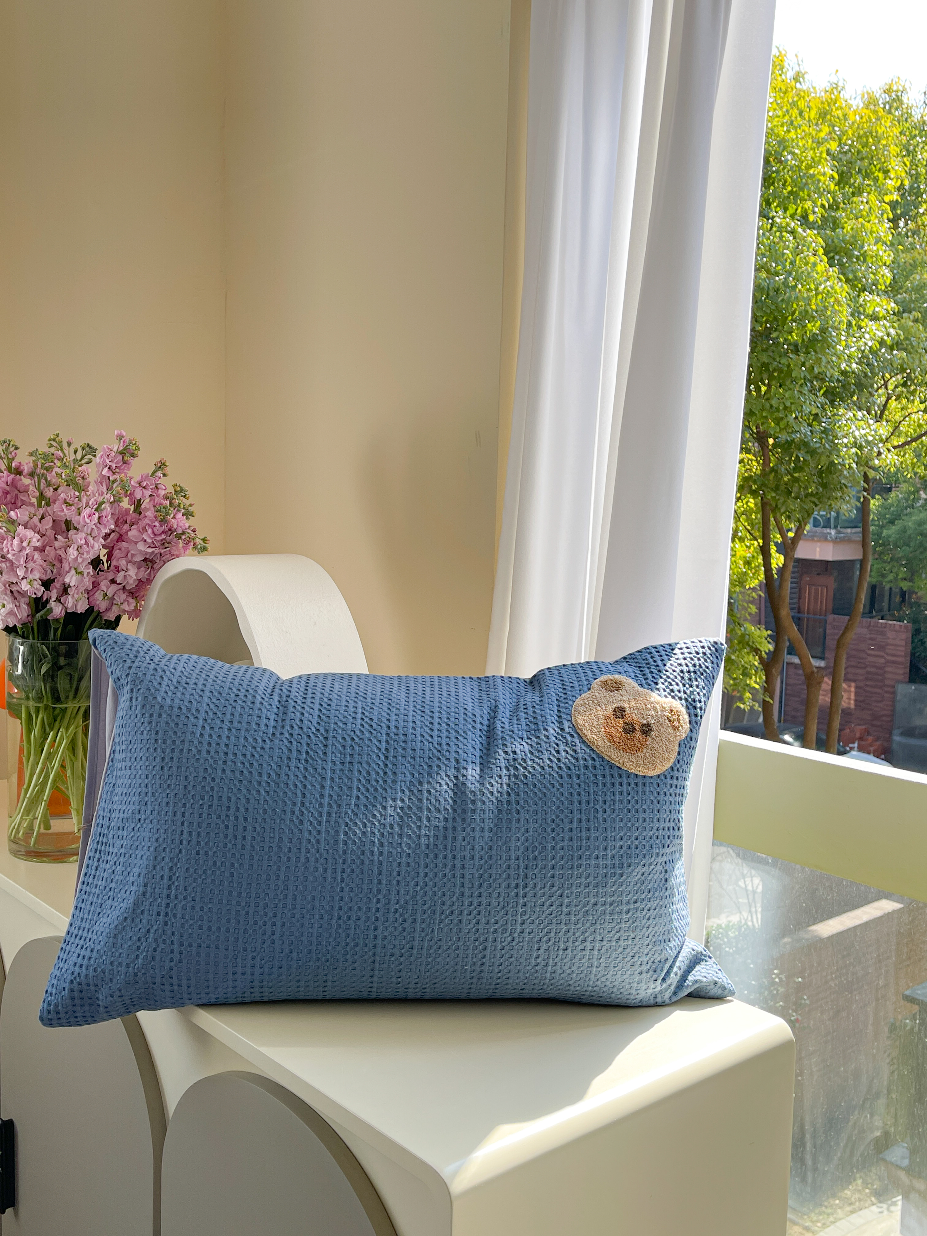 柚子 2023新款全棉高克重华夫格刺绣四件套 华夫格-小熊
