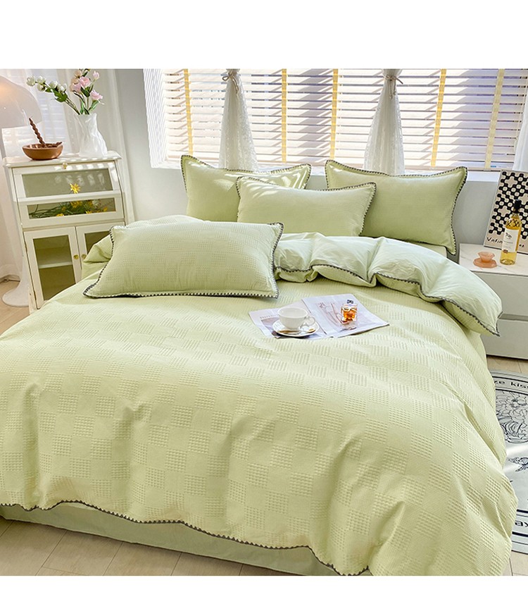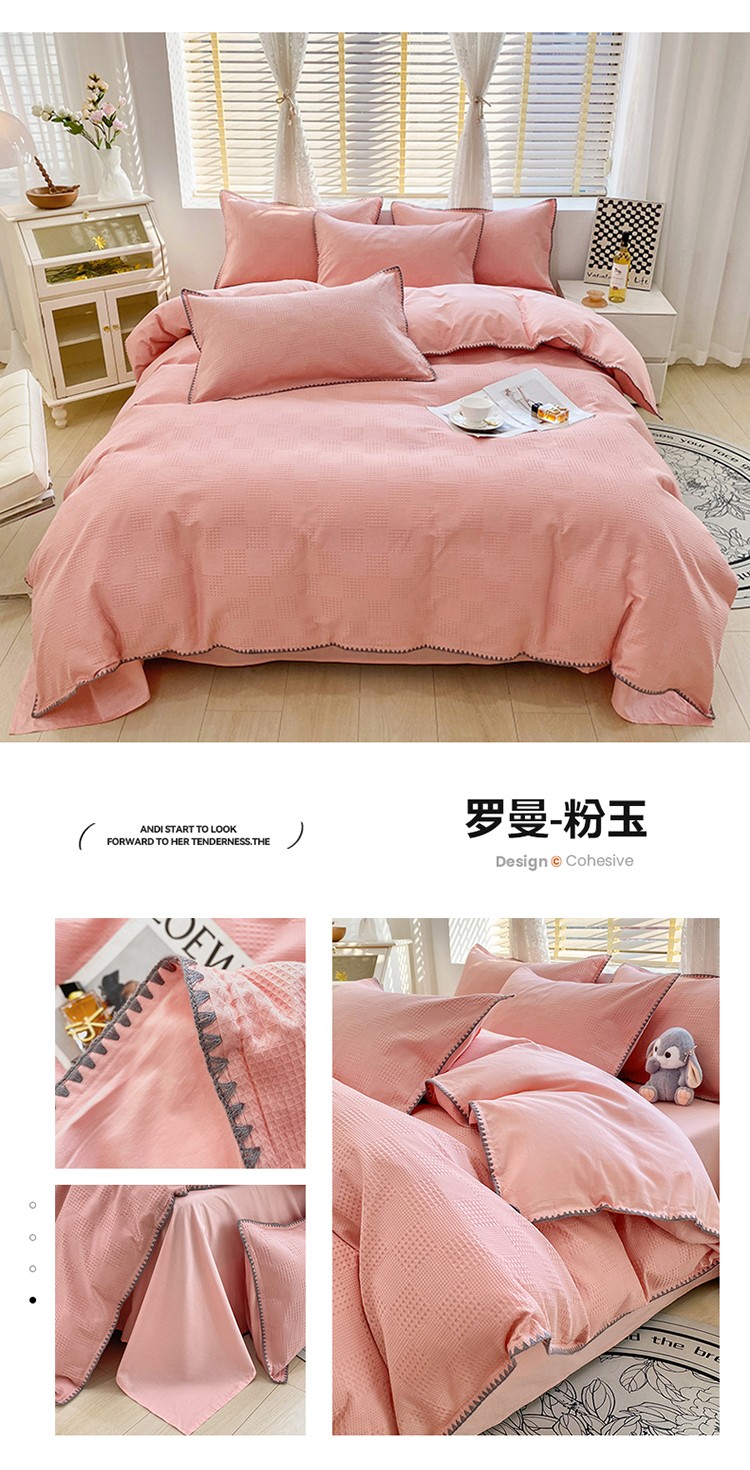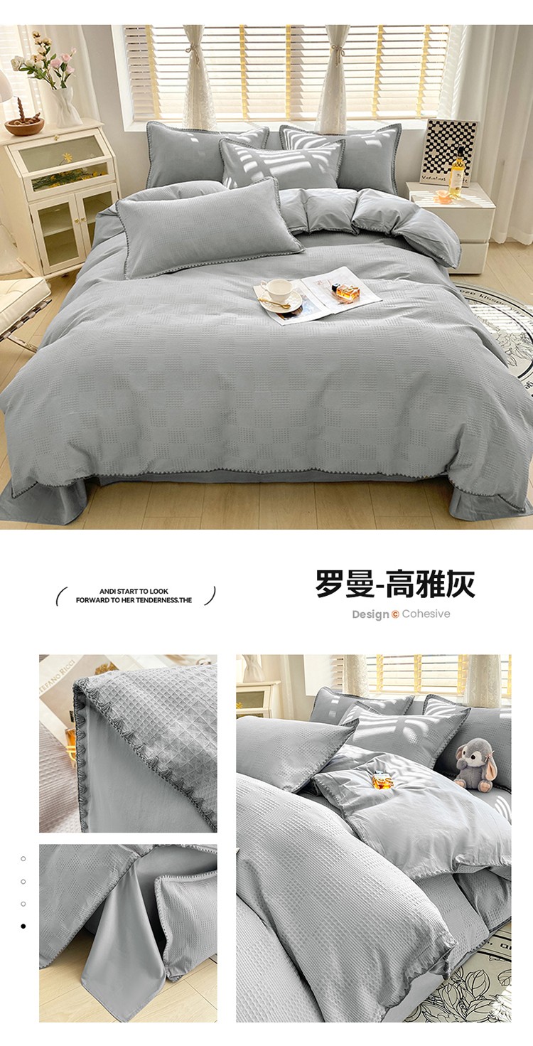 (总)韩秀 2025新款13372纯棉大提花华夫格60s贝壳绣全棉四件套纯色丝光100长绒棉