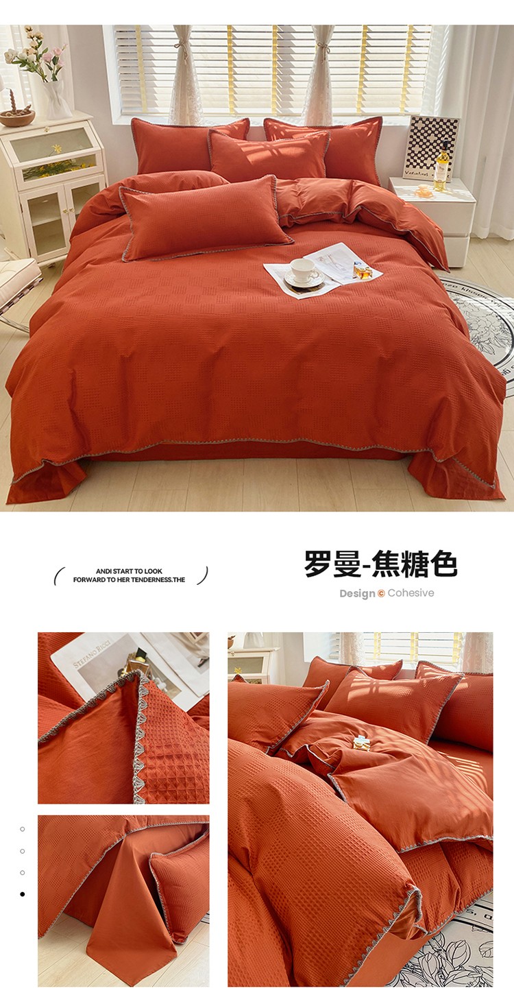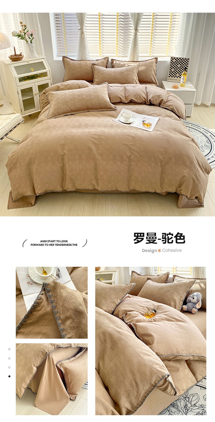 (总)韩秀 2025新款13372纯棉大提花华夫格60s贝壳绣全棉四件套纯色丝光100长绒棉,罗曼-粉玉,罗曼-高雅灰,罗曼-焦糖色,罗曼-奶白驼,罗曼-苹果绿,罗曼-绅士兰,罗曼-驼色