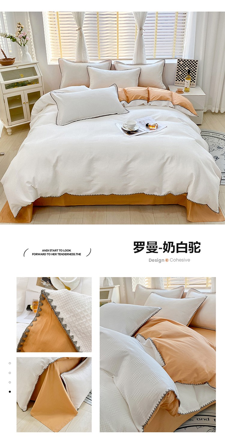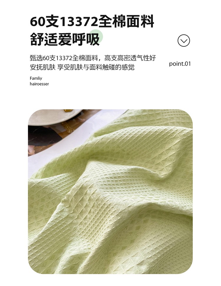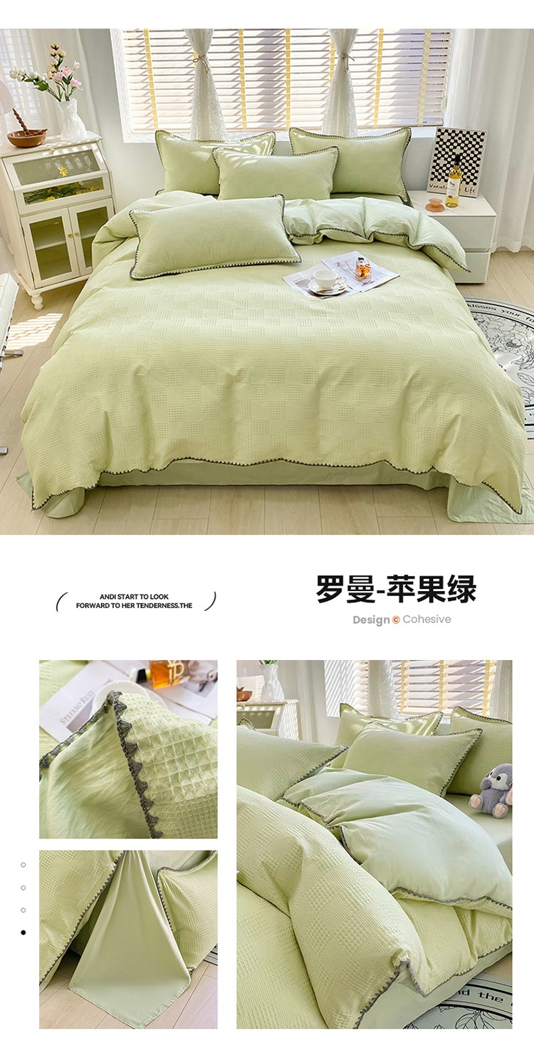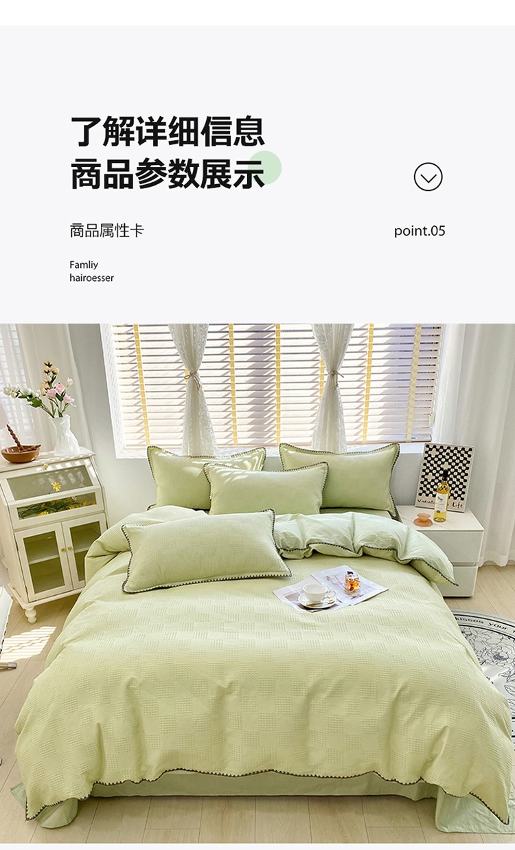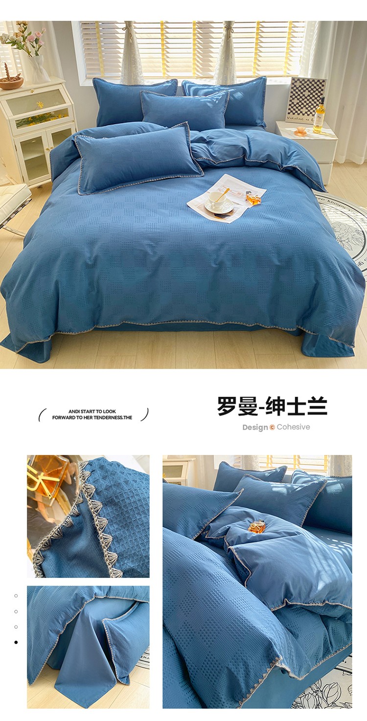 商品名称:(总)韩秀 2025新款13372纯棉大提花华夫格60s贝壳绣全棉四件套纯色丝光100长绒棉
