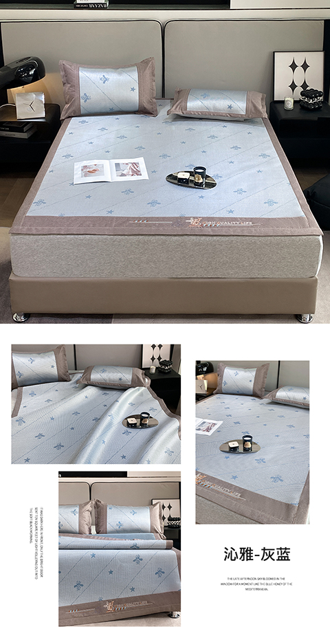 商品名称:伊被源 2023新款凉感冰藤席-沁雅、字母、蝶恋花 沁雅-灰蓝