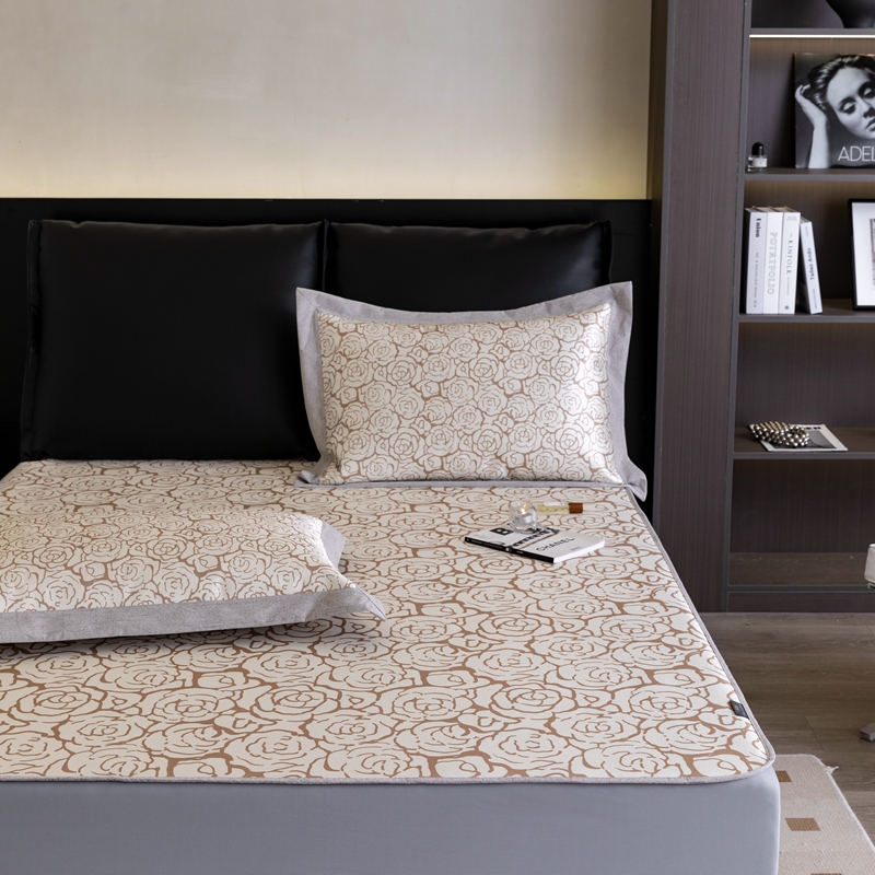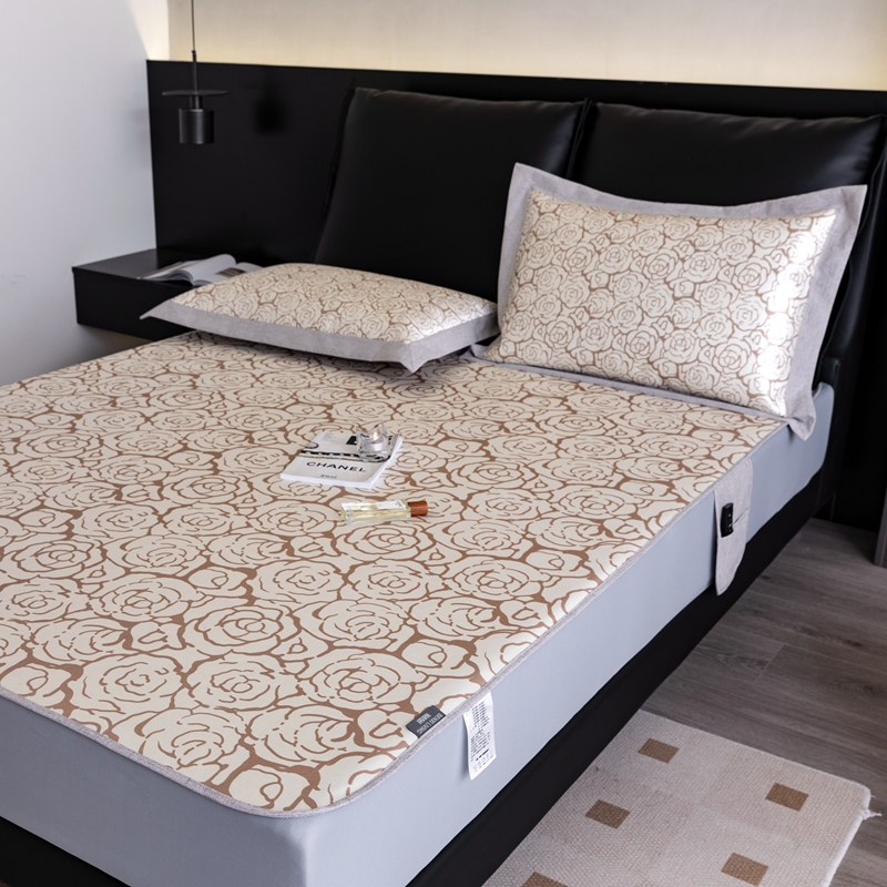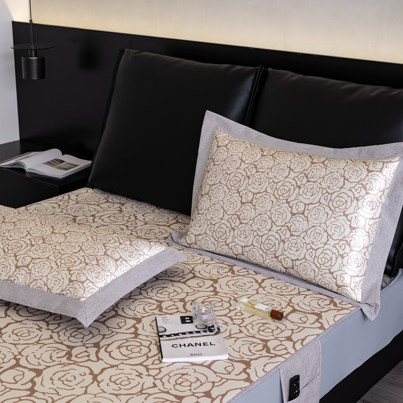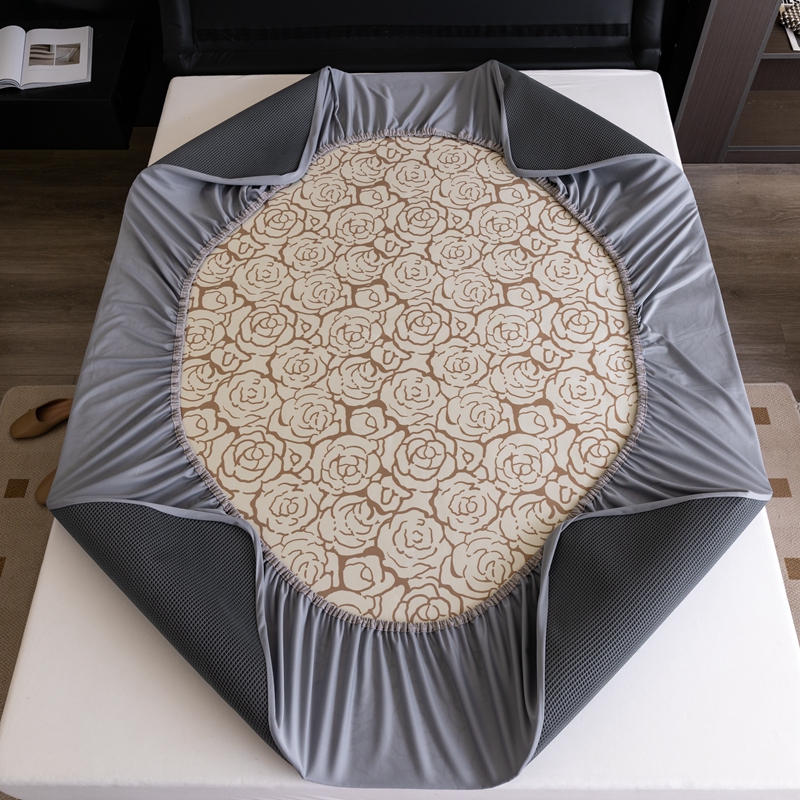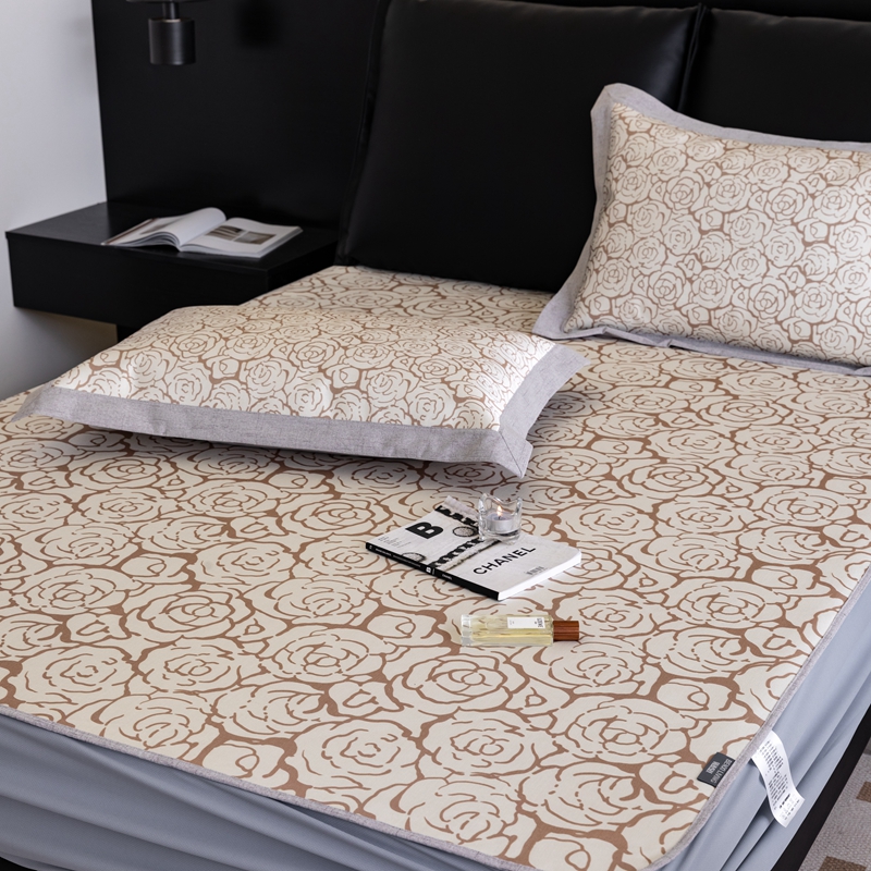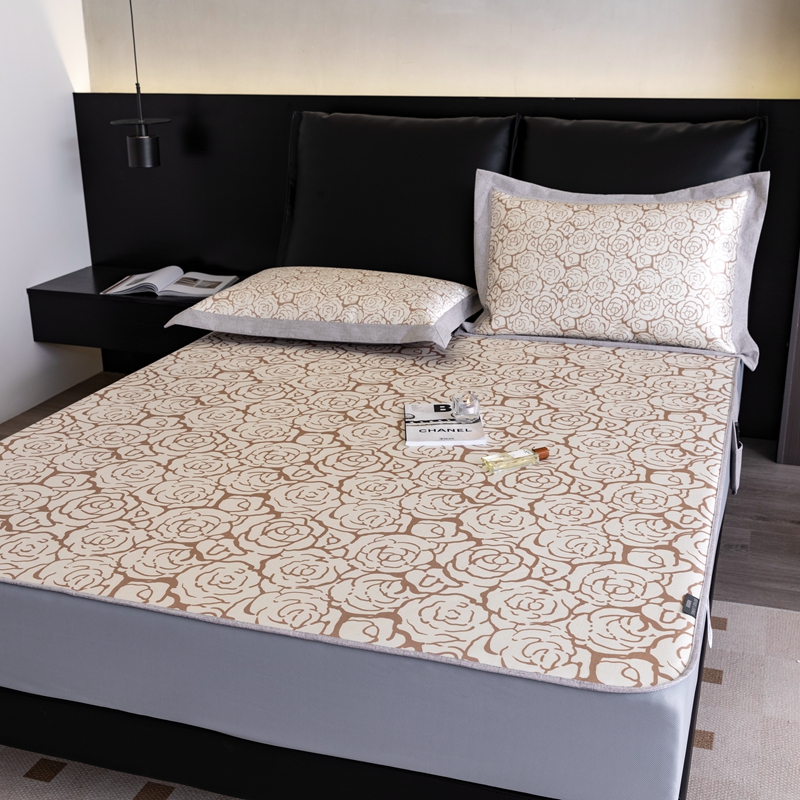 商品名称:2023新款高端可水洗冰丝席床笠款 浪漫花语-咖 床笠