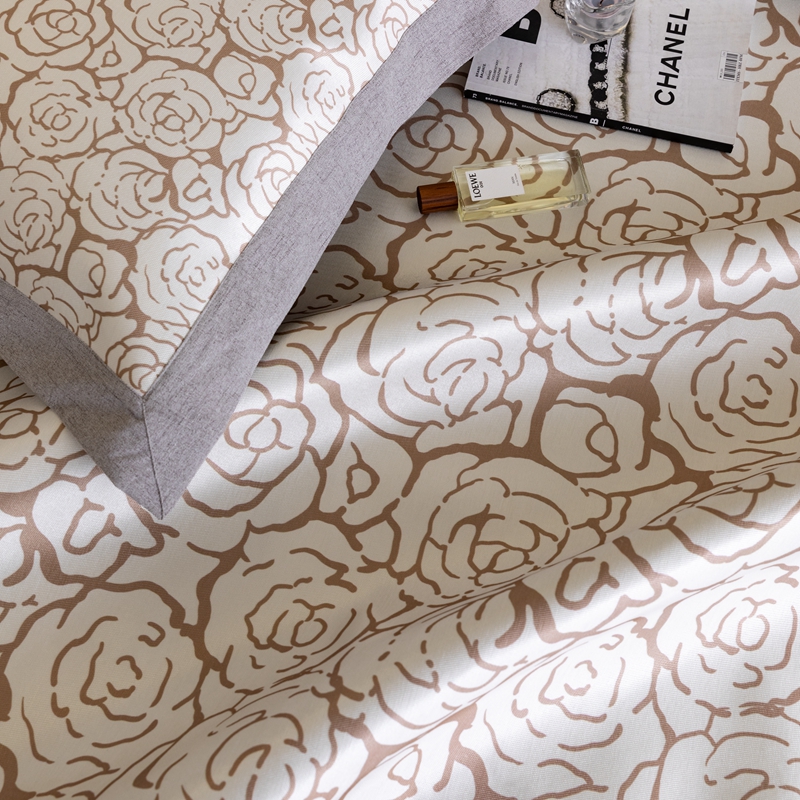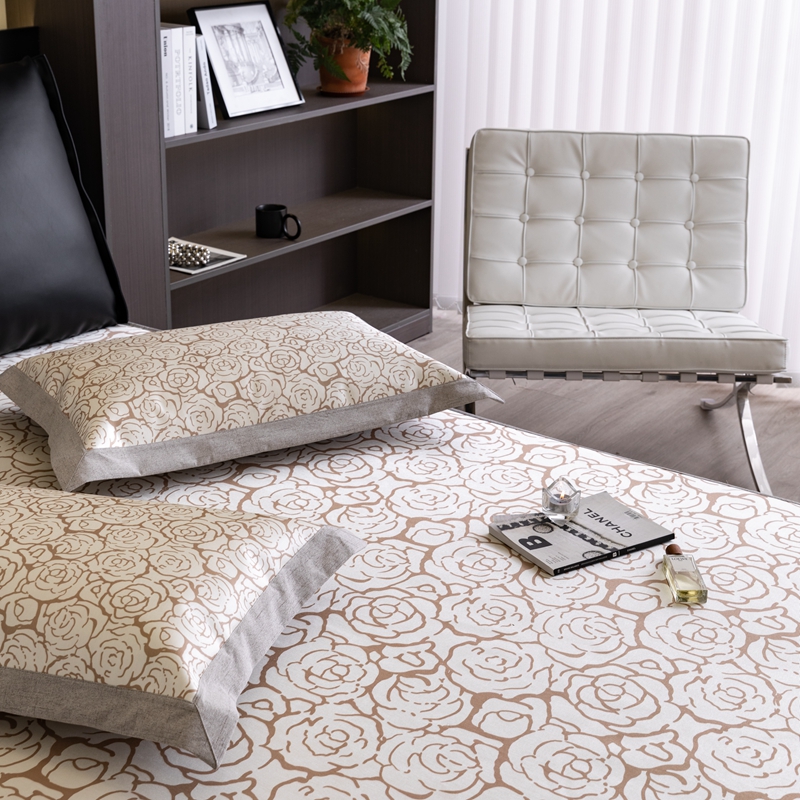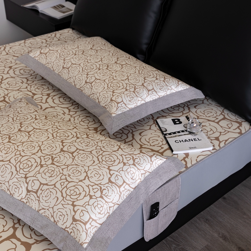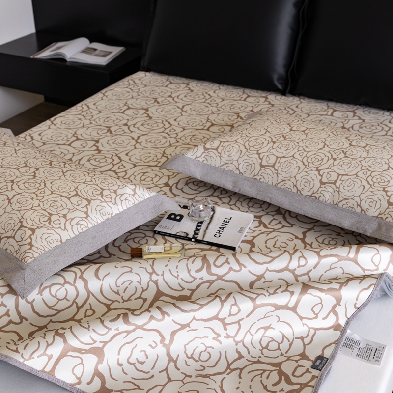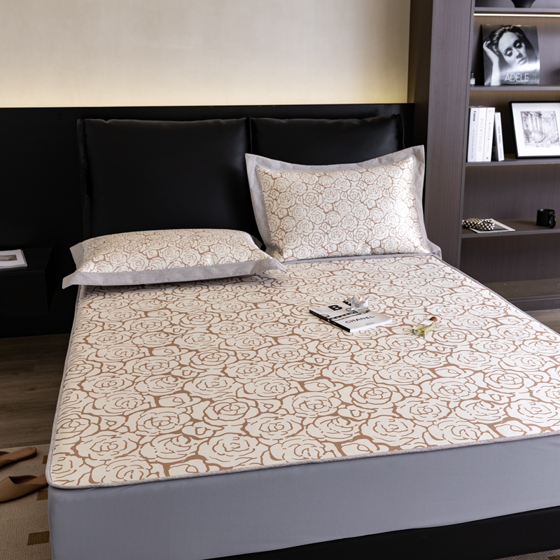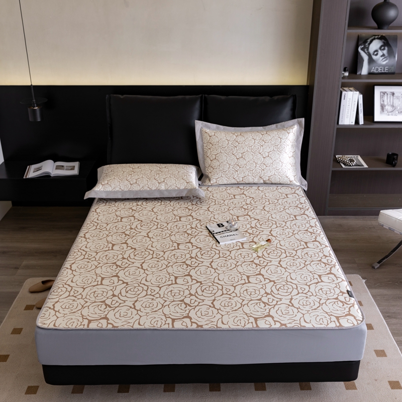 商品名称:2023新款高端可水洗冰丝席床笠款 浪漫花语-咖 床笠