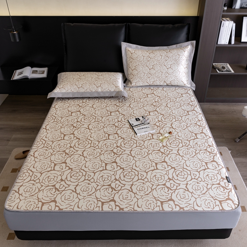 2023新款高端可水洗冰丝席床笠款 浪漫花语-咖 床笠