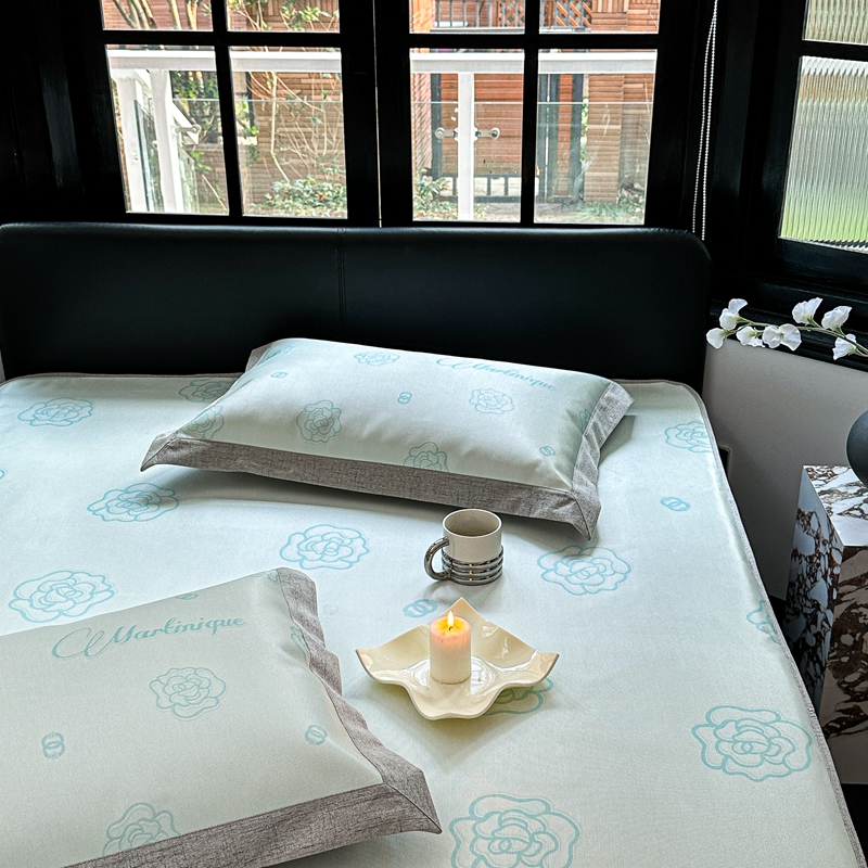 本希家居2023新款时尚高端款冰丝席床笠款 山茶花-绿