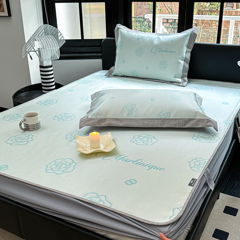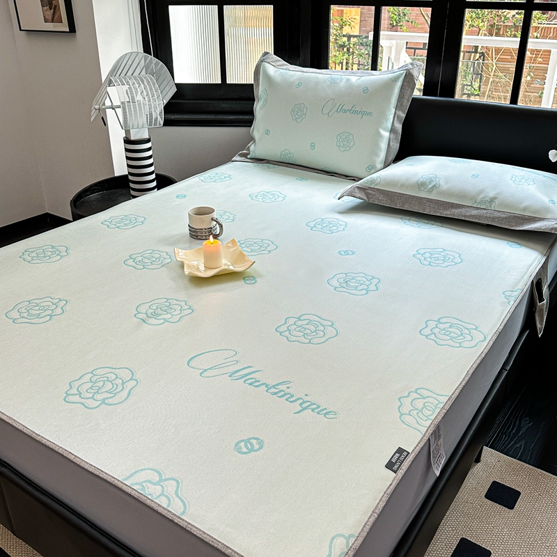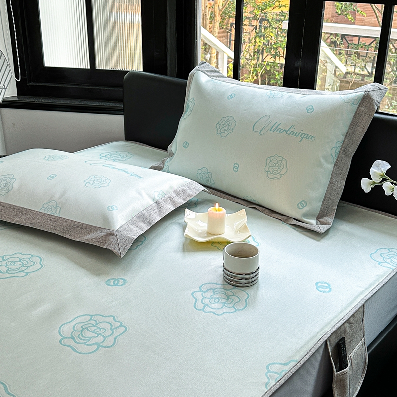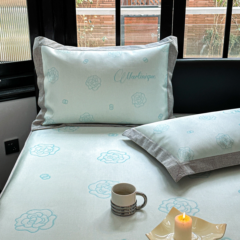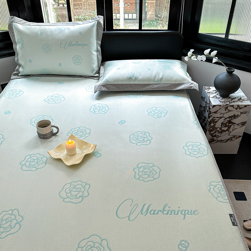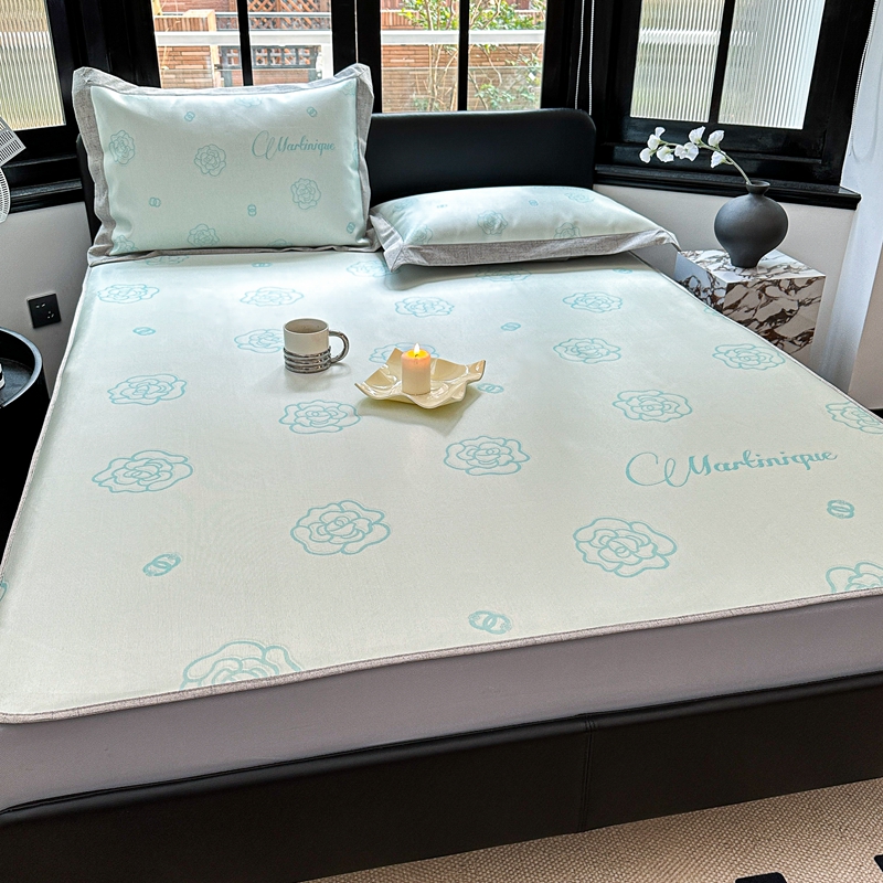 商品名称:本希家居2023新款时尚高端款冰丝席床笠款 山茶花-绿