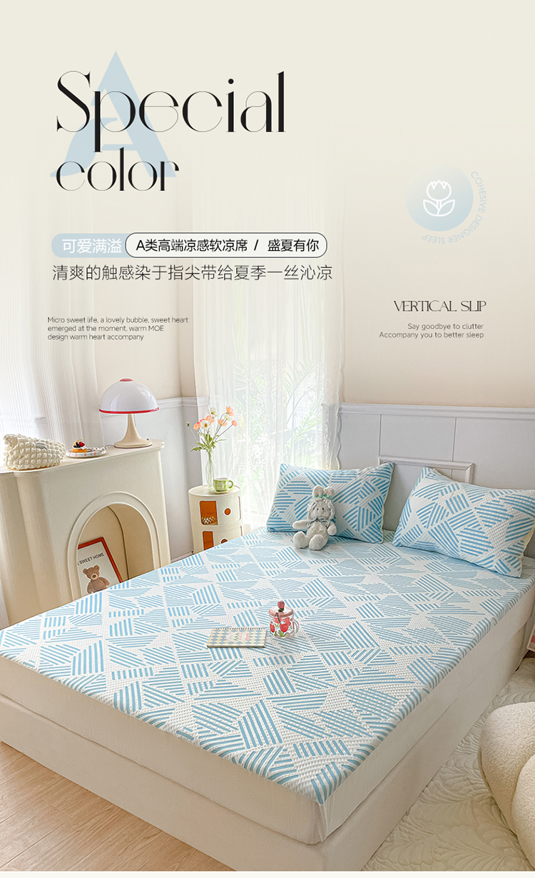 雅居纺 2023新款A类高端提花凉感凉席 格调-蓝