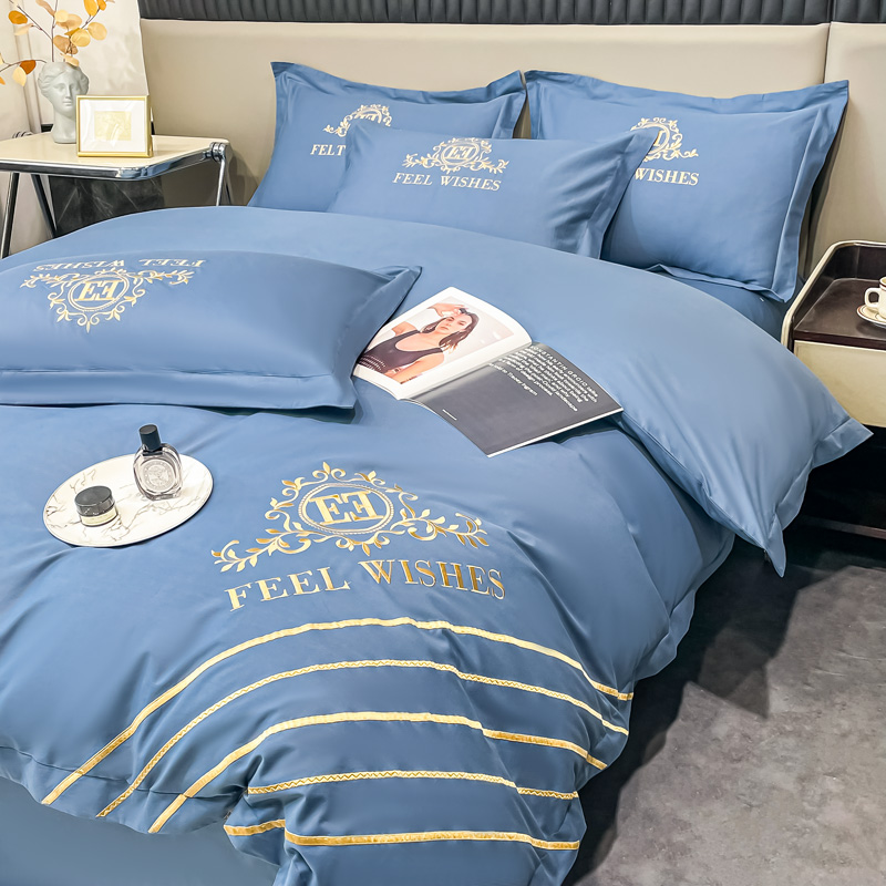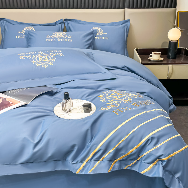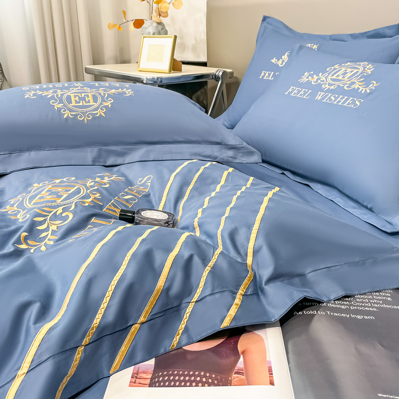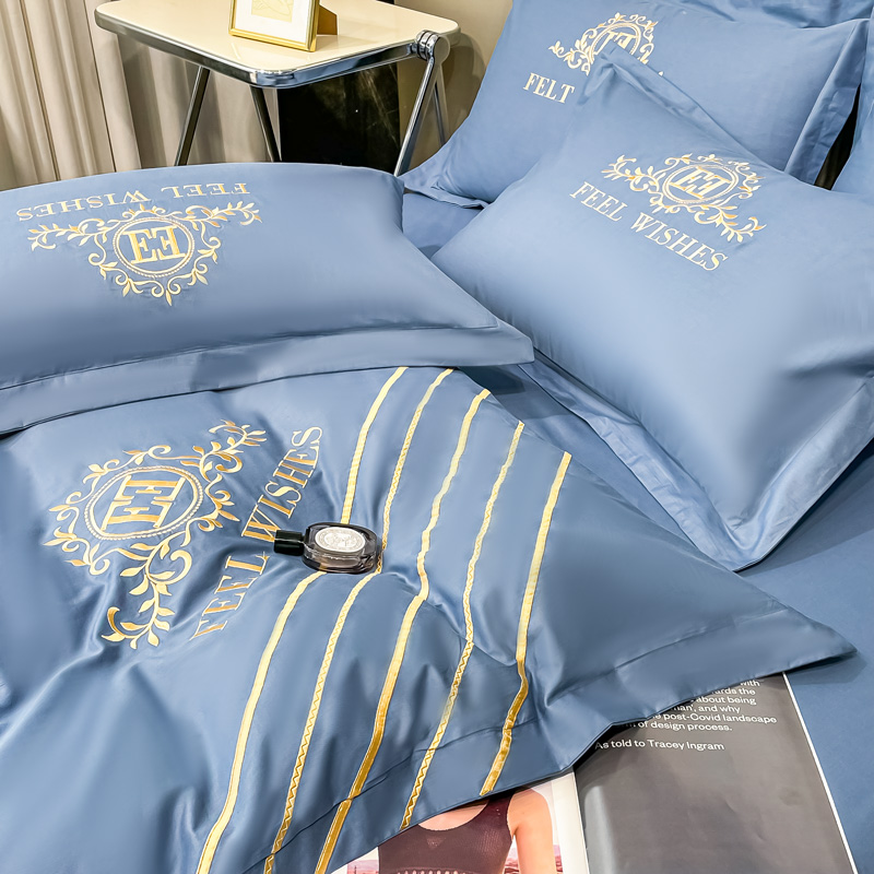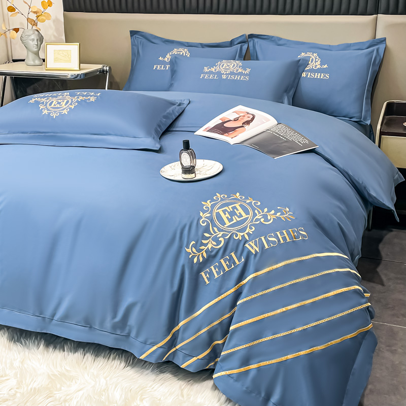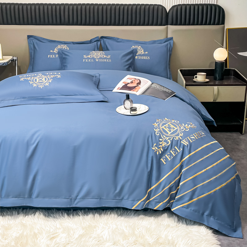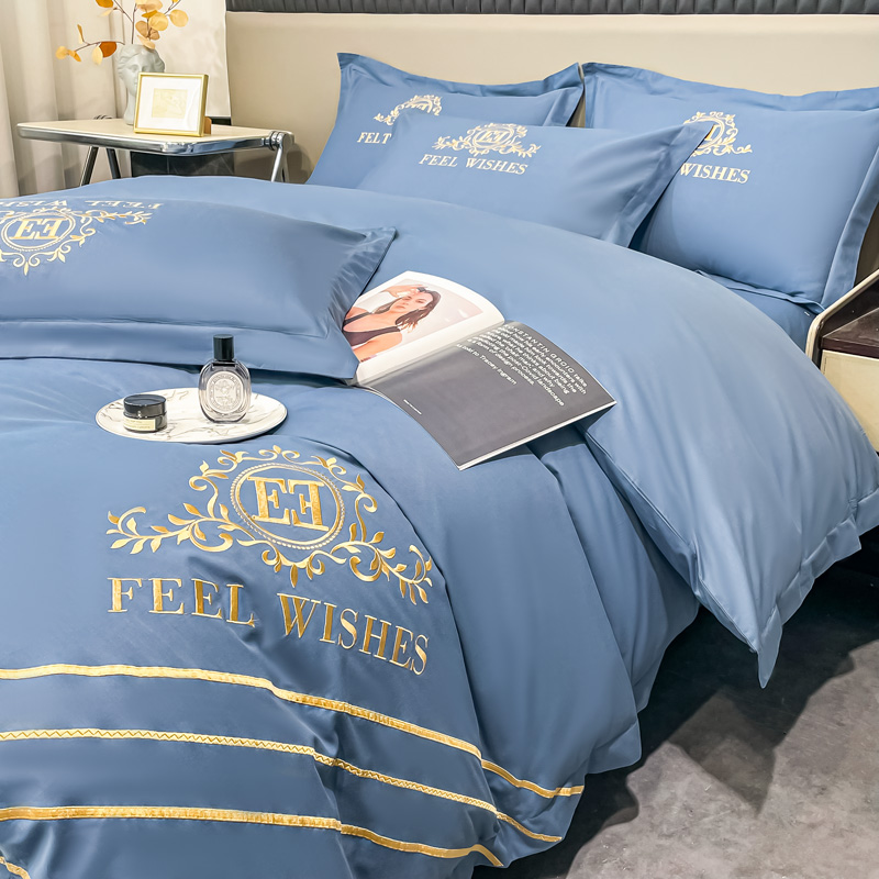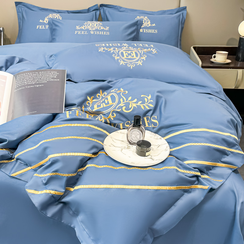 梧桐家居 2023新款全棉刺绣四件套-铃兰系列 铃兰-皇家蓝