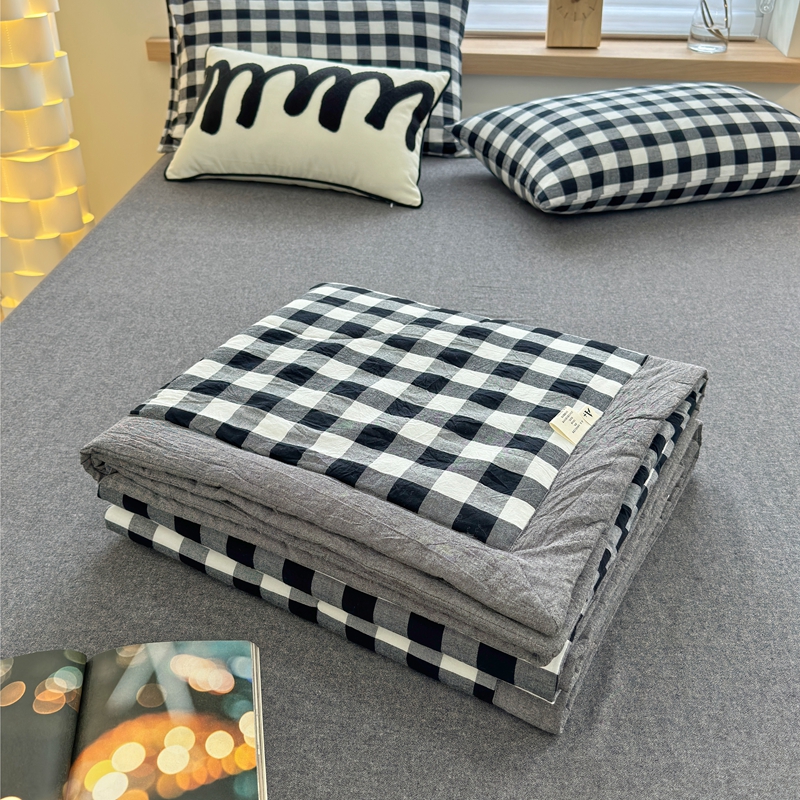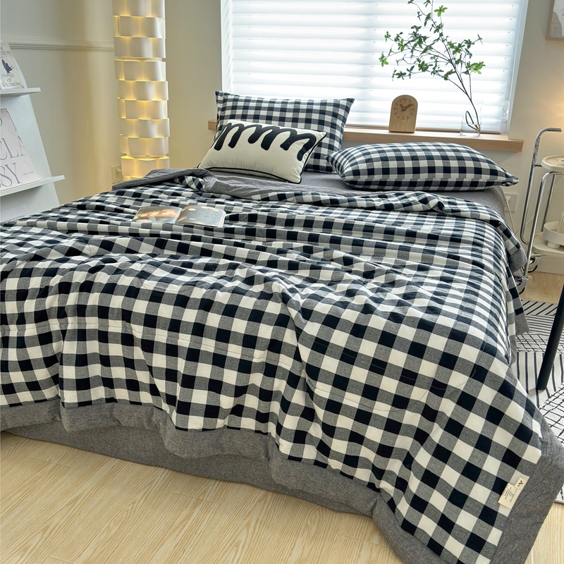 当前位置: 91家纺网 > 商品网购 > 被子 > 夏被 > 三沁 2024新款春夏全棉色织水洗棉大豆夏被四件套 SM-黑白中格